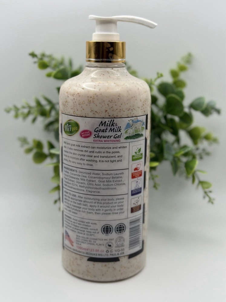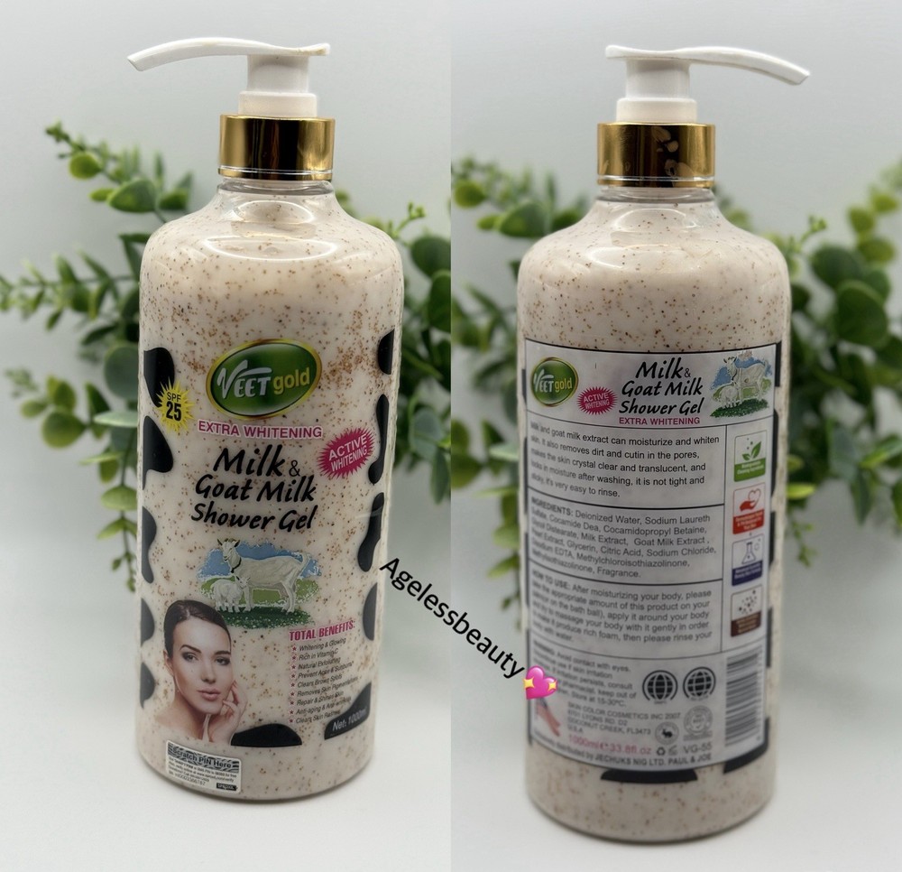 Country of Origin:United StatesSize:RegularProduct Line:milk and goat milkType:Shower GelBody Area:Body, FaceSkin Type:all skin typesIngredients:Goat Milk, MilkVolume:1000mlColor:GoldFeatures:All Natural, Contains Vitamins, Sun Protection Factor (SPF), natural exfoliating, clears sunburn, clears dark spotsBrand:VEETMPN:VG-55UPC:Does not applygtin13:Does not applyFormulation:GelDepartment:Unisex