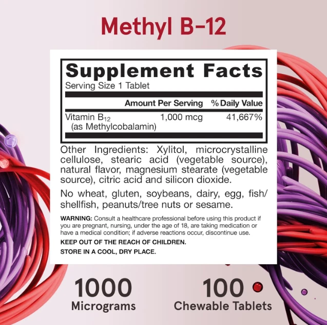 Vegan Methyl B-12 & Methyl Folate, Extra Strength, Lemon, 100 Chewable Tablets US Warehouse - FREE & FAST Shipping in US Product Description: These statements have not been evaluated by the FDA. This product is not intended to diagnose, treat, cure, or prevent any disease or health condition. CELLULAR ENERGY SUPPORT: This B vitamin helps support cellular energy(1) METHYLATED FORM: Methyl B-12 is better retained than common B-12 EXTRA STRENGTH FORMULA: Methyl B12 1000 mcg cellular energy support deliver biologically active forms of vitamin B12 that support cellular energy production and brain health(1) SUPPORTS B12 DEFICIENCY: Clinical studies show methyl B12 supplementation can be useful for vitamin B12 deficient people.(1) This dietary supplement comes in chewable B12 tablets, is Non-GMO Project Verified and gluten-free; provides up to a 100 day supply SUPERIOR SCIENCE, SMARTER FORMULAS: Informed by strong scientific research, products are carefully crafted to ensure you get the benefit of each and every vitamin, mineral and supplement Lemon-Flavored Chewable Vitamin B12 Active Coenzyme Form Promotes Healthy Homocysteine Levels* 1000 Micrograms per Lozenge Neurotransmitter & Neuron Support* Feedback: 1.Any question for your order, please contact us in time, we will reply to you within 24 hours and give you a satisfactory answer. 2.If you are satisfied with our products and services, hope to take up your a little precious time to leave feedback reviews for our products.Thanks! 3.Your satisfaction is our effort. Welcome to order again! Have a great day! Our Policy: 100% Satisfaction Guarantee 20% of restocking fee will be charged for return item