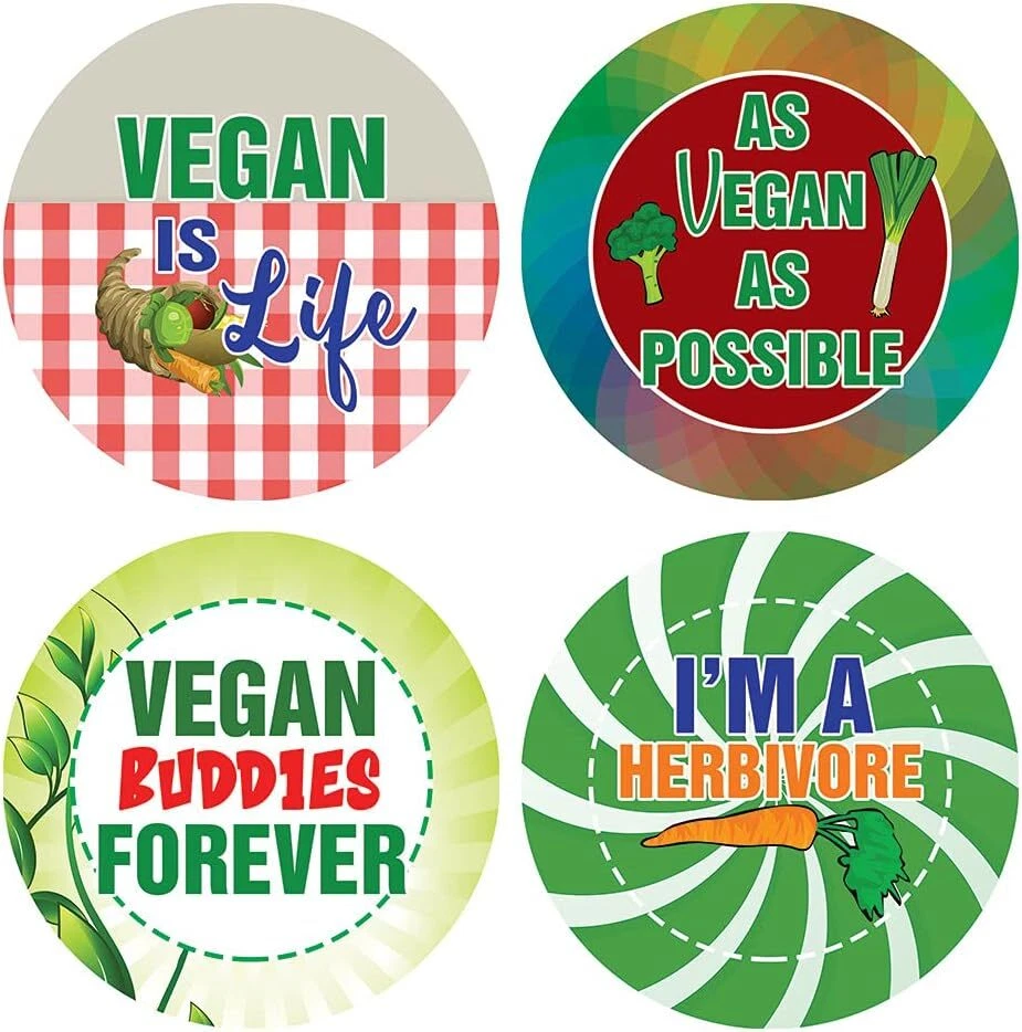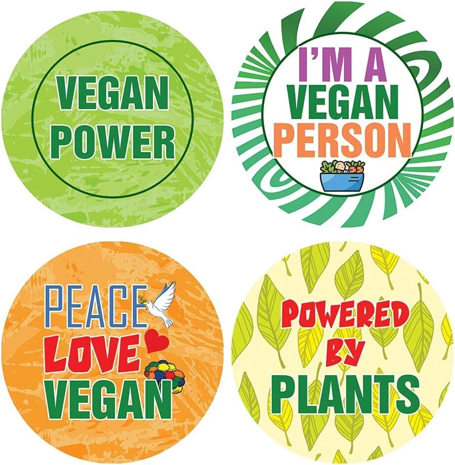 16 UNIQUE DESIGNS INSPIRING STICKERS FOR YOUR DIY PERSONALIZED DECORATIONS - Vegan Stickers (5-Sheets x 16 Designs). These colorful and uniquely inspiring round shaped stickers are the best tool for DIY decoration and personalization of your belongings. GREAT STOCKING STUFFERS, SCHOOL CORPORATE TEACHING SUPPLEMENTARY MATERIALS, AND INCENTIVE GIFTS - Great rewards giveaways for Men & Women Adults, Boys, Girls, Teens, Children. A perfect design to give during guidance sessions, classroom activities, school giveaways, birthdays, anniversaries, family day, and any other special occasions. MADE WITH DURABLE AND WATERPROOF MATERIALS - There is a lamination or coating to make the stickers high water resistant, and WILL NOT fade from the water. The stickers can stick it anywhere you like, and it sticks there and lasts a long time. A COLORFUL AND DECOR STICKER DECAL - Each sheet with 16 individual round stickers. There are 5 Sheets, with a total of 80 pieces of stickers. STICKER SIZE: 1.5 INCHES IN DIAMETER Vegan Stickers (5 Sets X 16 Designs) COLORFUL AND COLLECTION OF TEXT STICKERS • Well designed. • Very encouraging. • Self-adhesive. Vegan Stickers (5 Sets X 16 Designs) are super fun to collect; you can't have just one! That's why you will find a selection of stickers right here. Each package comes with different stickers in a variety of designs. Stick them here, stick them there, stick them everywhere! Everyone will love these self-adhesive stickers. These colorful stickers are perfect for any adults and these come with very inspiring messages and bright pictures. A fun, inexpensive way to add a decorative, notes, and stationery. Delight yourself with uplifting messages designs that are very encouraging. Vegan Stickers (5 Sets X 16 Designs) perfect for giveaways, behavior incentives, prizes! These stickers are acid-free, nontoxic, and safe for use on photos. This product comes with a 60 days money back guarantee. You can return them to us for a full refund.
