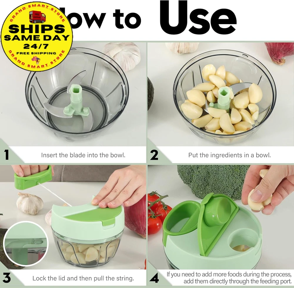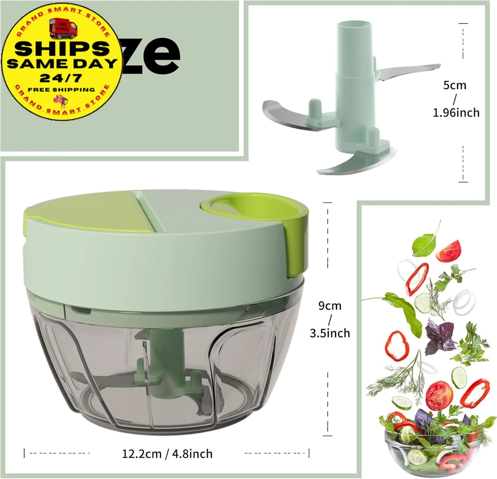 Store New Arrivals Add to Favorite View Feedback Contact Vegetable Chopper Manual Food Processor, Kitchen Mini Portable Hand Pull String Garlic Mincer Onion Chopper Cutter with Feeding Inlet for Salsa, Pesto, Guacamole, Puree Etc. 400 Ml, Green Description Item model number A066-1G Color Green Product Dimensions 4.8"L x 4.8"W x 3.5"H Material Plastic Country of Origin China Item Weight 9.1 ounces Recommended Uses For Product Indoor / Outdoor Specific Uses For Product Indoor, Outdoor Size 400ml Convenience feeding inlet: The feature of the new veggie chopper enables you to conveniently incorporate the ingredients while chopping, eliminating the need to repeatedly open the lid. Chopped onions without tears or garlic without odors Versatile manual chopper: It effortlessly handles a wide range of foods, including tomato, onion, garlic, ginger, herb, lean meat, chicken, fruit and more. It is perfect for creating delicious salsa, guacamole, pesto sauce, hummus Achieve food sizes by adjusting the number of string pulls: ten times for coarse chopping, fifteen times for medium and twenty or more for a smooth puree. The sharp blades facilitate effortless chopping: The three razor-blades are strategically positioned in different directions and heights to ensure uniform chopping of all ingredients. The curved blade design maximizes the contact area with the ingredients Effortless Operation: No electrical or chopping skills required, this manual chopper operates quietly, safely and keeps your kitchen tidy. The blades are dishwasher safe. Its compact size requires minimal space, perfect for kitchen, RV, camping and more Product Description Convenience feeding inlet: Effortlessly incorporate additional ingredients without any disruption, streamlining your meal preparation process 360°rotating blades: The 3 sharp blades are strategically positioned in different directions and heights to ensure uniform chopping. The curved design maximizes the contact area with the ingredients. Durable and strong pull string: The pull string features an automatic retraction function and an ergonomically designed handle, providing a more effortless, convenient, and comfortable method for chopping food. Anti-skid rubber base: The rubberized base ensures the stability of the onion chopper during use, preventing the kitchen chopper from slipping and ensuring its safety. 3 available sizes to choose from: 400 ml, 650 ml, and 900 ml to cater to various requirements. Add more possibilities to your daily dish Click to choose other products from Ourokhome Add to Cart Add to Cart Add to Cart Add to Cart Add to Cart Customer Reviews 4.5 out of 5 stars 20,139 4.5 out of 5 stars 940 4.8 out of 5 stars 2,858 4.6 out of 5 stars 4,569 4.7 out of 5 stars 518 Price $28.99 $ 28 . 99 $26.99 $ 26 . 99 $9.99 $ 9 . 99 $9.99 $ 9 . 99 $12.99 $ 12 . 99 Blade Quantity 3 blades / 2 bench blades 5 Heat Resistant Blades / Blade Material 420 stainless steel / 430 stainless steel Nylon and Glass Fiber / Easy Clean Blades dishwasher safe Hand washing Dishwasher safe Dishwasher safe Hand washing Easy to Use ✔ ✔ ✔ ✔ ✔ Exquisite Packaging ✔ ✔ ✔ ✔ ✔ ABOUT US We offer the best prices on high-quality products. Our online store includes everything related to Christmas, as well as gifts, children's toys, home and garden products, and more. We are confident that you will love our products and invite you to visit our store. SHIPPING Fast shipping is very important for us. Our standard shipping service in the United States is FREE on all products. Your order will be shipped within 1-2 business days after full payment is received. Your order will be delivered within 2-4 business days after the handling time. We only ship to the confirmed PayPal address. We reserve the right to cancel any order for reasons beyond our control, such as an incorrect address, and we will refund you the full amount. Please ensure that you provide us with your correct address to guarantee successful delivery of your order. RETURNS We offer a 30-Day Return Policy. You have the option of a full refund or an exchange of the item. Returns are not available for items shipped outside of the United States of America. PAYMENT We accept PayPal. CONTACT US This page content is yet to come Please ad us to your favorite seller and visit again later Thank You CUSTOMER SATISFACTION For any questions, please use the eBay contact system. We will respond to you within a maximum of 24 hours. We have products that suit all tastes, so please visit our eBay store to check out other items for sale! Thank you for shopping at our store WE ACCEPT Copyright © 2021 AutoDS. | All Rights Reserved