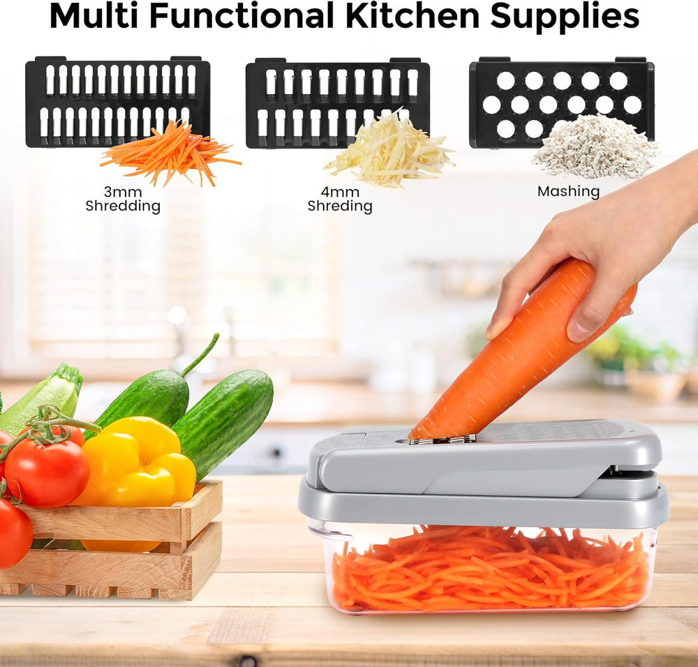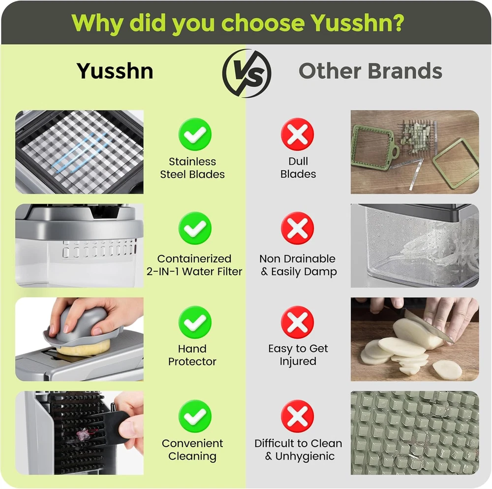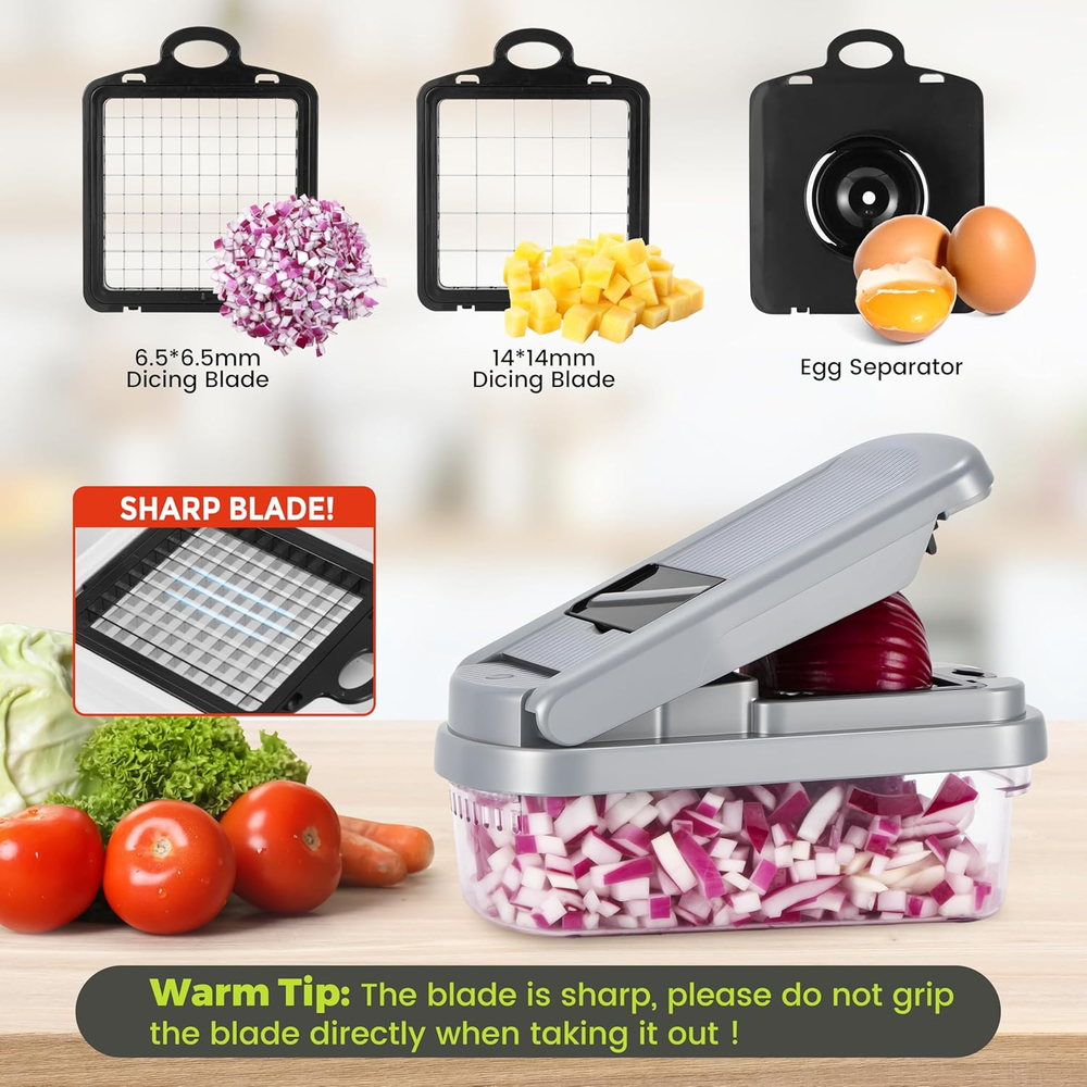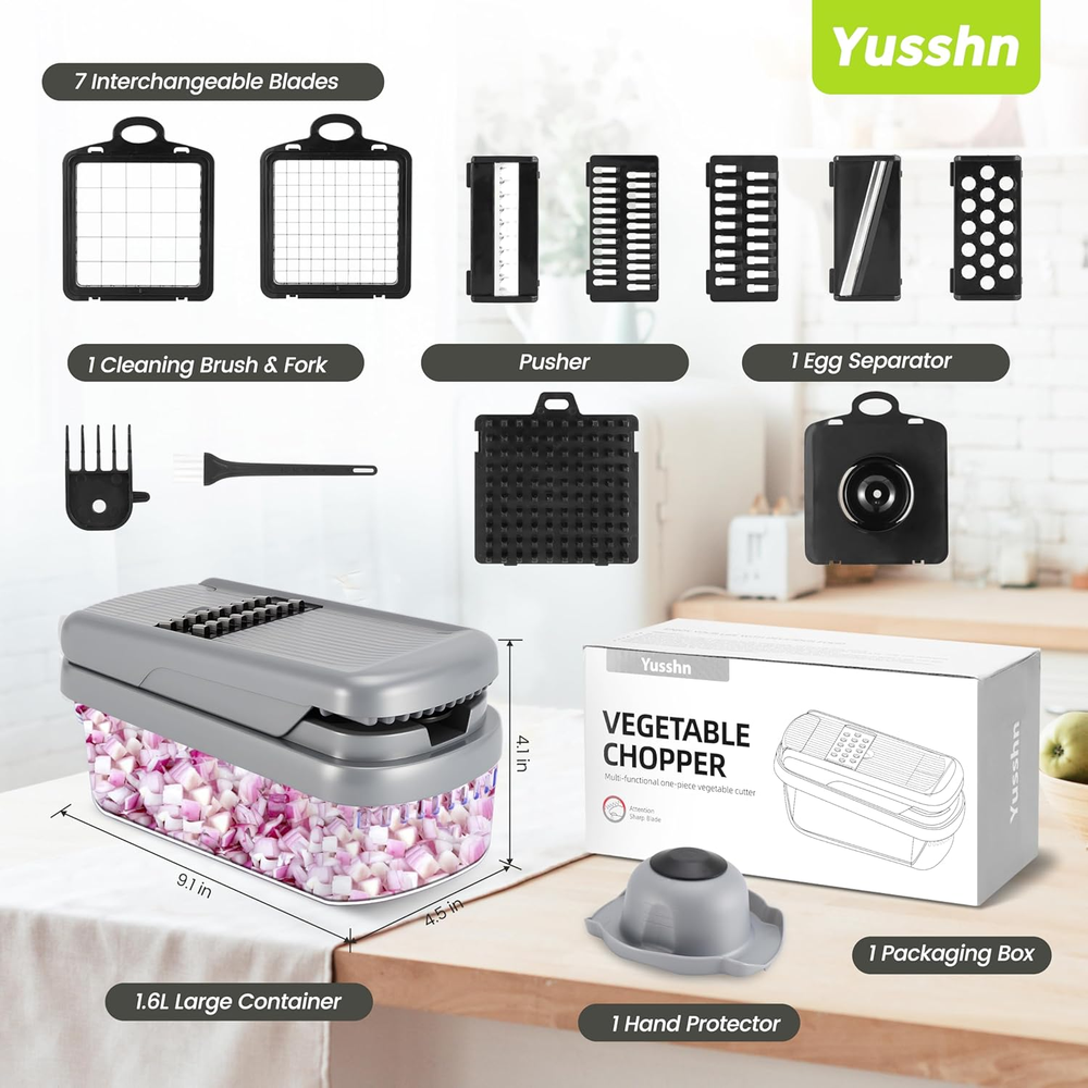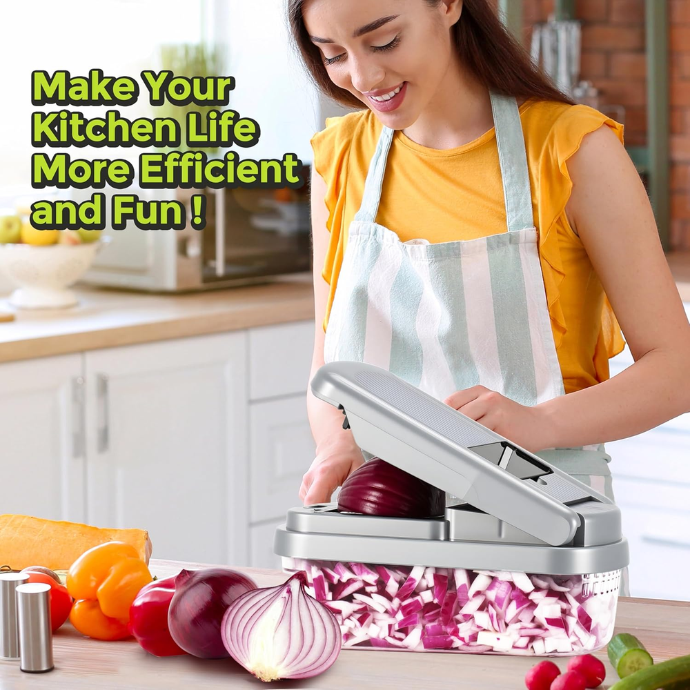 Store New Arrivals Add to Favorite View Feedback Contact Vegetable Chopper,12-In-1 Multifunctional Food Chopper,Professional Onion Chopper with 7 Blades,Vegetable Cutter with Container for Salad,Potato,Carrot,And Garlic Essential Kitchen Tool (Silver Black) Description Item model number YS-01 Manufacture Year 2025 Color Silver black Material Plastic, Stainless Steel Blade Shape Rectangular Item Weight 1.34 pounds Operation Mode Manual Recommended Uses For Product Cheese, Egg, Vegetable, onion chopper, veggie chopper Blade Material Stainless Steel Special Feature Multipurpose Product Dimensions 9.1"L x 4.2"W x 4.2"H Product Care Instructions Hand Wash Only 【EXCELLENT QUALITY】The vegetable shredder blade is made of durable ABS and 420J2 stainless steel, ensuring it won't rust. It efficiently chops, dices, and slices fruits, vegetables, and cheese with precision.The all-in-one chopper features a sharp hardened stainless steel blade that reduces clutter while cutting accurately. Equipped with a non-slip base for stable fixation on the tabletop during use, it effectively prevents accidental sliding and injuries—providing you with a safer kitchen experience 【12-IN-1 KITCHEN ACCESSORIES】This vegetable cutting kit includes: 1 cleaning brush; 1 hand protector; 1 egg separator; dicing blades (2*14x14mm and 6.5x6.5mm); grits cheese chopper; wave slicer;cheese grater (4mm); fine mill (3mm); slicer. If the item is relatively hard or large, it is recommended to make an initial preliminary cut. Prior to using this product, please ensure that it has been divided into smaller pieces for optimal results. 【SAVE TIME AND IMPROVE YOUR QUALITY OF LIFE】Designed to reduce preparation time, this Vegetable Chopper makes slicing labor-efficient. Easily dice tomatoes, peppers, carrots, beets, cucumbers, onions, and garlic in no time—ideal for anyone wanting more quality family time without sacrificing nutrition. Perfect for wives, mothers or cooking enthusiasts 【EASY TO CLEAN AND IMPROVE EFFICIENCY】The vegetable cutter disassembles easily for quick cleaning with PAWS and brushes to remove residue from the pressure plate and blade. Proper cleaning after use is crucial as it affects future performance. The ease of disassembly enhances overall efficiency.Slide 15% gold Angle slightly inclined design, ingredients are easier to cut 【CONTAINERIZED 2-IN-1 WATER FILTER】The latest upgrade integrates the water filter basket and container, streamlining the process of food cleaning and collection by eliminating the need for loading and disassembly. With a generous capacity, it is designed to accommodate chopped and diced ingredients efficiently. Constructed entirely from ABS material, this vegetable chopper boasts exceptional heat resistance, high hardness, and superior impact resistance. Wash below 60°C/140F.Not available for dishwashe Product description ABOUT US We offer the best prices around on high quality products. Our E-store includes media such as books, movies, music and games while offering electronics, toys, sporting apparel, clothing, tools, general home, garden items and more. SHIPPING We are always working hard to ensure your package arrives as soon as possible. Please understand that some factors like weather, high postal traffic, and the performance of shipping companies are outside of our control. We offer free shipping to the lower 48 states and ship within 2 business days of payment, usually sooner. We do not accept P.O. Boxes. Please provide a physical address. For shipping outside of the continental USA, we only use eBay's Global Shipping Program.The item is shipped to KY and then sent to the rest of the world. International customers are responsible for all duties and taxes. Continue to check out in order to calculate costs for shipping the item to your country. Messages regarding eBay's Global Shipping Program MUST be directed at eBay EXCLUSIVELY. RETURNS We offer a 30-Day Return Policy on items which you are not completely satisfied with. You have the option for a full-refund or an exchange of the item. No returns are available on items shipped outside of the USA. PAYMENT We accept PayPal. CONTACT US This page content is yet to come Please ad us to your favorite seller and visit again later Thank You CUSTOMER SATISFACTION We try our very best to make sure every customer is completely satisfied. If there's a problem, message us! We're happy to help. WE ACCEPT Copyright © 2021 AutoDS. | All Rights Reserved
