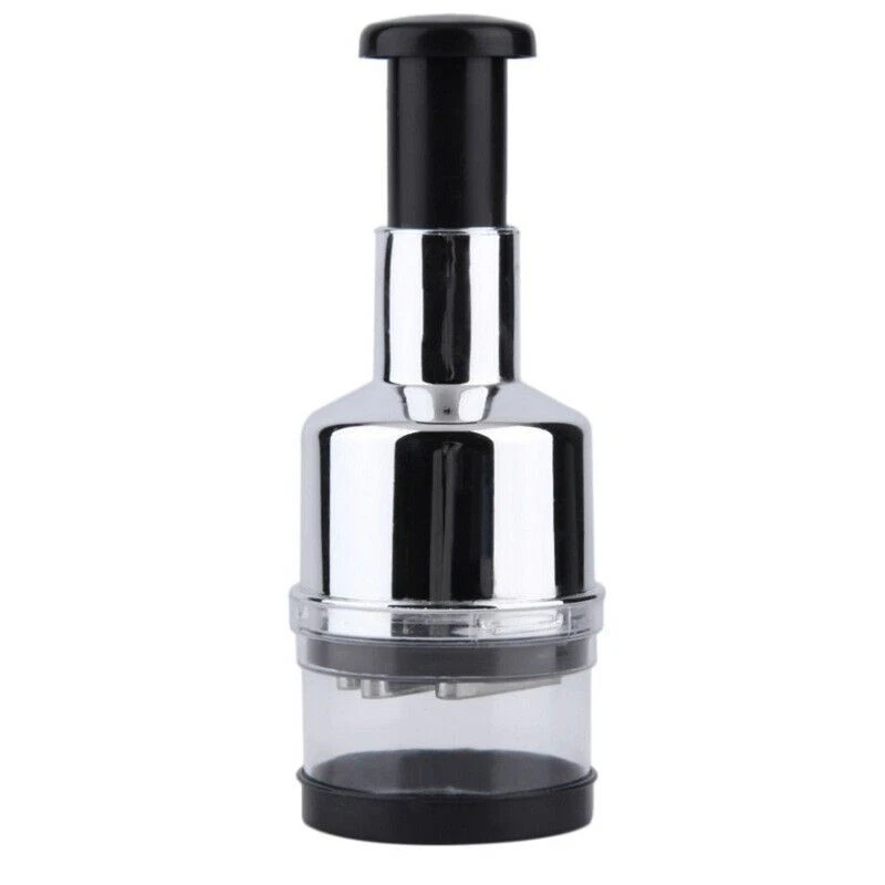 eBay Vegetable Fruit Salad Onion Garlic Food Hand Chopper Cutter Slicer Peeler Dicer QUICK & EASY FOOD PREP: Make preparing meals even easier with our Jumbo Food Chopper. This tool has a high-quality zigzag blade with each manual chop, resulting in even and smooth chopping. Just press down on the top handle with your hand and the blade will do the work for you. Use it for celery, onion, garlic, carrots, cauliflower, broccoli, and more! SELF-CONTAINED CHOPPING KIT: Forget having to pull out a cutting board to cut your vegetables! This tool is an all-in-one kitchen prep machine. The chopper has a round dish base to keep foods secure and contained as you chop them. No need to readjust on your cutting board either. With this tool, you can cut your foods and keep your kitchen station clean. KEEP FINGERS SAFE: Many accidents happen in the kitchen while cutting and preparing foods. Because the blade is protected within the Jumbo Food Chopper, you won t have to worry about cutting your fingers by accident. This professional-grade chopper system is great for kids learning how to cook or for adults who are accident-prone in the kitchen. STORES EASILY: This manual chopper can be separated into several pieces, making it easy to wash and store. When you re done chopping or slicing your foods, you can remove the base and the blade cover from the main blade and handle. Store the tool all together in a storage cabinet or separated in your utensil drawer. DURABLE & ERGONOMIC DESIGN: We designed this manual chopper to be easy to use, no matter what foods you re cutting. The handle on top is shaped like a large round button to comfortably accommodate the palm of your hand. Slap the handle as hard as you want to; this design is durable to last many dinners to come. The set can even be washed in the dishwasher. Specifications: Color: Electroplated Silver Blade Material: Stainless Steel / ABS Dimensions: 8.75 H x 3 L Operation Mode: Manual Blade Shape: Round Net Weight: 260g More Information: Dice, chop and mince in seconds Easy to clean and dishwasher safe Chop vegetables and fruit quickly and easily Compact design makes it easy to store in your kitchen Protect your fingers from kitchen knives The Stainless Steel Onion Chopper Slicer is ideal for dicing and chopping onions/vegetables/garlic/fruits. Chop different vegetables-fruits easily and quickly by hand press. Made of food grade plastic and stainless steel blade, safe to use. Multi-layer, easy to disassemble and clean Self Contained - Keep Fingers Safe Forget having to pull out a cutting board to cut your vegetables! This tool is an all-in-one kitchen prep machine. The chopper has a round dish base to keep foods secure and contained as you chop them. No need to readjust on your cutting board either. With this tool, you can cut your foods and keep your kitchen station clean. Many accidents happen in the kitchen while cutting and preparing foods. Because the blade is protected within the Jumbo Food Chopper, you won t have to worry about cutting your fingers by accident. This professional-grade chopper system is great for kids learning how to cook or for adults who are accident-prone in the kitchen. Design We designed this manual chopper to be easy to use, no matter what foods you re cutting. The handle on top is shaped like a large round button to comfortably accommodate the palm of your hand. Slap the handle as hard as you want to; this design is durable to last many dinners to come. The set can even be washed in the dishwasher. Make preparing meals even easier with our Jumbo Food Chopper. This tool has a high-quality zigzag blade with each manual chop, resulting in even and smooth chopping. Just press down on the top handle with your hand and the blade will do the work for you. Use it for celery, onion, garlic, carrots, cauliflower, broccoli, and more! Stainless Steel Forget having to pull out a cutting board to cut your vegetables! This tool is an all-in-one kitchen prep machine. The chopper has a round dish base to keep foods secure and contained as you chop them. No need to readjust on your cutting board either. With this tool, you can cut your foods and keep your kitchen station clean. Stores Easily This manual chopper can be separated into several pieces, making it easy to wash and store. When you re done chopping or slicing your foods, you can remove the base and the blade cover from the main blade and handle. Store the tool all together in a storage cabinet or separated in your utensil drawer. Package includes: 1 x Vegetable Fruit Salad Onion Garlic Food Hand Chopper Cutter Slicer Peeler Dicer Shipping Information: Your item Ships Same Day to 1 Business Day from our California Location.