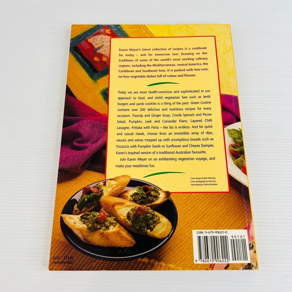 Green Cuisines Cookbook by Karen Meyer Paperback Book Vegetarian Recipes Item posted within two business days of payment clearing via Australia Post. Australian seller - smoke free - pet free - working mum Adding new book listings daily to my store. My books are sent in strong Australia Post, Australian made, water resistant padded mailers that are recyclable through the REDcycle program and can be recycled at any major shopping centre. Pre-owned, see photos for condition and read the description.