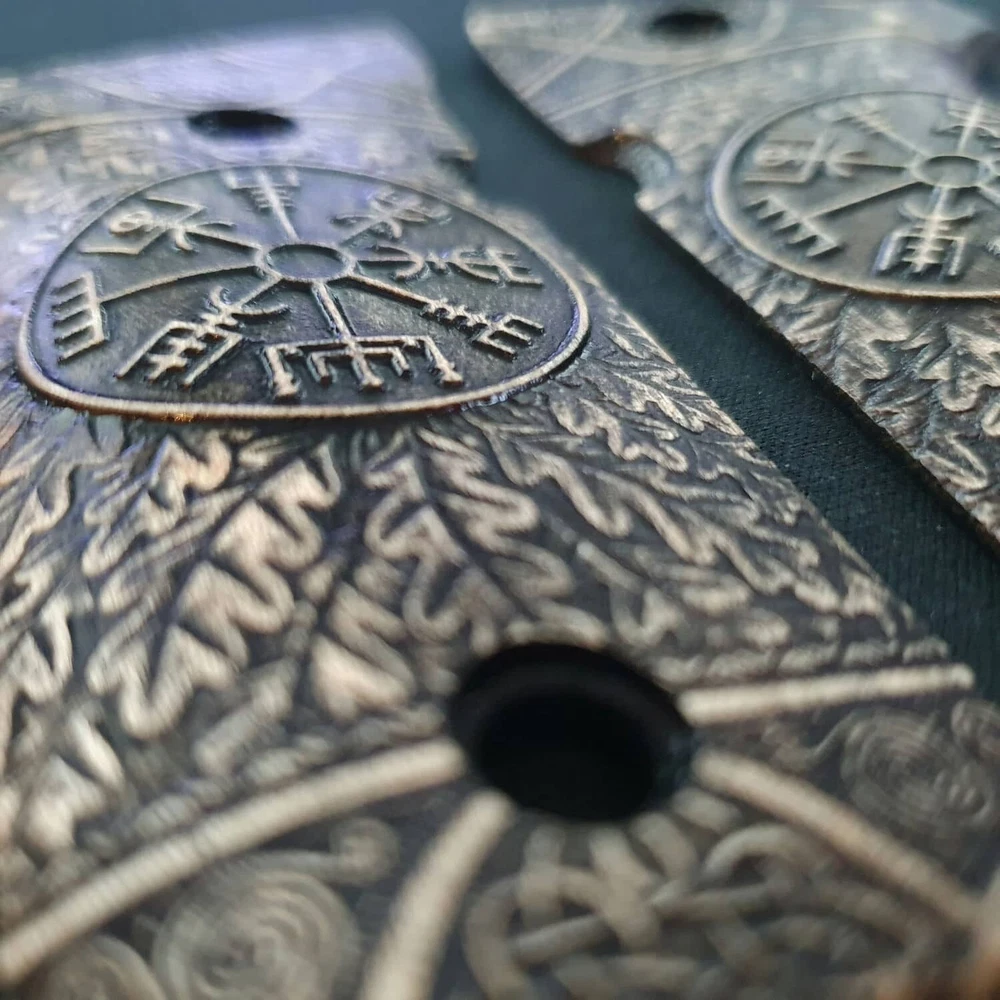 New Beretta 92X, M9A3, M9A4 grips with "Vegvisir" design. Carved from solid natural wood - Cut by CNC. Sanded, painted and oiled by hand