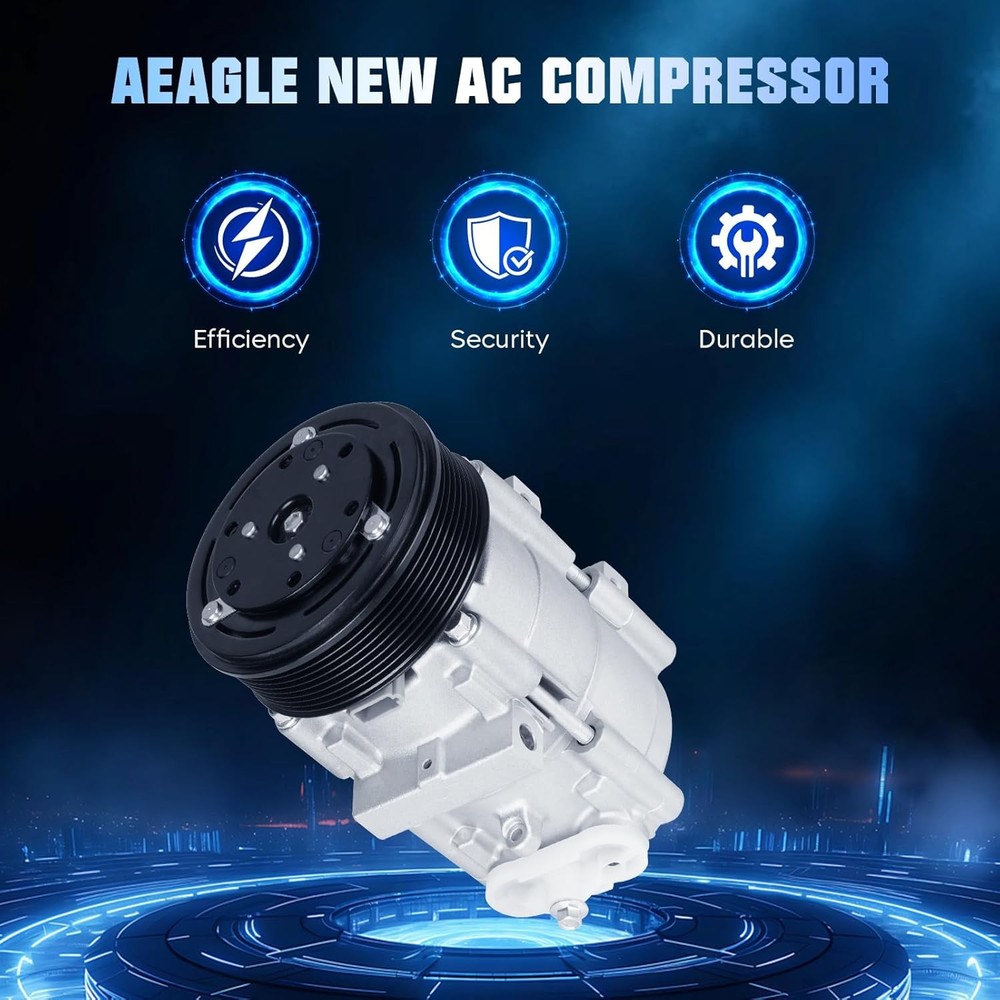 👍 Compatible with: New A/C compressor for Ford: 2003-2005 Excursion 6.0L, for 1997-2001 F-150 4.6L/5.4L, for 1997-2001 F-250 4.6L,for 1997-1999 F-250 5.4L, for 1999-2007 F-250 Super Duty 6.8L, for 1999-2001 F-350 5.4L, for 1999-2007 F-350 Super Duty 6.8L, for Lobo 4.6L 1997-2001, for Lobo 5.4L 1999-2001, for Lincoln Blackwood 5.4L 2002 👍 Replaces for Part Numbers: 1520694, 1035112, 1135112, 1235112, 618152, 4718121, 4718144, 4L3Z19703AB, 4L3Z19703AC, 5C3Z19V703AA, 6L3Z19712BA, F7LZ19V703RA, 57152, 58152, 2041028, 6511461, 7511461, 7512140, YCC163, YCC179, YCC214, 2010918AM, 143028C, 143028NC, 143028NEW, 2604, 2604N, 10000535, 000101, 010022, 010473, 10343121, 2010918, TEM273184, TEM253184, 253184, 273184, 57152 👍 Careful manufacturing: Air conditioning compressor adopts excellent materials and advanced technology, which greatly improves its performance and durability and prolongs its use time. 👍 Cautions: Before installing the air conditioning compressor, clean your car's cooling system pipes and check that the fan and condenser are working properly so as not to affect the use of new parts. 👍Compressor Specifications: Oil Type: PAG 100;Oil Prefilled: 160±10ML; Pulley Grooves 6; Pulley Diameter (mm) 127