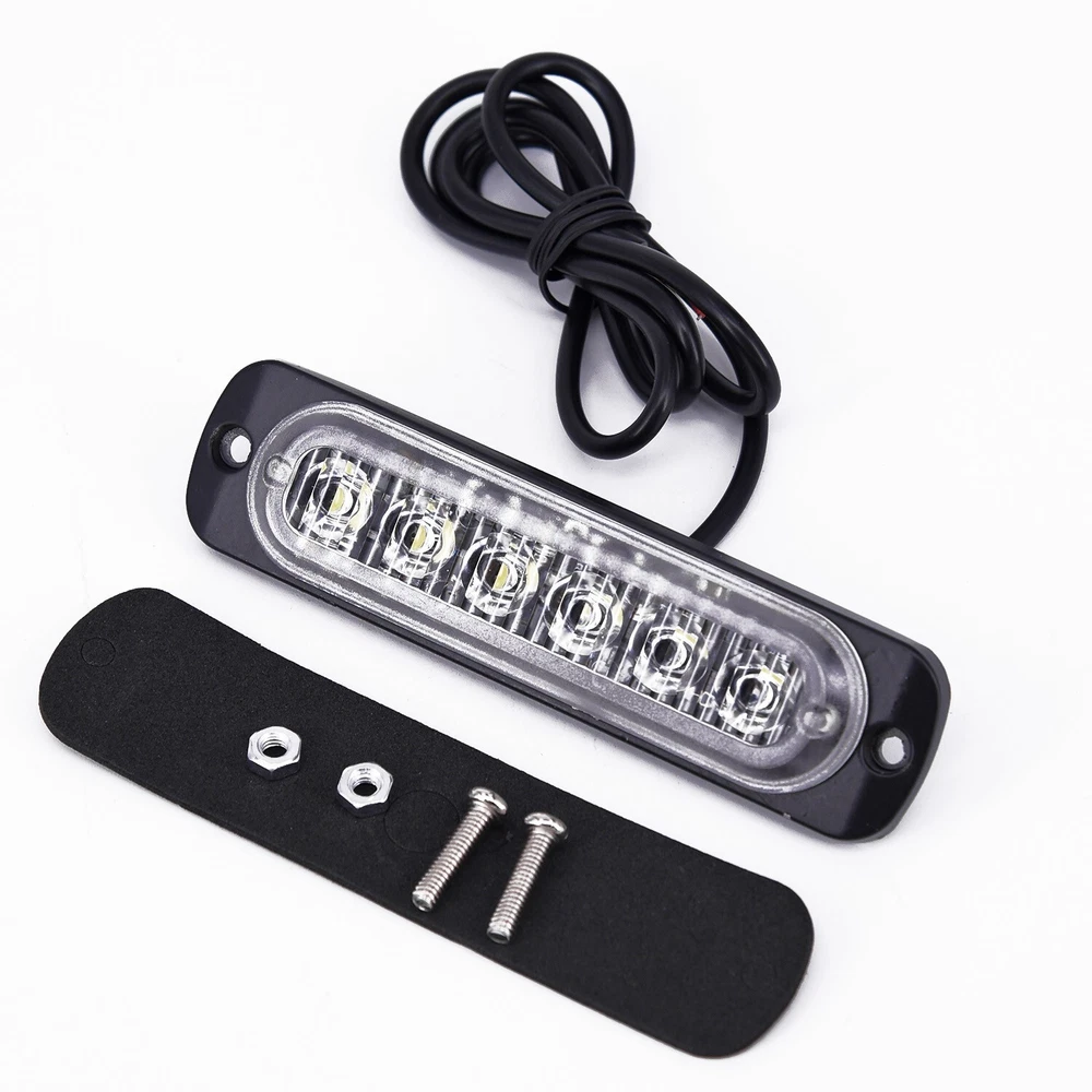 Vehicle Flash Light Mounting Accessories Headlight Running Fog Accessories Part DESCRIPTION Features: *Car 6LED for DRL Daytime Running Light Flash Light *Can be used as fog light and headlight *Super bright white light, giving your car an extra glow *Easy to install *Low power consumption, energy saving and *Long lifespan, to use *Suitable for DC 12V-24V Car, SUV, Van, Truck, for ATV, UTV * brand new and high quality Specifications: *Housing Material: Diecast Aluminum *Item Color: Black Housing + Clear Lens (As Pictures Show) *Light Color: White (As Pictures Show) *LED Number: 6SMD *Voltage: DC 12V-24V *Current: 333mA *Power: 18W *Dimension: 112*28mm (Approx.) *Wires Connection: Black wire for Negative, Red wire for Positive and Yellow wire connection Positive change flashing mode Package Contents: 1*Flash Light 1 Set of Mounting Accessories Note: The real color of the item may be slightly different from the pictures shown on website caused by many factors such as brightness of your monitor and light brightness. POLICES Shipping Payment WARRANTY We only ship to confirmed Paypal addresses. Please comfirm that your paypal address is in line with your shipping address. Please kindly note that the c ombined shipping is not provided because the shipping fee is calculated by weight. Also, the each additional item means exactly the the same color and size. It takes about 7 -15 working days to US; about 10-30 working days to other countries. Transit time may be a little delayed because of the bad weather and customs inspection . If you do not receive your item within 30 working days since payment finished, please contact us immediately for further assistance. We accept payment via Paypal only. Payment must be made within 5 days, Non-payment may result in an UPI (Unpaid Item), eBay will automatically close your account if you accumulate 4 UPI's total. Import cutoms duties or taxes which are not included in item price, if any, are on buyer's responsibility. You can check with your local customs office for further information prior to bidding/buying. We strive for 100% customer satisfaction! Positive Feedback is very important to us. If you have any questions, p lease feel free to contact us via "Ask seller a question" . We will reply your email within 24 working hours.