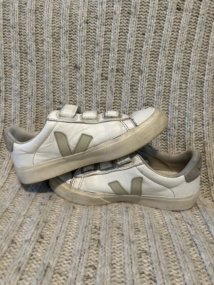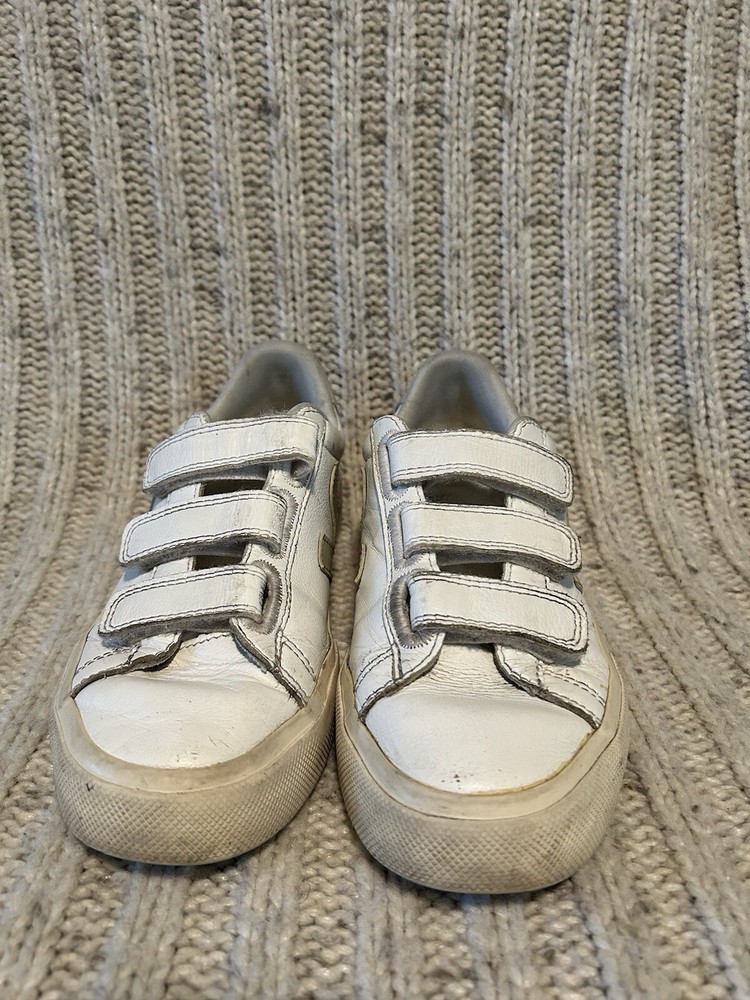 Veja T2 White Leather Sneakers Logo Triple Strap Womens Size 5. Refer to pictures for color, pattern and condition details!! Let me know if you have any questions. Priced to sell! Thanks so much for stopping by.