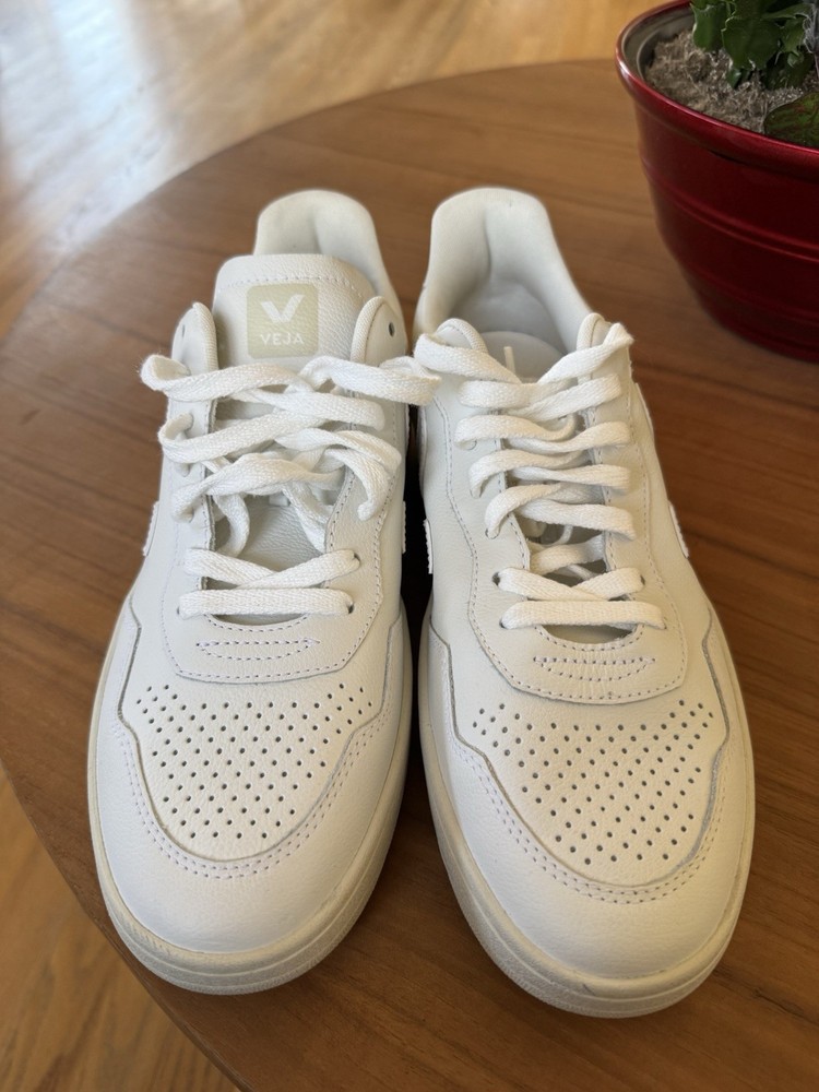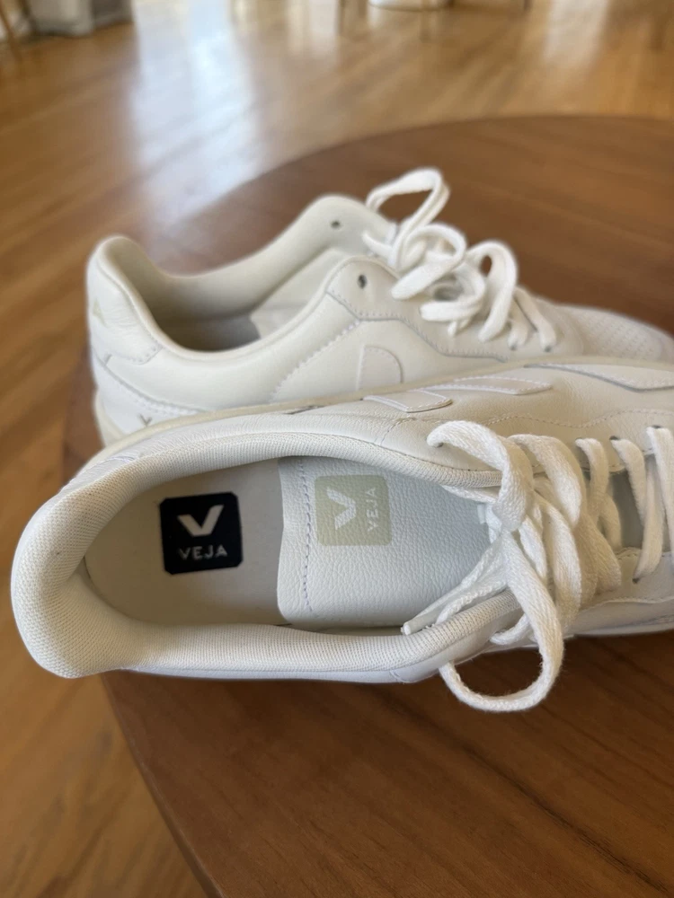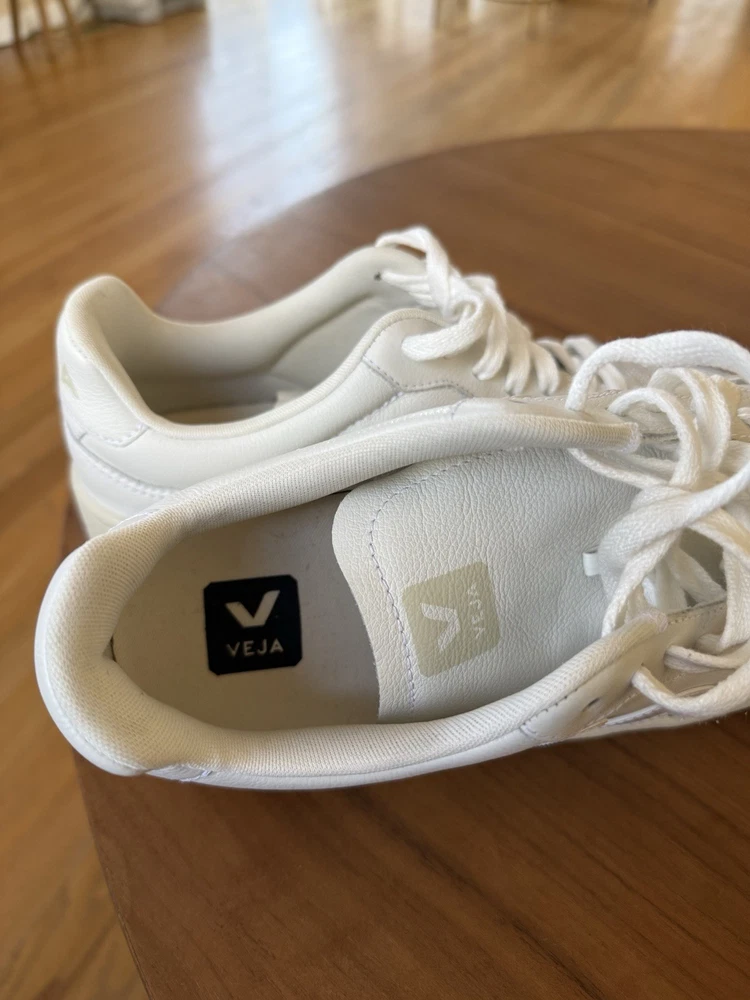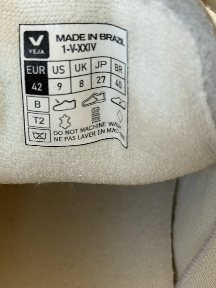 EU Shoe Size: 42 US Shoe Size: 9 Type: Athletic Closure: Lace Up Color: White Character: Designer Theme: Designer Country of Origin: Brazil Brand: VEJA Vintage: No Upper Material: Leather Customized: No Inventory Control: S1 Pattern: Solid Style: Sneaker Features: Sneakers Model: Veja V-90 Department: Men UK Shoe Size: 8 Gender: Men's