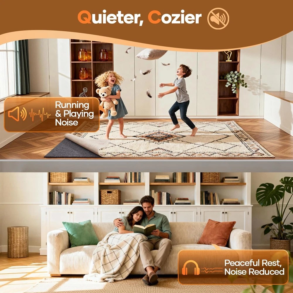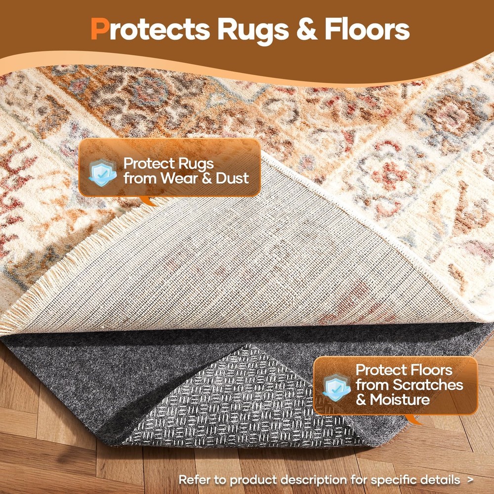 Veken Non Slip Cushioned Runner Rug Pad Gripper 2 2' x 7' (Rectangular), Grey Description Features: Helps Prevent Rug Slippage: Designed with a unique high-density cross-bar texture and silicone backing, this carpet underlay provides a powerful anti-slip grip. Keeps area rugs securely in place, preventing sliding, bunching, and wrinkling. Cushioning Rug Gripper with Comfort Support: Choose from 3 thickness options to add the right level of comfort underfoot. The dense felt fiber blend creates a soft yet durable cushion, making your area rugs more comfortable and long-lasting. Protects Rugs and Floors from Damage: Works as a protective layer between carpet and floor, reducing scratches, dents, and daily wear. Extends the life of hardwood, tile, or laminate flooring while keeping rugs cleaner by minimizing trapped dust and dirt. Easy to Cut and Customize: Precision-cut with minimal size error for a perfect fit. This needle-punched, glue-free design won't fray, and can be trimmed with household scissors. Fits any rug size or shape. Safe & Versatile Design: Made from odorless and eco-conscious materials, safe for everyday home use. Provides added warmth and sound insulation, making it an ideal rug gripper for hardwood floors, carpet protection, or multi-surface use. Product Details: Handling We will ship all orders within 1 business day of payment. Delivery We Do Not Ship Outside of the Continental US. Return Policy All items qualify for returns within 30 days of receipt. Buyer is responsible for return shipping on any item that is not damaged. Feedback We take our reputation seriously, we buy and sell online, so we understand the value of trust. If you are unsatisfied with your order, please contact us and we will work with you to resolve it to your satisfaction.