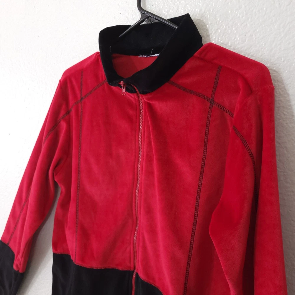 Velour Jacket Womens Size 10 Red and Black Colorblock Stretch Zipper Long Sleeve