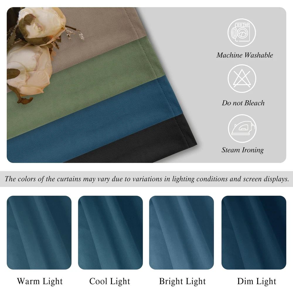 Elevate Your Room with a Colorful Touch! Our Gorgeous Velvet Valances Add Style & Charm, Brightening Your Space for a More Enjoyable Work & Life. Quality You Can Feel: Made from a Blend of Flax Linen & Polyester, Stitched Perfectly with No Loose Threads. Hassle-Free Shopping: We Offer Easy Returns if You Encounter Any Issues. Unique Features: Soft Fabric, Flawless Stitching. Light Filtering for Privacy & Comfort. Easy Care: Machine Washable in Cold Water, Tumble Dry for Easy Maintenance. Long-Lasting: Our Velvet Are Durable, Standing the Test of Time & Frequent Washes. Explore More: Visit Store for a Wide Range of Sheer Curtains, Valances, & Other Window Treatments! BASIC INFORMATION: This package contains 2 velvet curtains with dimensions of 52"W x 108"L. Back Tab and Rod Pocket making it suitable for hanging from both standard and decorative curtain rods. EXCELLENT FABRIC QUALITY: Crafted fully from 100% polyester, our velvet curtains are incredibly soft and smooth to the touch, creating a room-darkening effect for enhanced privacy. HOME DECORATION ENHANCEMENT - With the different color combinations and excellent drapability, our velvet curtains can be suitable for various scenes, bringing a sense of nobility. Our curtains can be used standalone or paired with long voile curtains to enhance the elegance and charm of your home's interior. EASY TO USE: These silky smooth velvet curtains are quick to install and maintain, perfect for decorating your kitchen, living room, bedroom, and other spaces. The tiebacks sewn on both sides of the curtains allow us to operate the curtains more conveniently. EASY CARE: Our velvet curtains are machine washable, tumble dry on low or natural dry, iron at low temperature, no bleaching.