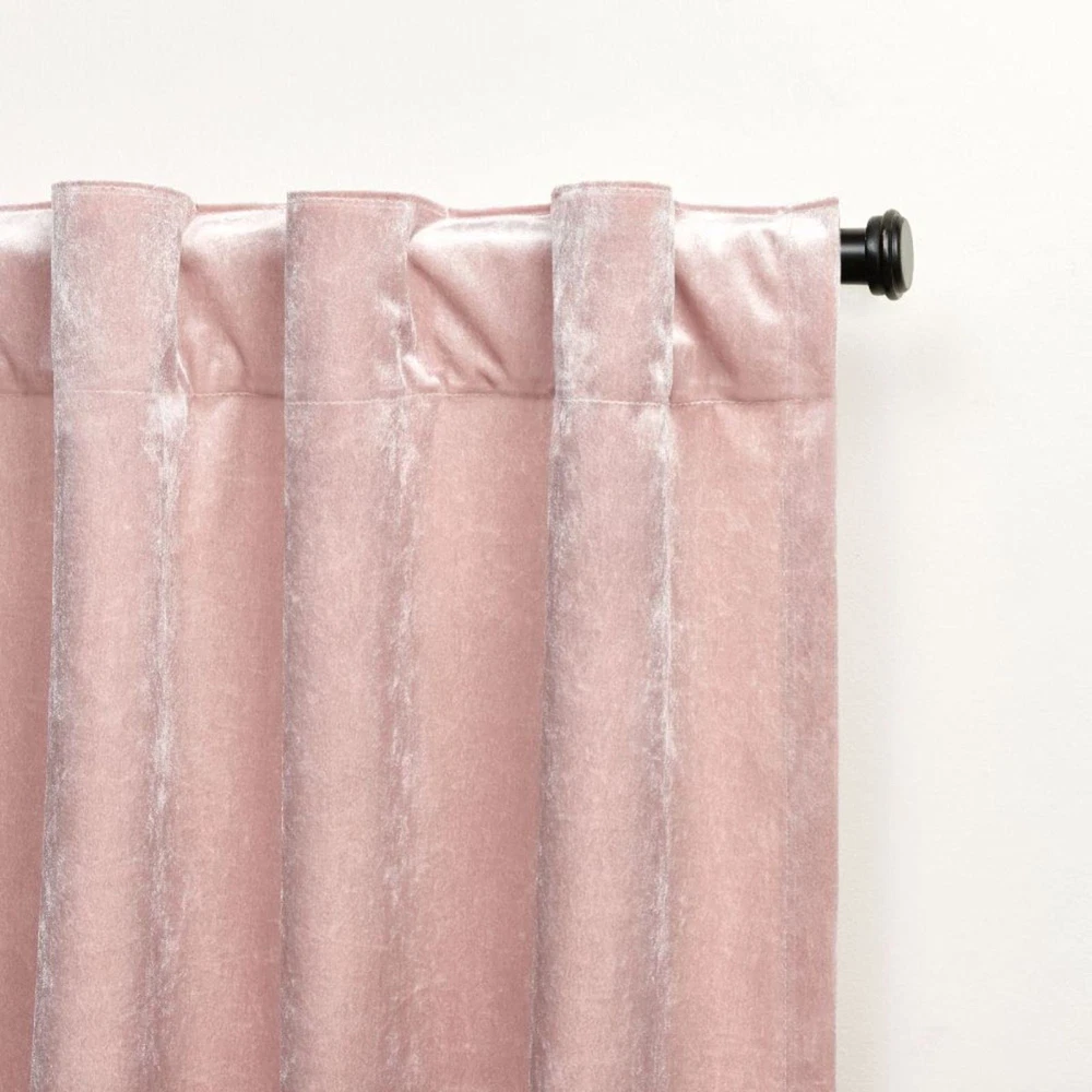 The Velvet Heavyweight Tab Top Window Curtain Panels in blush bring a luxurious look and feel to any room and offer a simple way to add color and texture to your decor. These plush velvet panels have a light-filtering opacity and filter light beautifully into your space while also providing privacy. Hang 3 ways: using the rod pocket, the back tabs, or with curtain clips (not included). For proper look and fullness, the curtains should measure 2-3 times the width of your window. LUXURIOUS: The Exclusive Home Velvet Heavyweight Tab Top Curtains offer a luxurious look for your windows in any room. The light-filtering fabric filters light beautifully into your space while also adding color and texture to your decor. LIGHT FILTERING OPACITY: light filtering opacity provides privacy to your room while still allowing natural light to shine through. It's perfect for diffusing light beautifully into your space. 3 HANGING OPTIONS: Drape these curtain panels (1) from the rod pocket for a classic look, (2) using the tabs to create an elegant pleated effect, or (3) using clip rings for easy, slide open and closed (clip rings are not included). Fits up to 1.5" diameter rod. SET OF CURTAIN PANELS: Includes (2) curtain panels, each measuring 52"x 63". For proper look and fullness, the curtain panels should measure 2-3 times the width of your window/opening. PLUSH VELVET: These well-crafted, plush velvet panels enhance any space in your home with vivid color and lavish texture, Hang them in your living room, dining room, bedroom, office, hallway, or entryway.