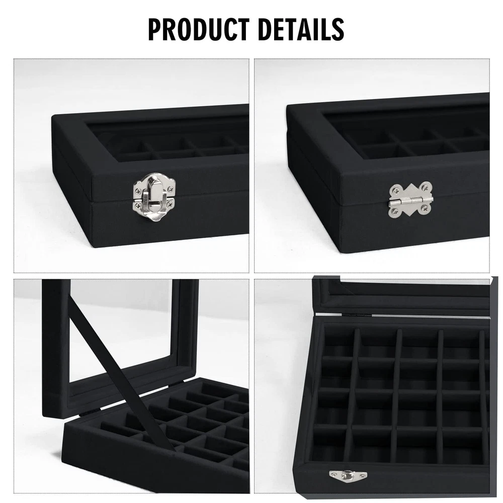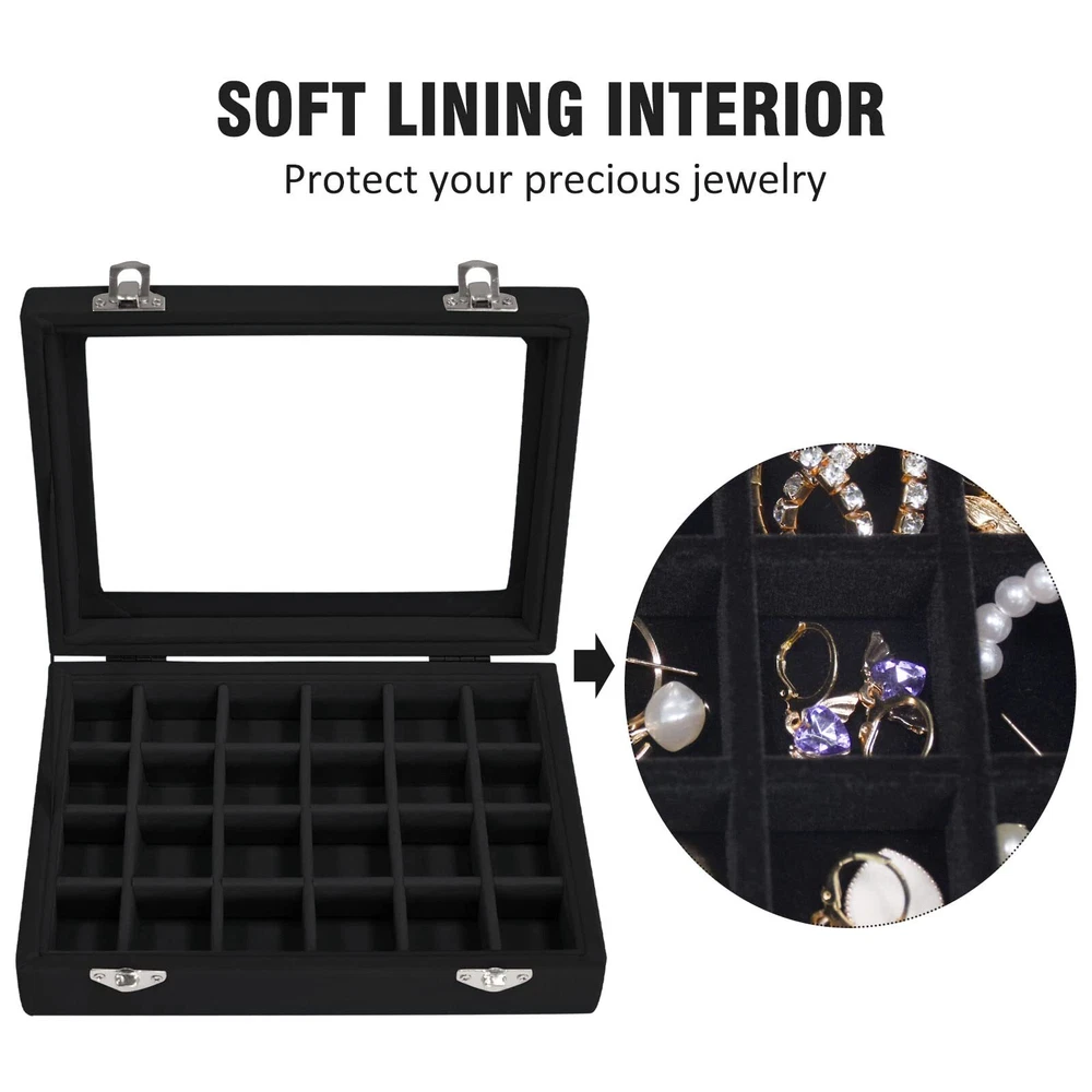 Velvet Jewelry Box 24 Grid Jewelry Ring Display Organiser Box Tray Holder Case Product features: The Victor Jewelry Display Organizer Tray is wrapped in high-quality velvet fabric and replaced with regular cardboard through durable composite boards, making the product suitable for long-term use. At the same time, it ensures that the jewelry display box can effectively protect your jewelry from scratches. Easy to carry: The size of the Vioter Jewelry Display Storage Box is 8in X 6in X 1.8in. The product is lightweight, easy to carry, easy to store, and does not take up too much space. No matter where you are, the Vioter Velvet Jewelry Storage Box helps organize your rings, earrings, and other accessories. Focus on practicality: The lid is composed of transparent glass covers, which can quickly discover the jewelry you are looking for through the glass. To prevent the lid from accidentally opening when carrying the jewelry display box, we have adopted a design of two locks. Extended use: The detachable partition design allows you to adjust your jewelry needs by disassembling or adding partitions to meet your storage needs. At the same time, you can use it as a birthday, Valentine's Day, Mother's Day, or Christmas gift to give to your mother, girlfriend, wife, daughter, colleagues, friends, and so on. Follow Services: We focus on the quality of our products and just hope that we can do more for you. In addition to the products, we also hope that our service can satisfy you. Please feel free to contact us at any time. Shipping We offer FREE shipping on all orders! We ship within Three business days of payment, usually sooner. We use a selection of shipping services such as UPS, FedEx, USPS etc. We only ship to the lower 48 states, no APO/FPO addresses or PO Boxes allowed. Local pickups and combined shipping options are not provided at this time. Return You can return a product for up to 30 days from the date you purchased it. Any product you return must be in the same condition you received it and in the original packaging. Please keep the receipt. Payment We accept payment by any of the following methods: PayPal Please pay as soon as possible after winning an auction, as that will allow us to post your item to you sooner! Feedback Customer satisfaction is very important to us. If you have any problem with your order, please contact us and we will do our best to make you satisfied. Contact Us If you have any queries, please contact us via ebay. We usually respond within 24 hours on weekdays. Please visit our eBay store to check out other items for sale! Thank you for shopping at our store.
