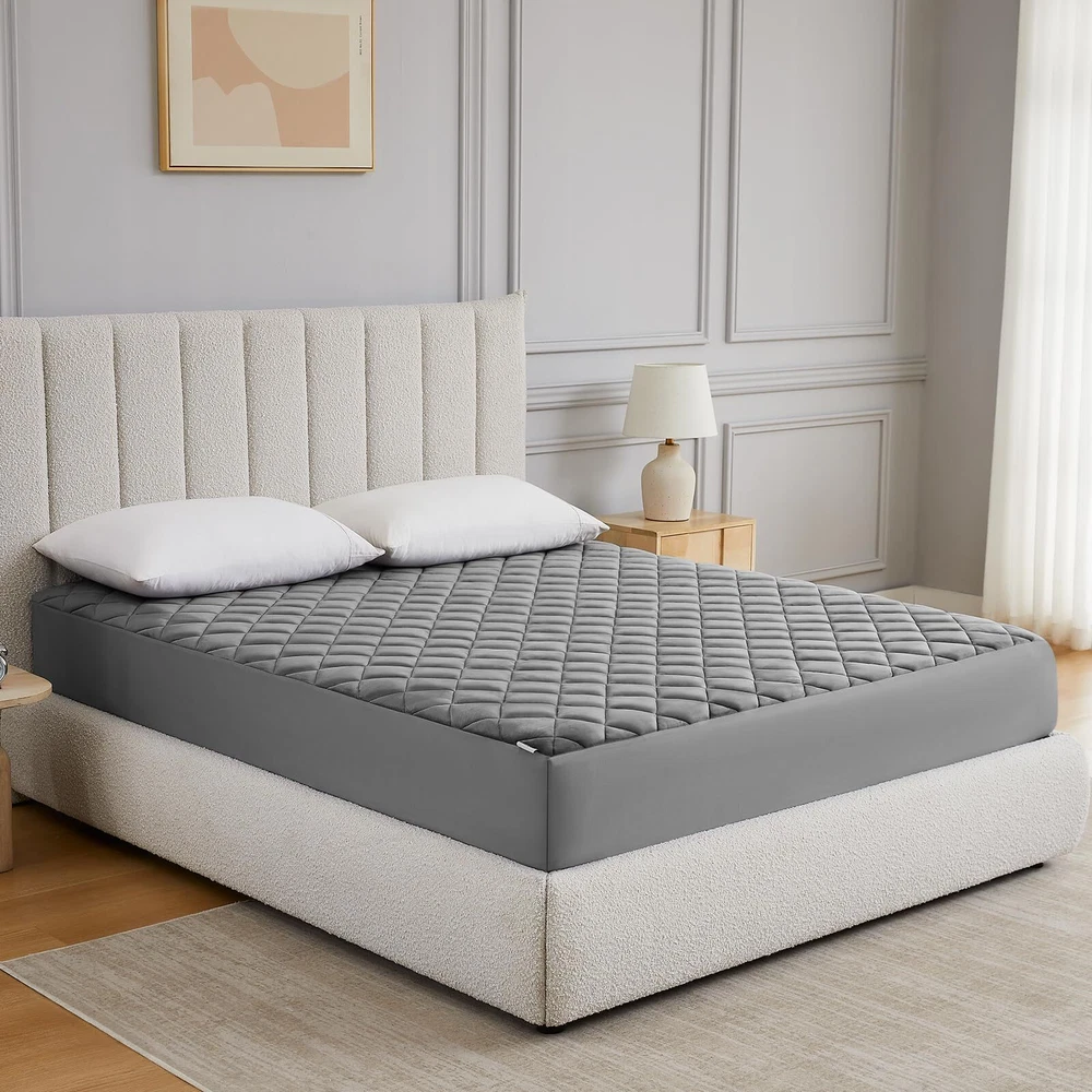 FLUFFY & SOFT MATTRESS PAD: Our mattress pad is made of crystal velvet and down alternative filling, which is soft and anti-static, providing you and your family with a comfortable and cozy sleeping experience. SKIN-FRIENDLY AND BREATHABLE: Due to the qualified fabric and good workmanship, people who are on this mattress topper feel very comfy and breathable, even for people with hot body. THOUGHTFUL QUILTING DESIGN: Compared to the normal quilting seam, this square jacquard is more supportive, soft and durability. Quick drying and resistant features help save your time and your bill. FITTED SHEET STYLE: The 360° fabric pocket sides can be easily stretched to fit mattresses up to 21" thick. This mattress cover will hold tight on all mattress types, whether it's a regular mattress, a waterbed, or memory foam. It will never slide no matter how you twist and turn in your bed. CARE INSTRUCTIONS & SERVICE: Machine washable under gentle cycle with cold water, tumble dry low. Pleased do not dry clean, iron or use bleach. You will get mattress pad, our worry-free 24-month, and reliable will respond to you within 24 hours.