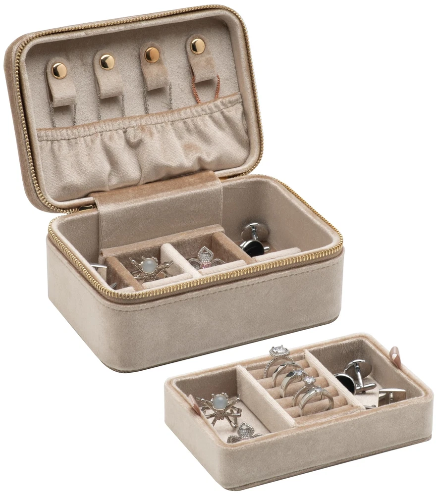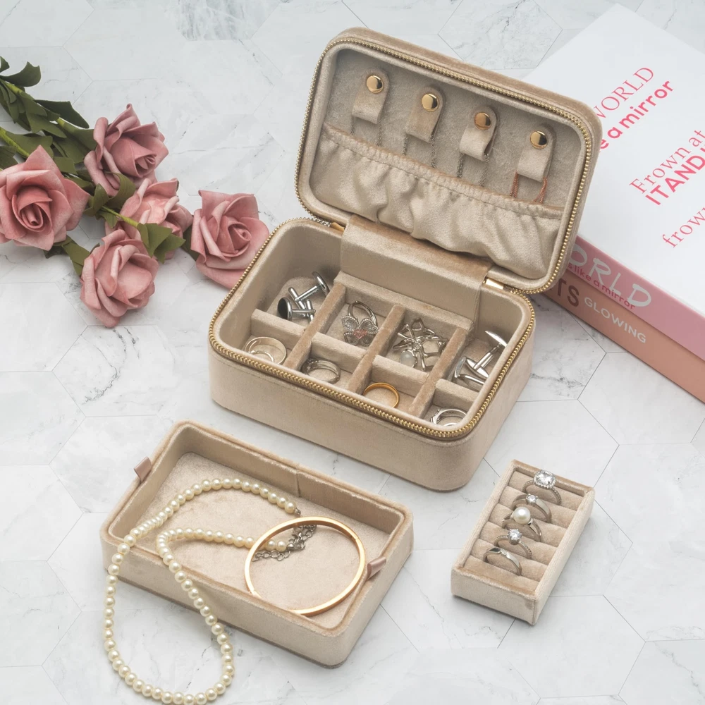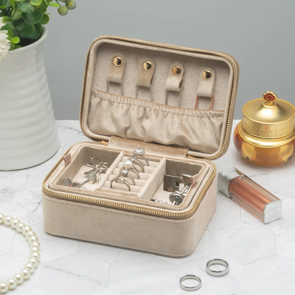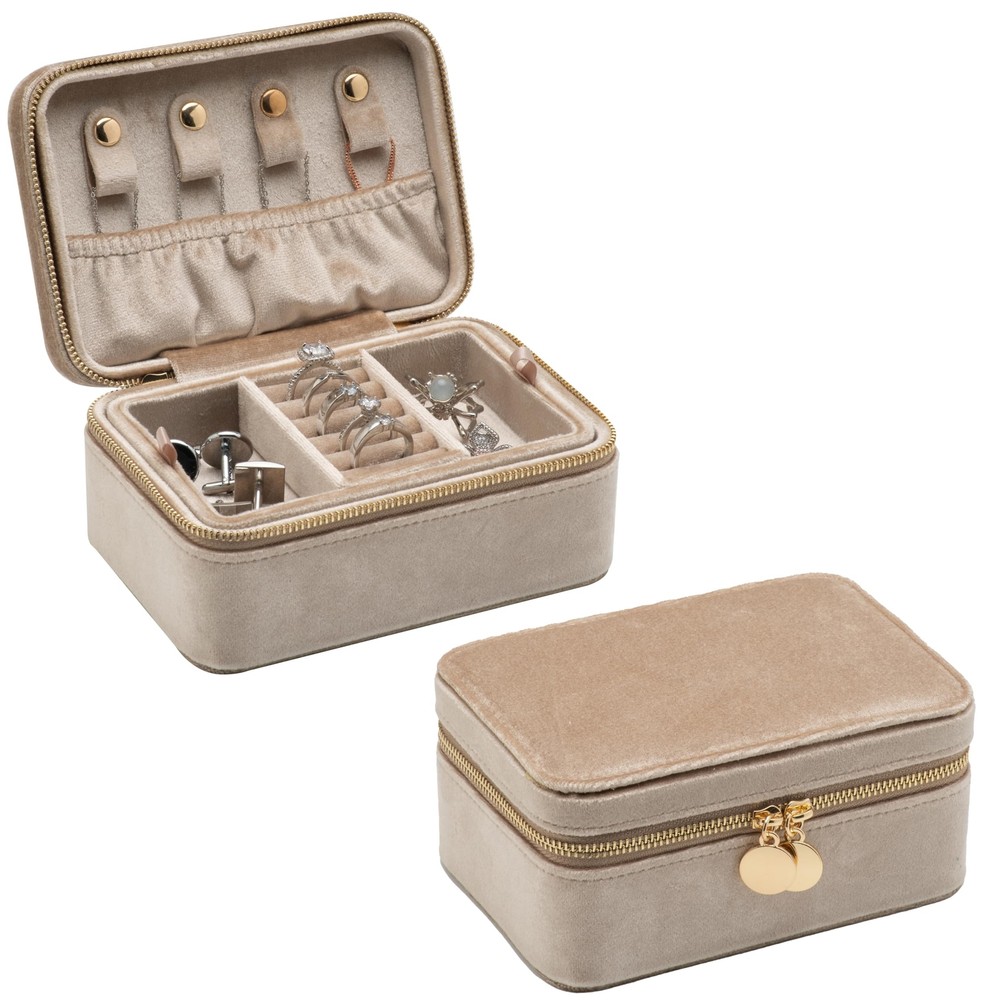Velvet Travel Jewelry Organizer Box with Zipper Around Portable Accessory Display Tray Holder Storage Case for Multiple Earrings Rings Necklaces Bracelets (Beige) - Buy Now with Fast Shipping! Velvet Travel Jewelry Organizer Box with Zipper Around Portable Accessory Display Tray Holder Storage Case for Multiple Earrings Rings Necklaces Bracelets (Beige) Product Details Color: Beige Brand: COWFEX Material: Velvet Style: Modern Special Feature: Removable Compartments, Double Zipper Pull Head, Zipper Around Recommended Uses For Product: Necklace, Bracelet, Ring, Watch, Earring Product Dimensions: 6.1"D x 3.35"W x 4.33"H Target Audience: Women Shape: Rectangular Finish Type: Brushed Color: Beige Brand: COWFEX Material: Velvet Style: Modern Special Feature: Removable Compartments, Double Zipper Pull Head, Zipper Around Recommended Uses For Product: Necklace, Bracelet, Ring, Watch, Earring Product Dimensions: 6.1"D x 3.35"W x 4.33"H Target Audience: Women Shape: Rectangular Finish Type: Brushed Inner Material: Velvet Number of Drawers: 2 Item Weight: 494 Grams Jewelry Storage Type: Jewelry Box Number of Items: 1 Manufacturer: COWFEX Occasion: Mother's Day, Christmas, Anniversary, Birthday, Valentine's Day Mounting Type: Table Top Closure Type: Zipper Part Number: PN078 Item Weight: 1.09 pounds Country of Origin: China Item model number: PN078 Finish: Brushed Item Package Quantity: 1 Special Features: Removable Compartments, Double Zipper Pull Head, Zipper Around Batteries Included?: No Batteries Required?: No Date First Available: April 14, 2023 Key Features ✅ Material: The jewelry box is made of high quality velvet and a sturdy gold-tone hardware, really very soft to protect your jewelry, hard ring box will not break during on the way. ✅ Dimension: Size of 6.1" D x 4.3" H x 3.4" W / 15.5 x 11 x 8.5 cm, this jewelry storage organizer box fits in your tote bag, backbag or luggage. This compact travel jewelry case is designed to be your travel Essentials. ✅ Storage& Display: With double zipper pull head for easy access, the ring display and storage case is great for home, jewelry store, travel or gift presentation for girlfriend, wife, mom.It is giftable on Birthday, Valentine's Day, Mother's day, Christmas, Thanksgiving Day, Anniversary and Wedding. ✅ Compartments: This jewelry organizer box comes with numerous compartments and a removable drawer to provide even more space for your valuable jewelry and favorite fashion accessories. ✅ Elegant Design: Our product features a plush velvet exterior. The inner lining is made of a soft velvet to ensure that your jewelry is scratch-free and safe.Package include: 1 pc of jewelry box.(the jewelrys not including). Product Description