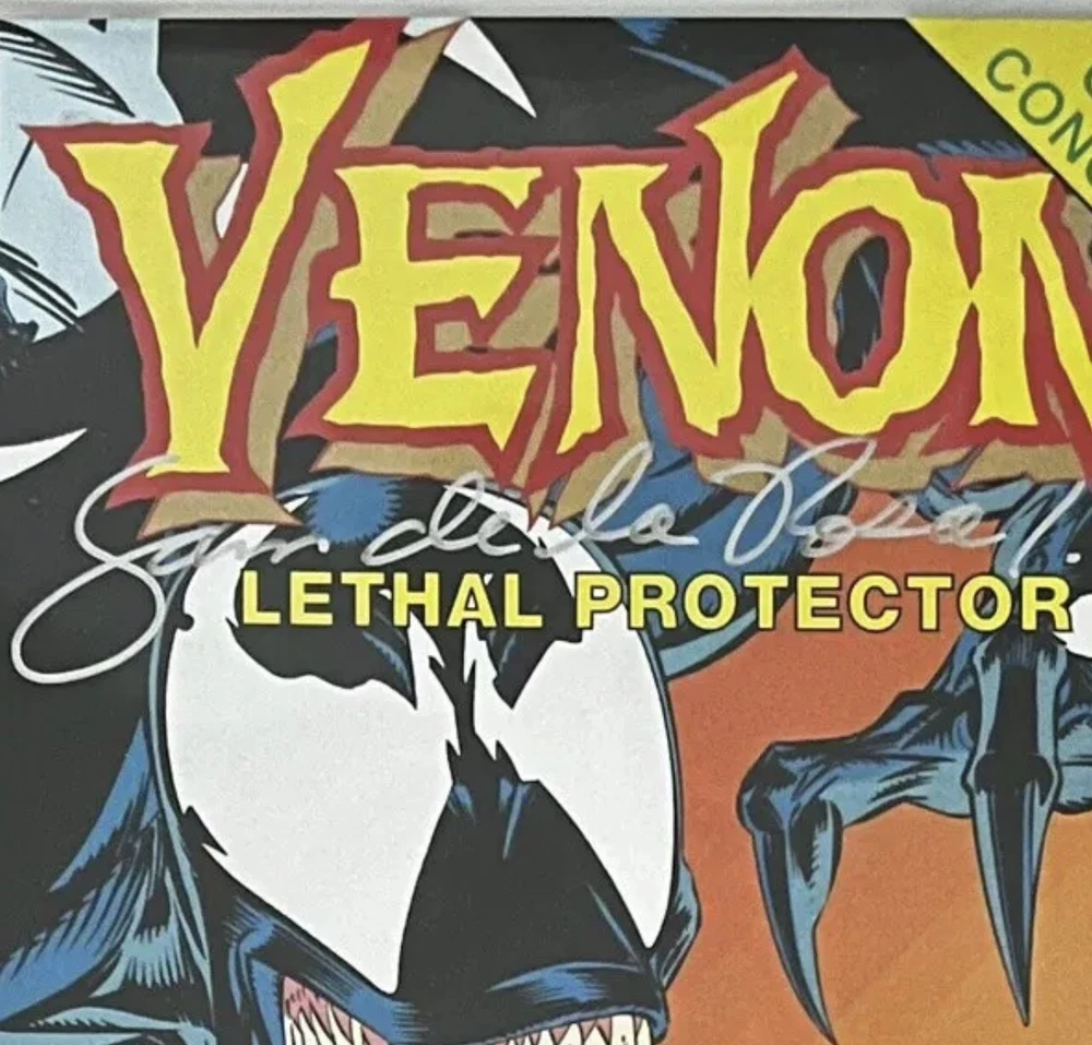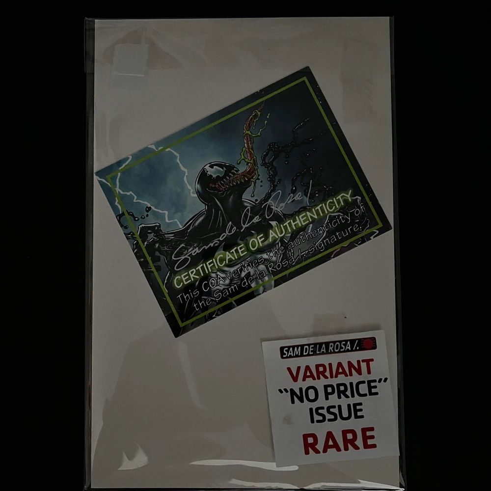 This unique and highly collectible Venom: Lethal Protector comic book variant is a must-have for any fan of the Marvel universe. Featuring the iconic characters Venom and Spider-Man, this single issue comic is signed and remarqued by legendary artist Sam Delarosa, adding an extra special touch to this already rare item. With a 9.8 Near Mint/Mint grade, this comic book is in top condition and perfect for display or adding to a collection. The stunning cover art by Delarosa and Mark Bagley is sure to catch the eye of any comic book enthusiast, and the details on the unit of sale, format, language, and other important aspects are all provided in the accompanying information. Don't miss your chance to own this incredible piece of comic book history.