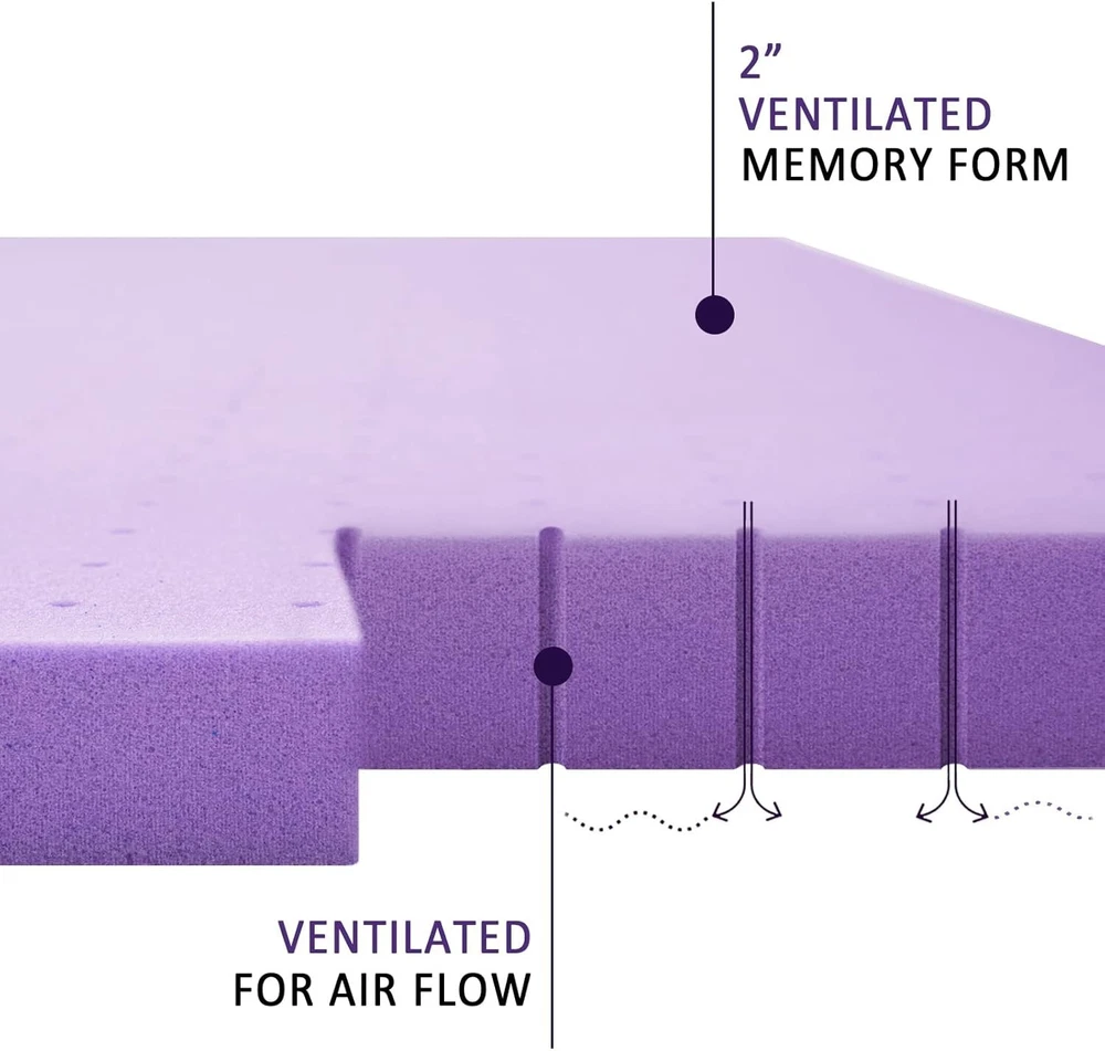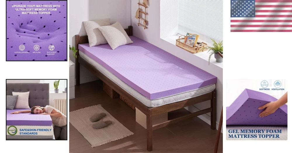 Ventilated Gel Memory Foam Mattress Pad Twin XL - Durable & Machine Washable