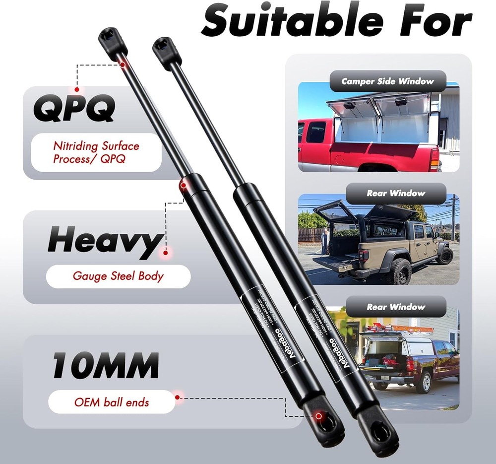 Vepagoo C16-21702 15 inch 40Lb/180N Gas Shocks Struts Spring 15 inch, Black Product Details Compressed Length: 14.45 Inches Manufacturer: Vepagoo Item Weight: 10.6 ounces Package Dimensions: 17.04 x 3.82 x 1.02 inches Item model number: C16-21702 Manufacturer Part Number: SH376A Brand: Vepagoo Color: Black Material: Metal Auto Part Position: Center Extended Length: 8.98 Inches 【15 inch Struts for Truck】Extended length: 15 inch, Force: 40lbs Per Strut. Compatible with Leer ARE Snugtop truck camper shell, topper rear window, truck cap canopy, pickup truck toolbox 【Interchange Numbers】C1621702, C16-21702 【5-mins Installation】Swap out your old strut in your garage—grab a head screwdriver. Unscrew the worn parts, then snap the new strut into your vehicle's original mounting points as easily as building with blocks 【Stable Support & Effortless Control】Lift camper shell, or toolbox lids with one hand—no more wrestling heavy; A smooth, cushioned motion silences jarring metal clangs, while preventing dangerous sudden pops or slams