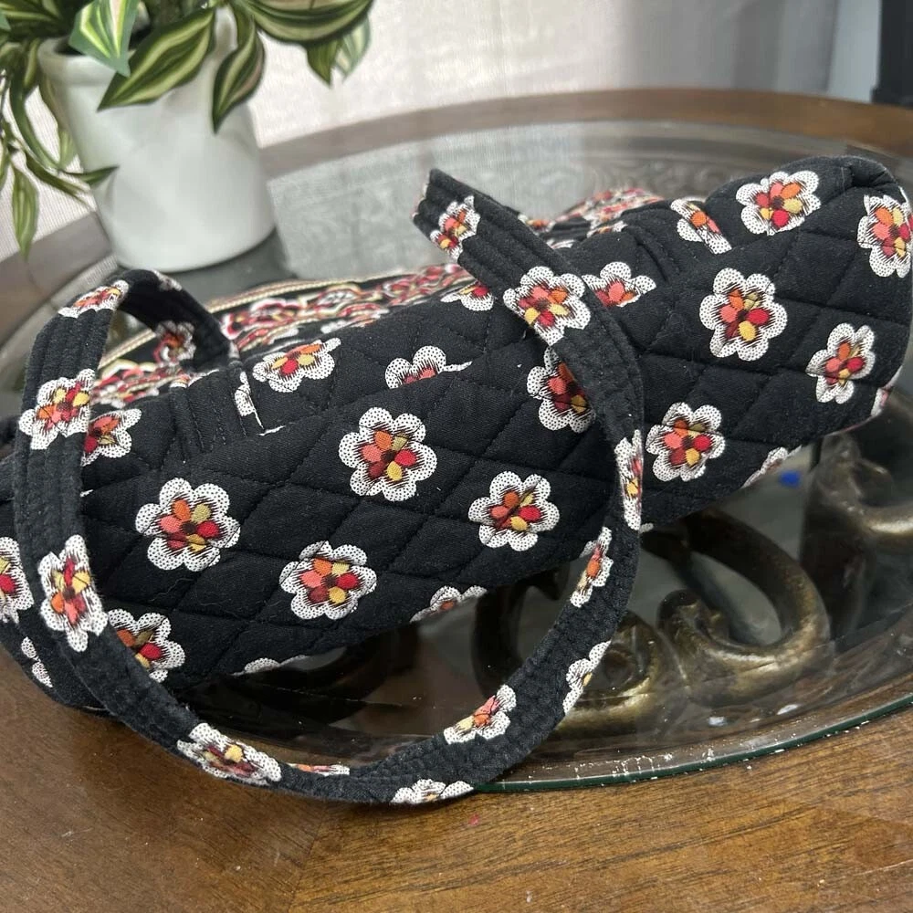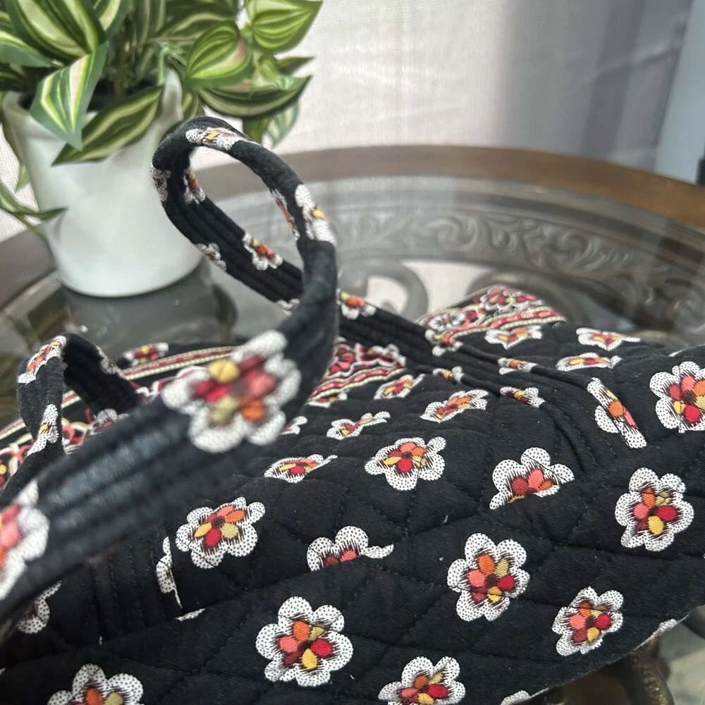 Vera Bradley Black Floral Quilted Top Handle Bag Purse