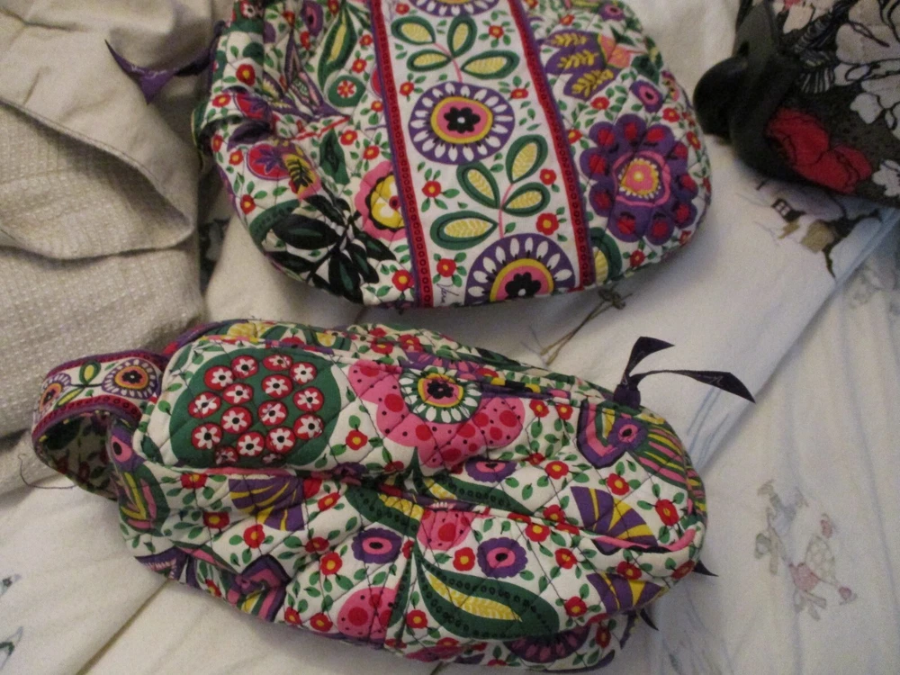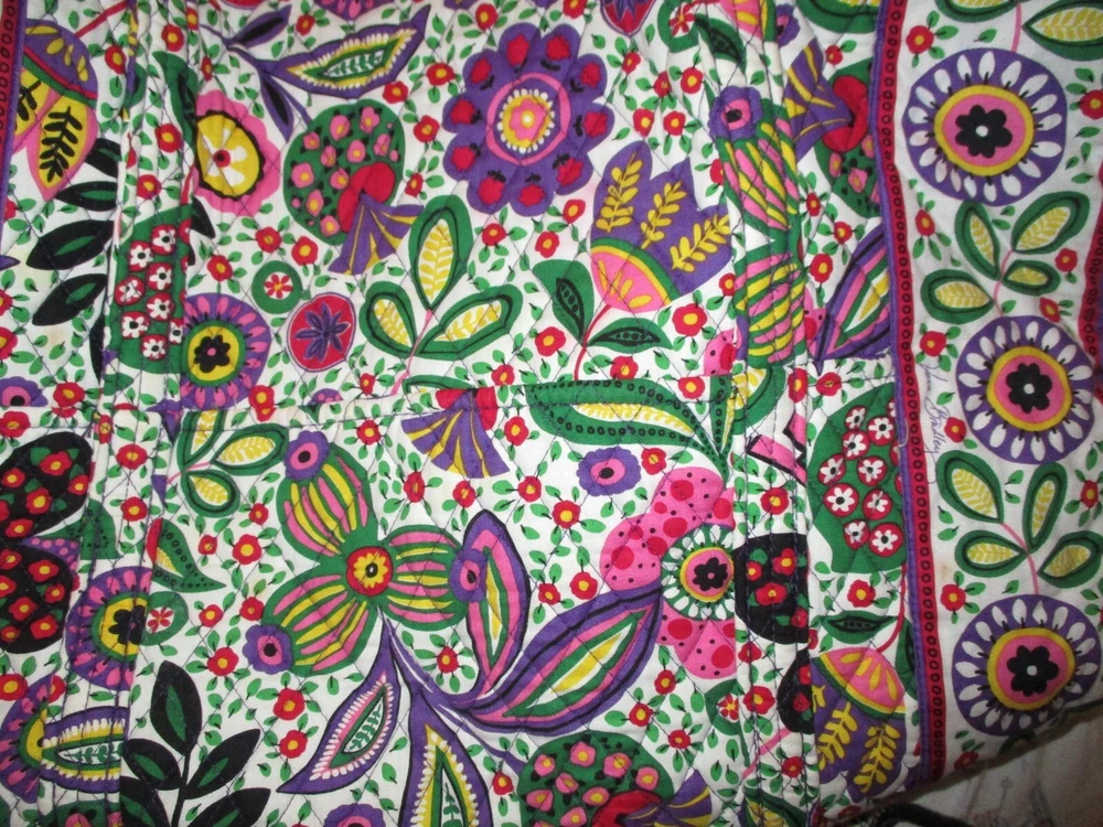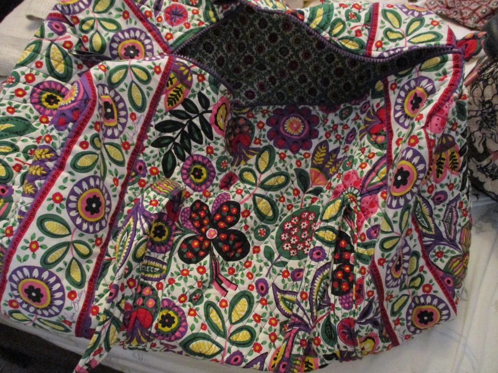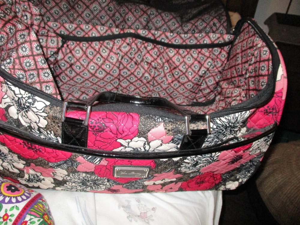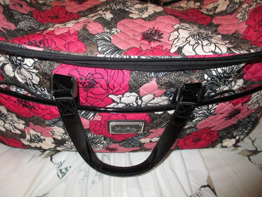 Up for sale is a lot of Vera Bradley bags. 1- Duffle/Roller luggage bag with matching shoe bag, 1-Duffle Bag soft sided, 2-cosmetic bags. As is condition. These all look to be in good condition, never washed, not a lot of wear on wheels, bottoms, Looking for a good home.
