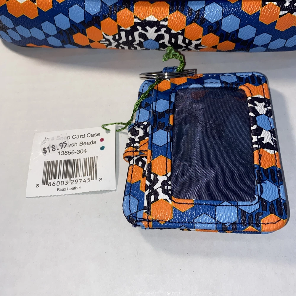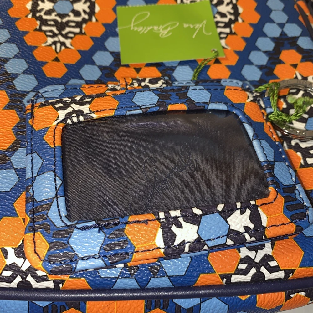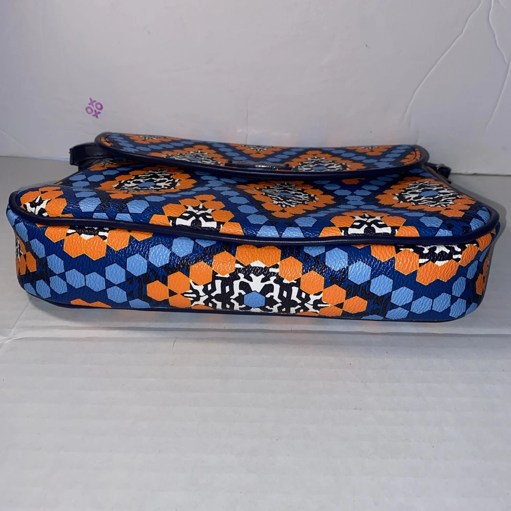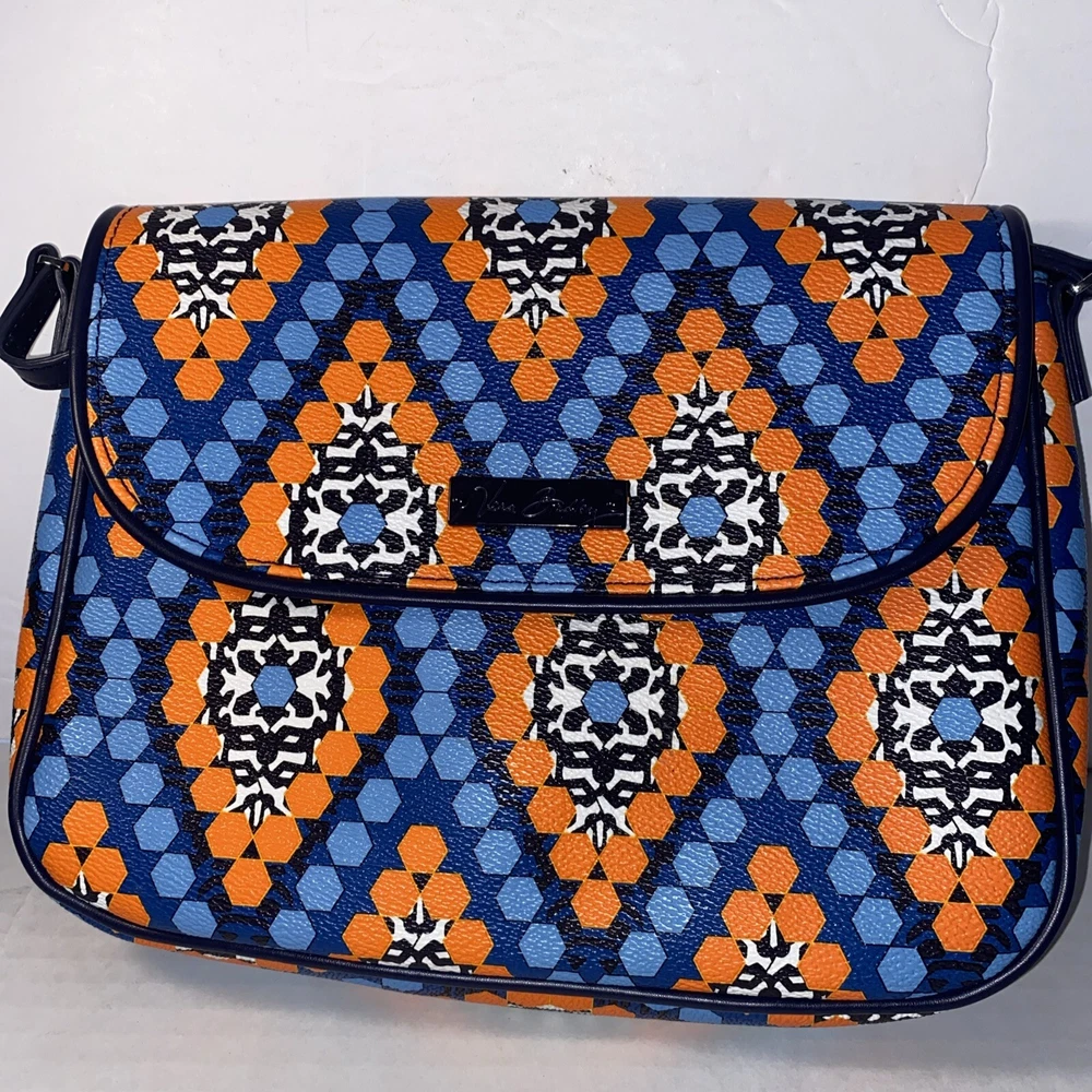 This Vera Bradley Flap Crossbody Bag Purse in Marrakesh Beads pattern is a stylish and functional accessory for women. With a width of 10 inches, height of 7.5 inches, and depth of 2.5 inches, it is a medium-sized bag that is perfect for everyday use. The bag is made of faux leather and features a flap closure, a crossbody strap, and a handle in blue color. The bag is adorned with beautiful beaded accents in a multicolor exterior, which gives it a unique and trendy look. It also comes with a card case, making it a perfect gift for someone special or a treat for yourself. This Flap Crossbody Bag Purse is a must-have for anyone who wants to add a touch of elegance to their daily routine.