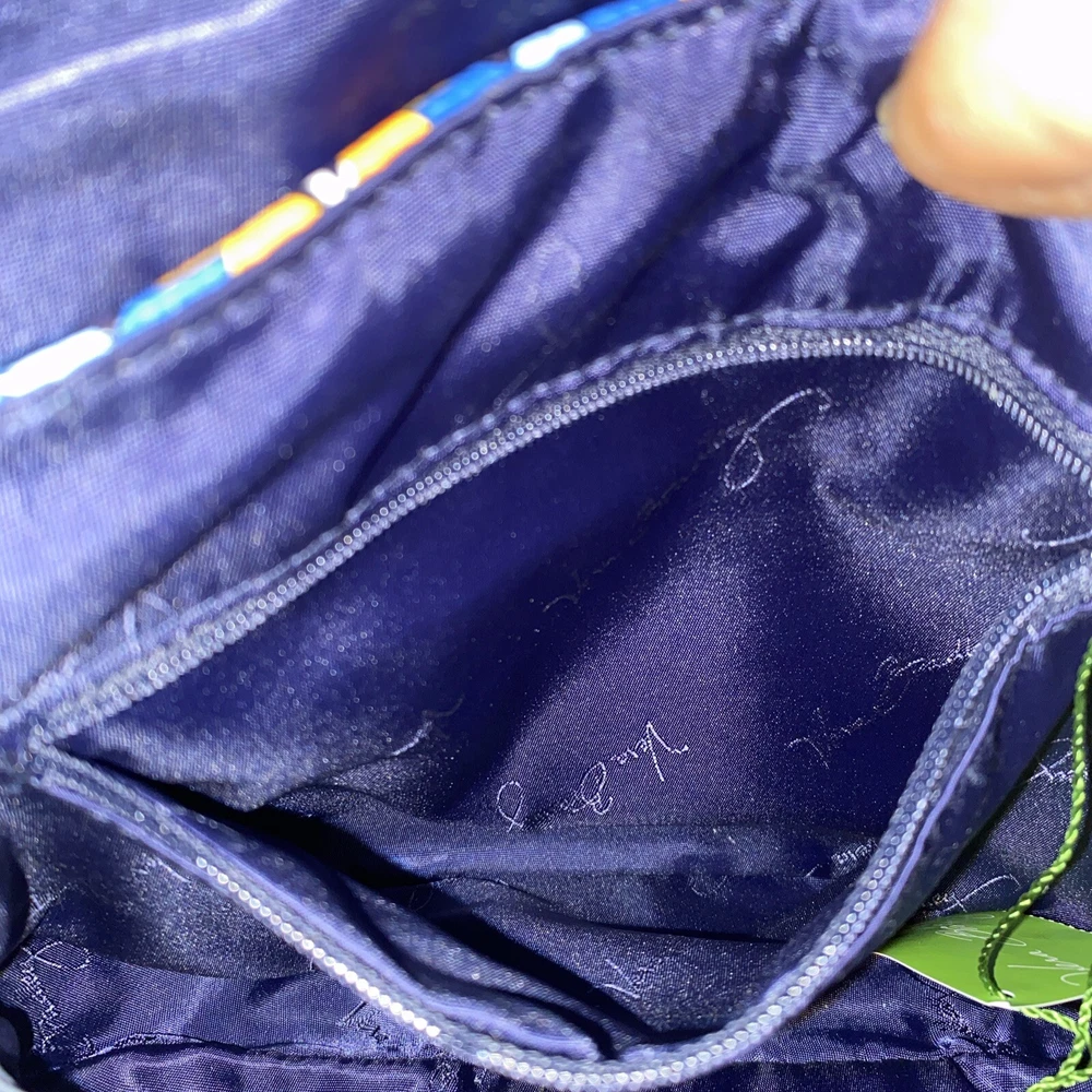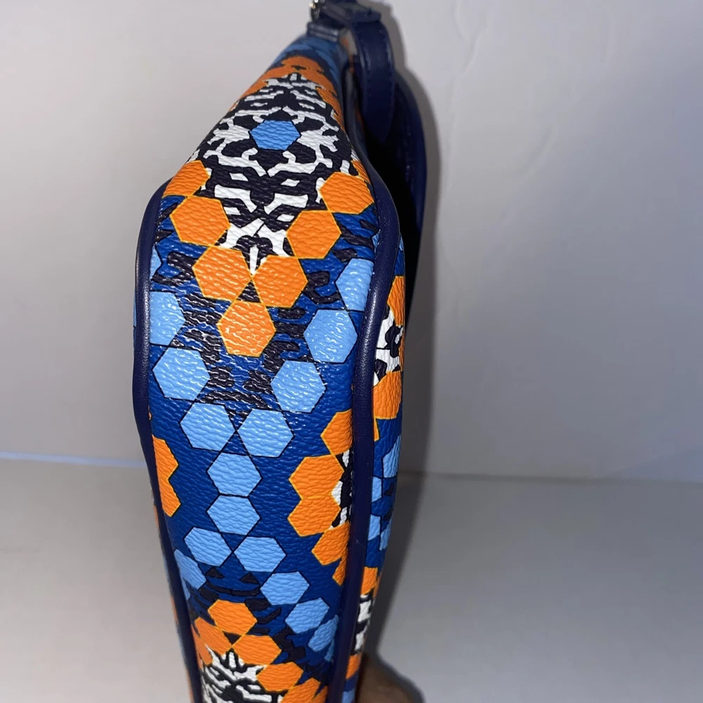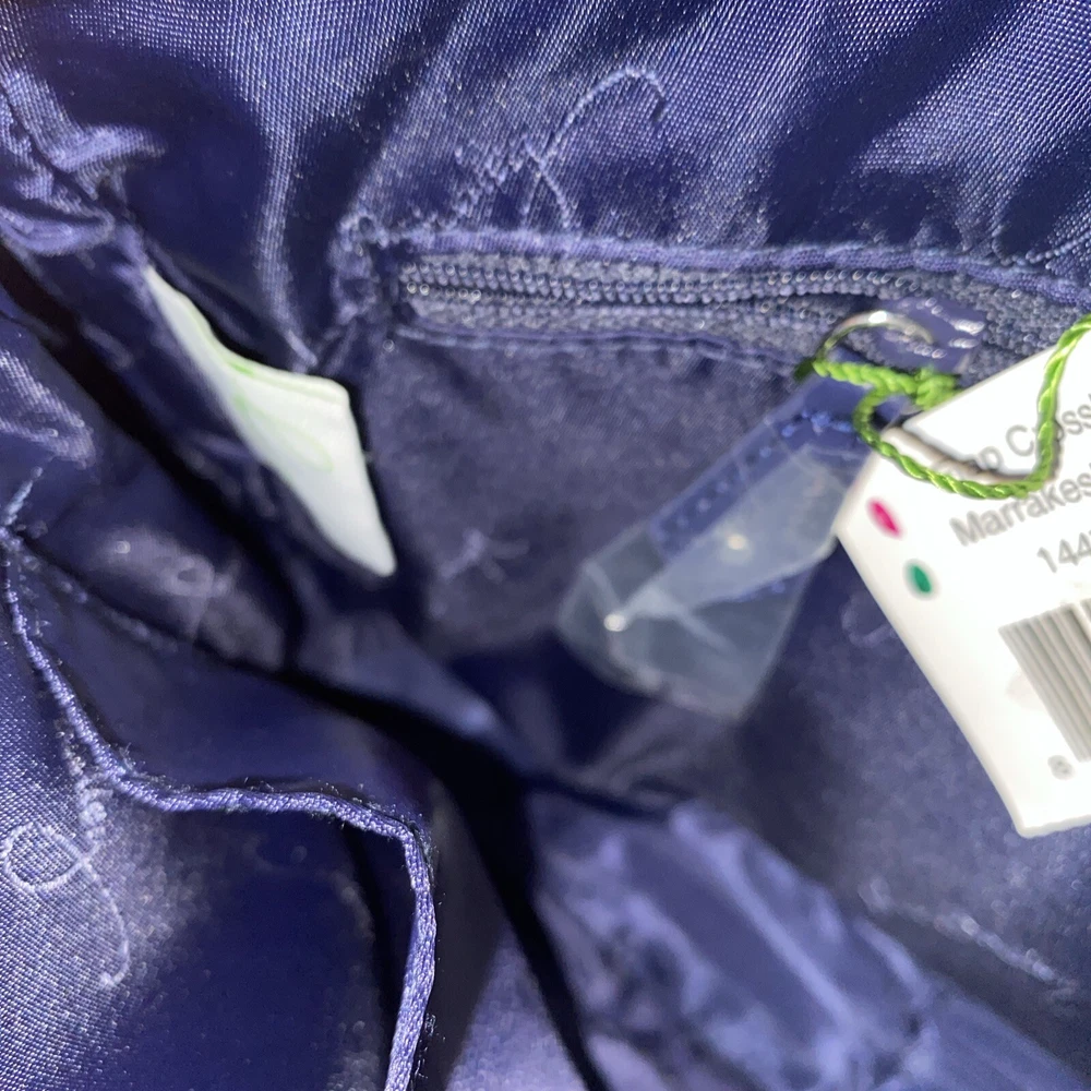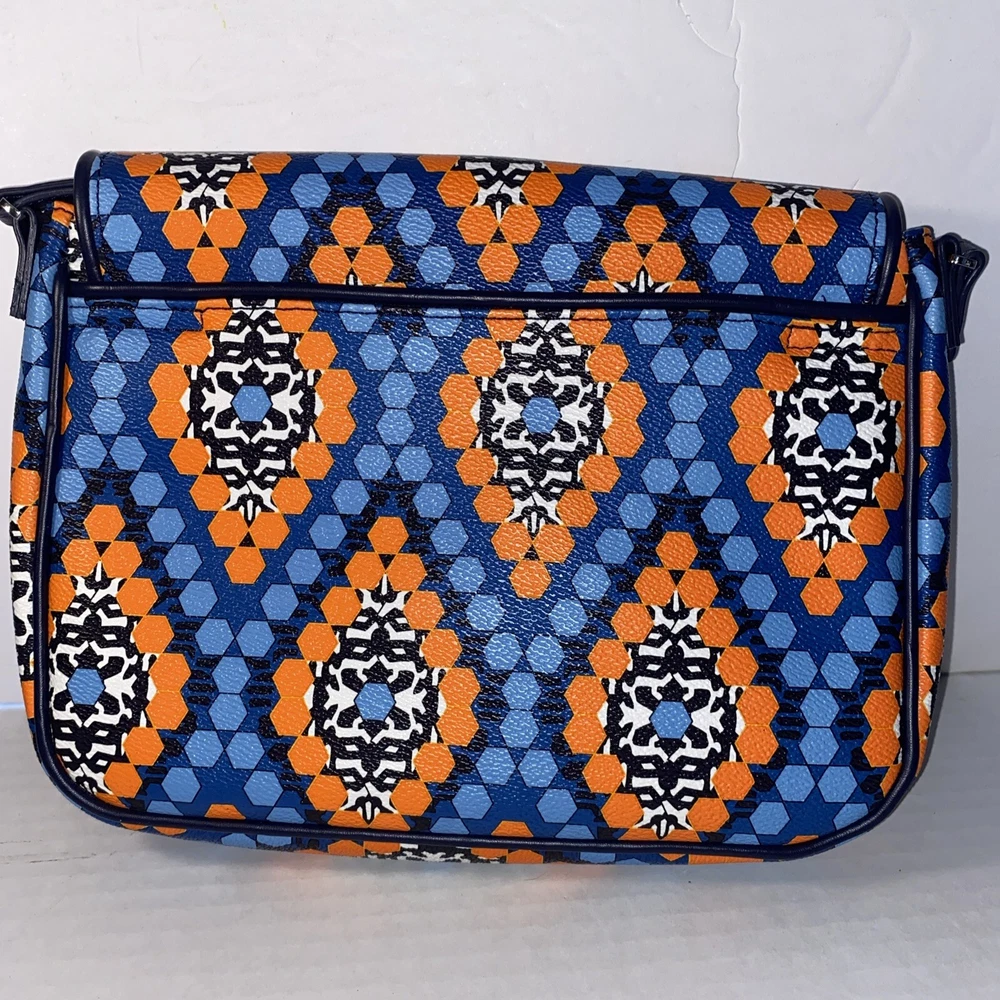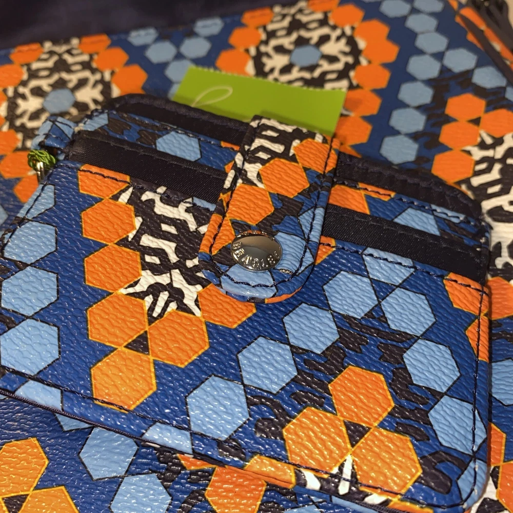 This Vera Bradley Flap Crossbody Bag Purse in Marrakesh Beads pattern is a stylish and functional accessory for women. With a width of 10 inches, height of 7.5 inches, and depth of 2.5 inches, it is a medium-sized bag that is perfect for everyday use. The bag is made of faux leather and features a flap closure, a crossbody strap, and a handle in blue color. The bag is adorned with beautiful beaded accents in a multicolor exterior, which gives it a unique and trendy look. It also comes with a card case, making it a perfect gift for someone special or a treat for yourself. This Flap Crossbody Bag Purse is a must-have for anyone who wants to add a touch of elegance to their daily routine.