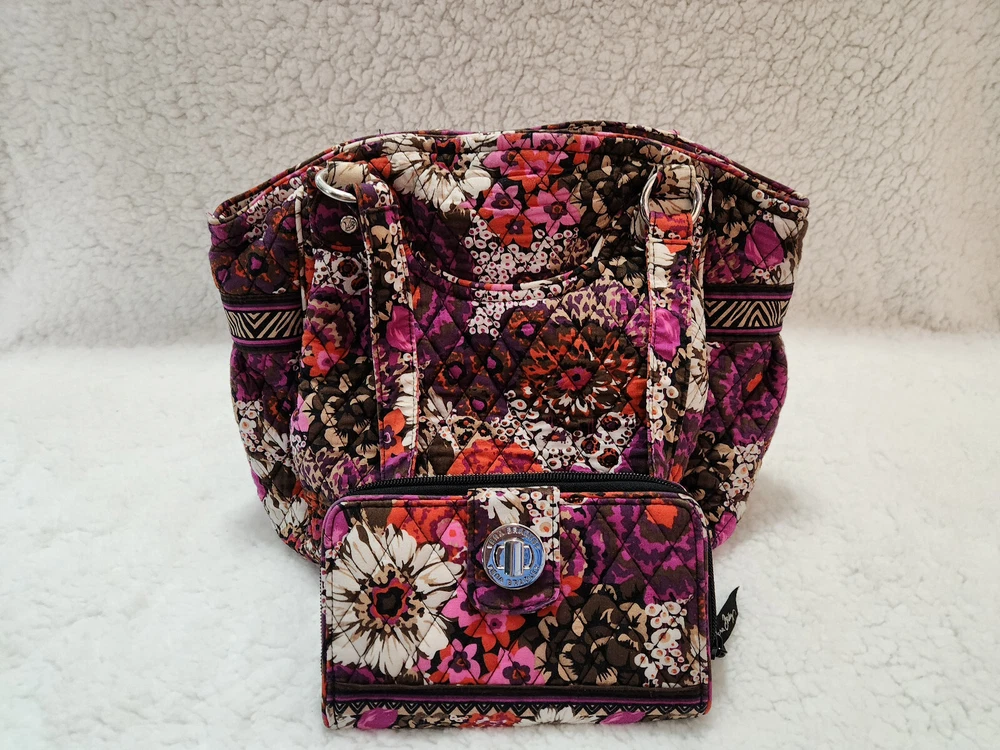 This Vera Bradley purse and wallet are in like new condition. They have been used very rarely and have no blemishes. This handbag and wallet have been kept in a pet/smoke-free household. Please contact if you have any questions.
