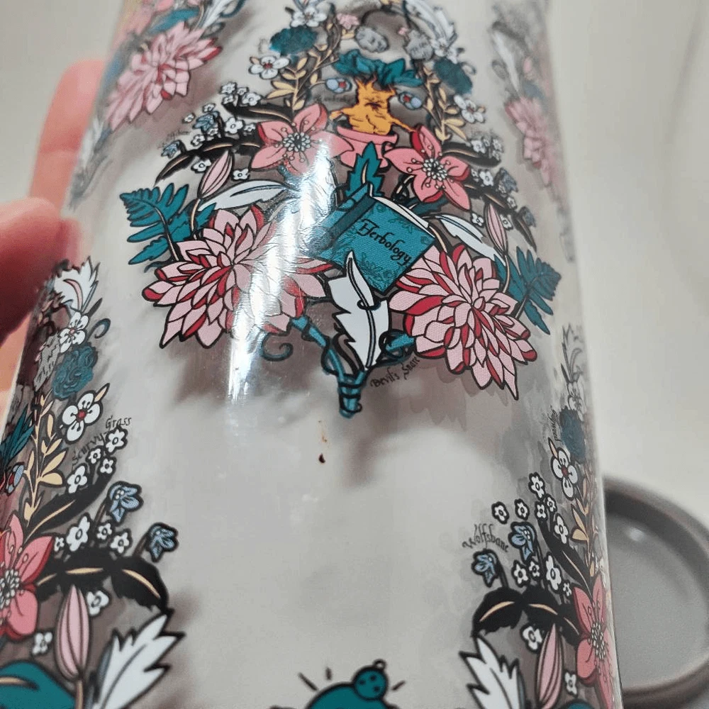 This Vera Bradley Harry Potter tumbler is perfect for fans! The Herbology design is gorgeous, and despite minor wear like small scratches and a tiny chip (shown in pics), it's still in great shape. Holds drinks well, looks cute, and feels sturdy—love the magical touch!