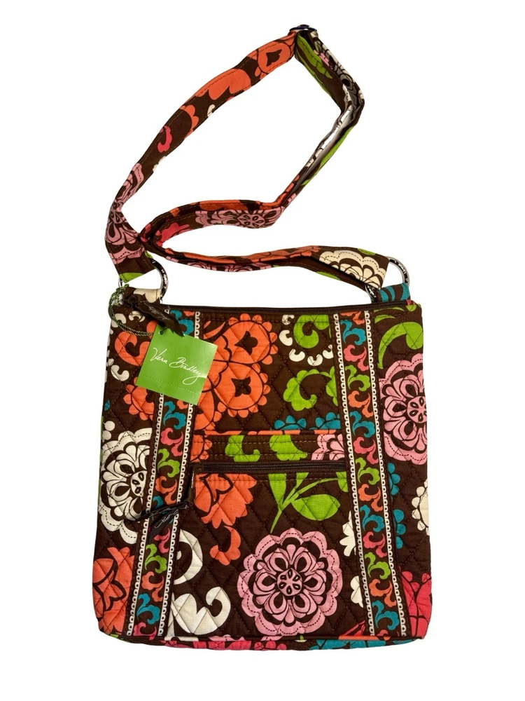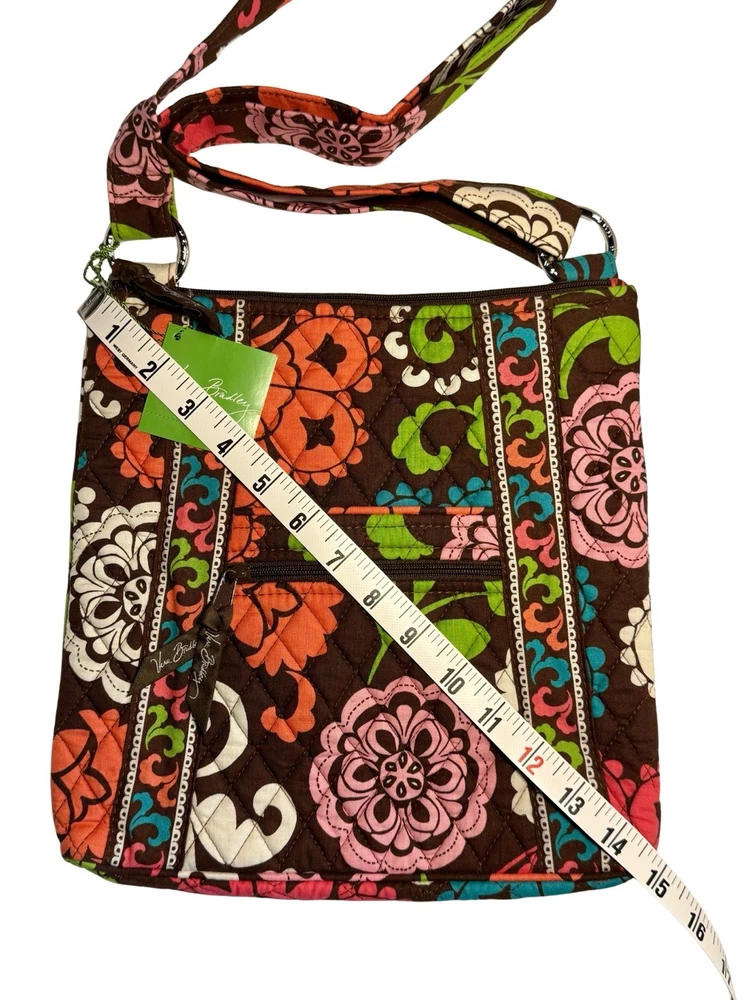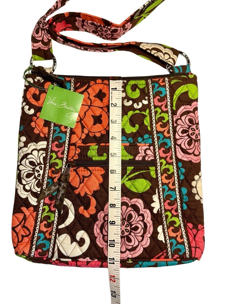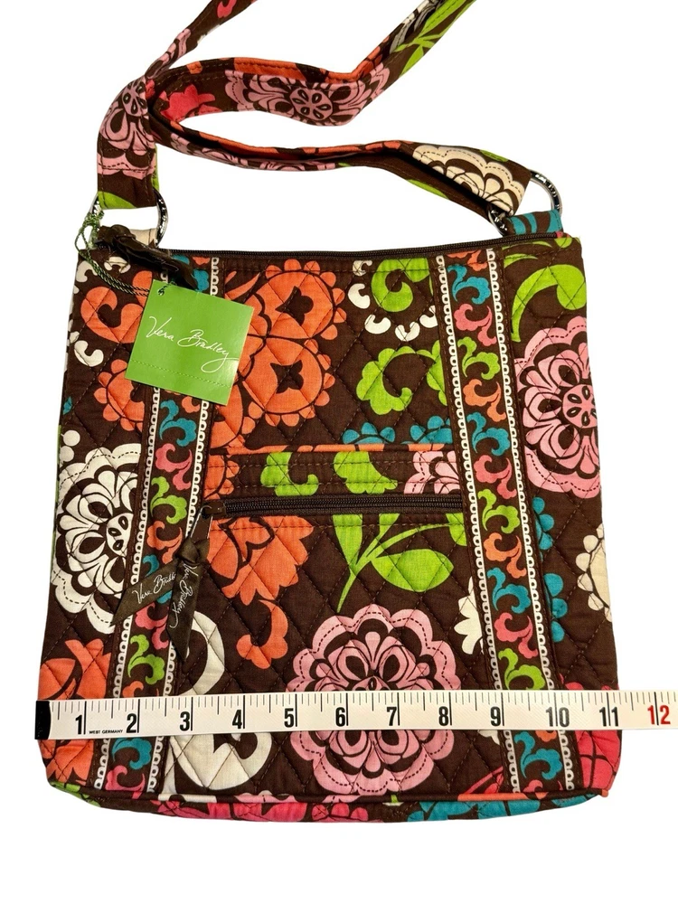 Authentic Vera Bradley Hipster Crossbody Bag in the Lola pattern, brand new with original tags attached. This classic quilted cotton crossbody features a vibrant floral design on a brown background and is lightweight, comfortable, and perfect for everyday wear or travel. Designed with multiple zippered compartments for organization, including an exterior zip pocket and interior slip pockets. Adjustable strap allows for hands-free crossbody or shoulder wear. Original MSRP: $60.00 (see tag). ✨ Features ✔ New with tags – never used ✔ Vera Bradley Hipster style ✔ Quilted cotton construction ✔ Zippered top closure ✔ Exterior zip pocket ✔ Interior slip pockets ✔ Adjustable crossbody strap ✔ Lightweight and durable ✔ Iconic Vera Bradley floral design 📏 Approximate Measurements • Width: ~11–12 inches • Height: ~11–12 inches • Strap Drop: Adjustable (shown in photos) 🎒 Condition Notes • Brand new with tags • Clean interior and exterior • No flaws, stains, or odors • Stored in a smoke-free environment