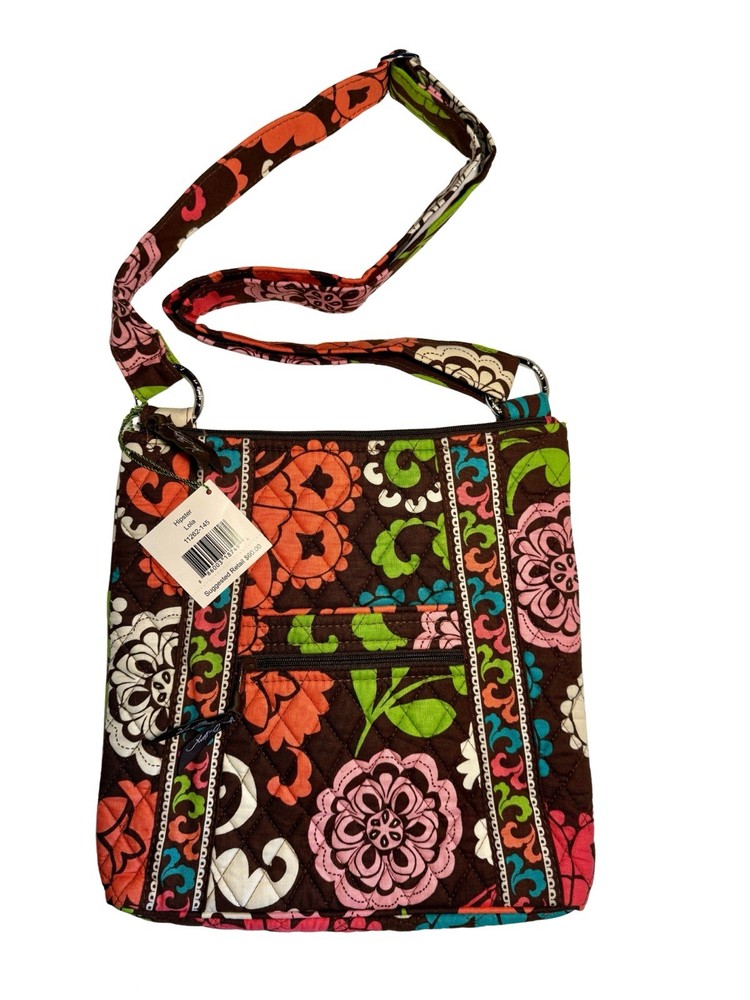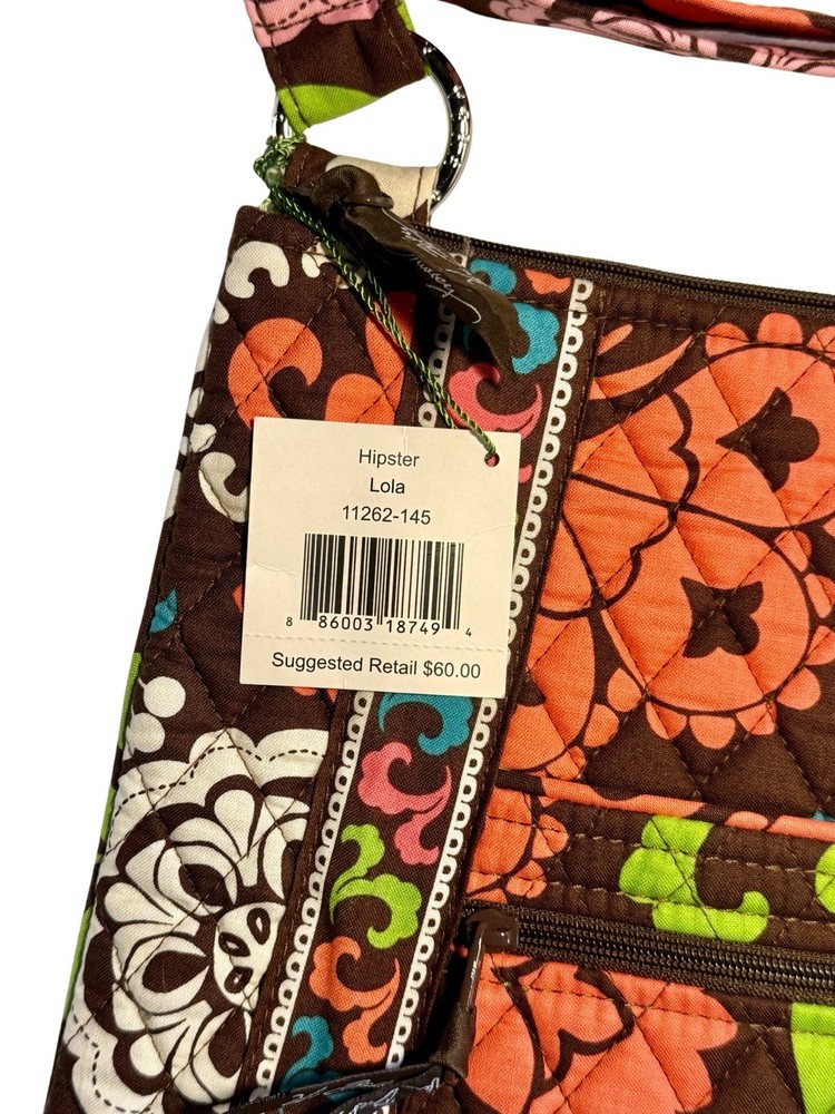 Occasion: Crossbody, Business, Casual, Party/Cocktail, Travel Accents: Zipper Pattern: Floral Theme: Hipster, Flower Size: Medium Shape: Rectangle Fabric Type: Quilted Cotton Handle Style: Crossbody Strap Department: Women Bag Width: 11 in Brand: Vera Bradley Bag Height: 11 in MPN: 11262-145 Model: Vera Bradley Iconic Hipster Finish: Quilted Handmade: No Features: Adjustable Strap Lining Material: Cotton Vintage: No Product Line: Vera Bradley Hipster Personalize: No Strap Drop: 24 in Customized: No Exterior Color: Brown / Multicolor Style: Crossbody Character: Lola Exterior Material: Cotton Hardware Material: Stainless Steel Handle/Strap Material: Cotton Hardware Color: Silver Lining Color: Multicolor Closure: Zip Handle/Strap Color: Multicolor