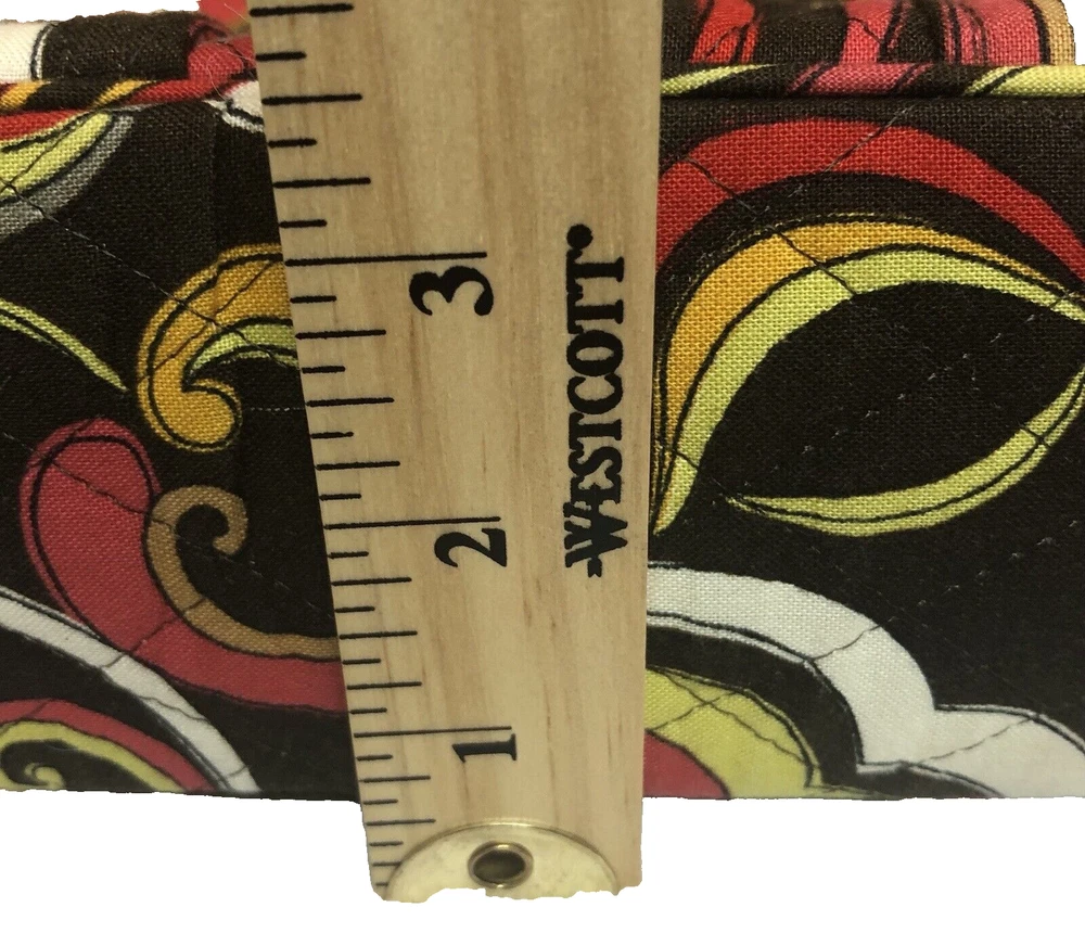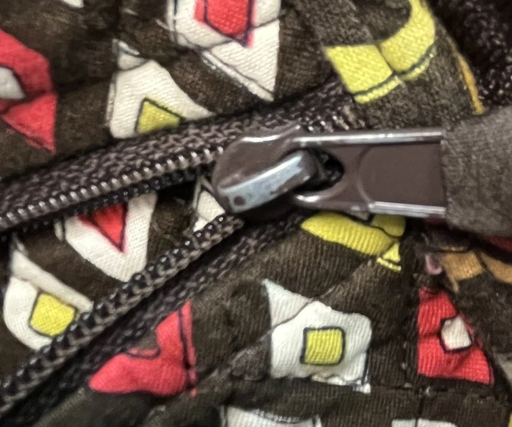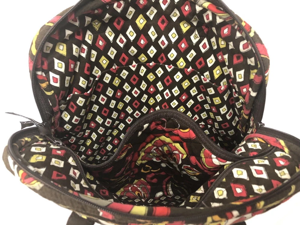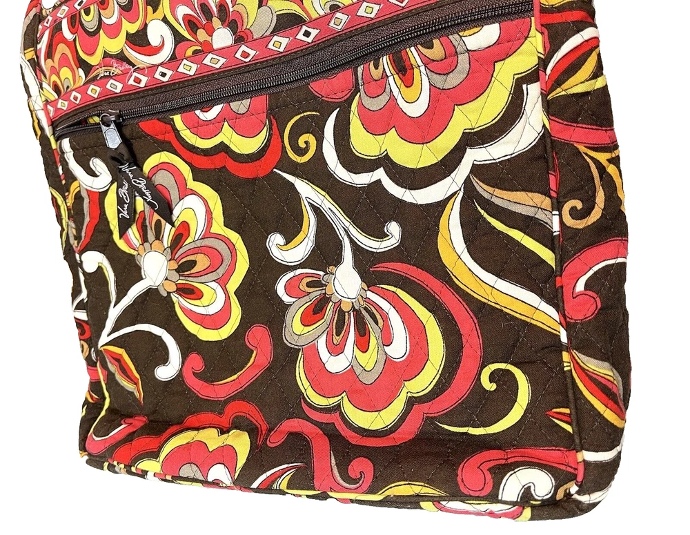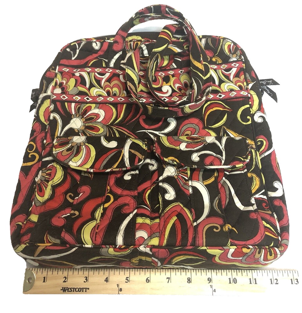 Vera Bradley Large Tote Handbag Purse Multicolored Red Yellow Brown. Lots of pockets zippered and snap 13” strap Dimensions 14” x 12” x 3.5” CONDITION Preowned Good small faint stain smaller than a pea Inner zipper coating is rubbing off See all pictures for details Please contact us with any questions or concerns. Thanks!