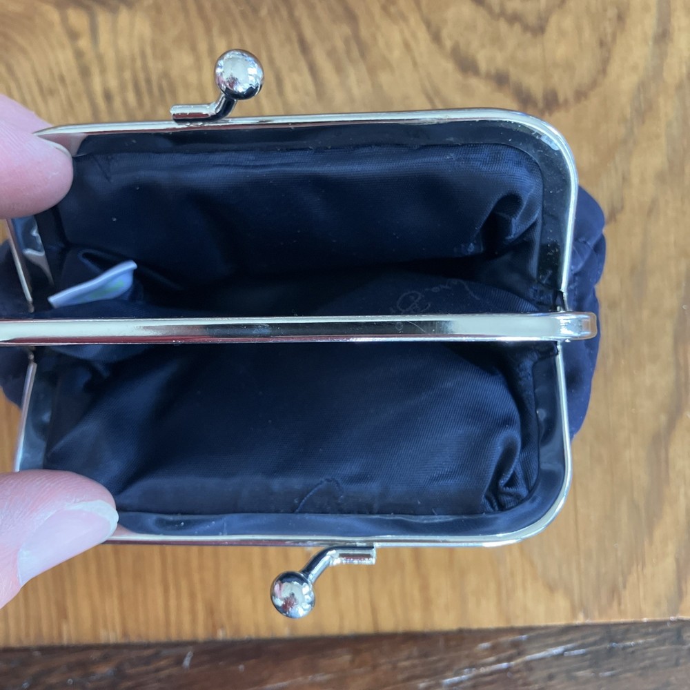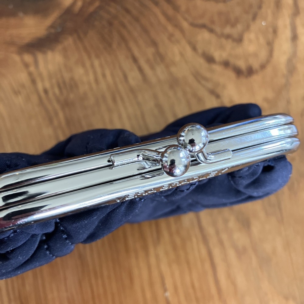 The Vera Bradley Quilted Blue Kiss Lock Coin Purse is a stylish and functional accessory for women. Made of lightweight cotton, this fashionable coin purse features a solid blue color with a garden-themed quilted design. The kisslock closure adds a touch of vintage flair, making it a unique and practical addition to any handbag or purse. Perfect for storing small items like coins and credit cards, this coin purse is both fashionable and functional for everyday use.