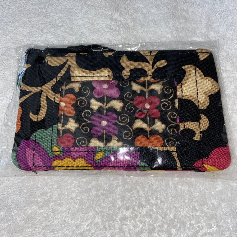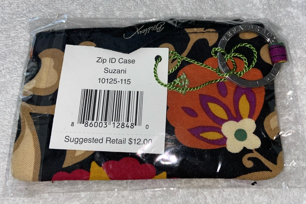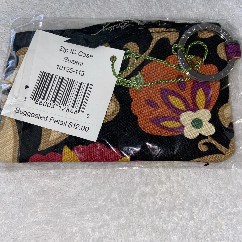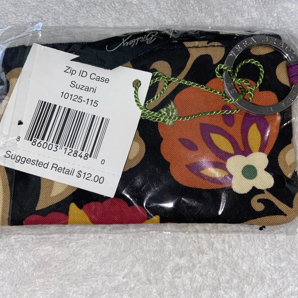 Vera Bradley Zip ID Case Zipper Pouch Coin Purse Keyring Suzani Retired Nwt is a stylish and practical accessory for women. The purse is made of 100% cotton fabric with a beautiful Suzani pattern in black and multiple colors. It has a size of S and is designed to hold coins, keys, and ID cards with its ID window pocket and zip closure. The purse comes with a keyring and is perfect for everyday use.