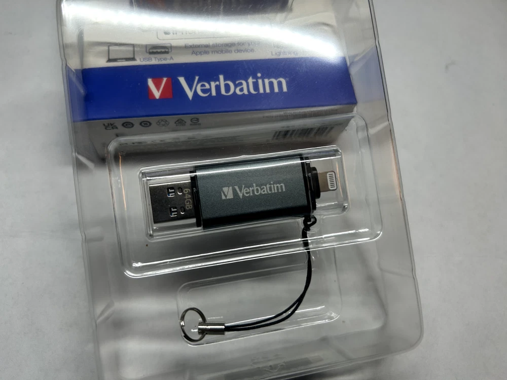 Experience the convenience of portable storage with the Verbatim Store 'n' Go 64GB USB 3.2 Gen 1 Flash Drive. Designed for versatility, this compact device is compatible with a wide range of devices including iPhones, laptops, PCs, iOS, and Macs, ensuring your data is accessible on the go. The sleek gray unit is crafted to fit seamlessly into any setting, whether you're at home, work, or on the move. The flash drive boasts a substantial 64 GB of storage capacity, allowing for the saving and transfer of large files with ease. With its USB Type-A and Lightning interface, it offers a reliable and fast connection to your preferred devices. The Verbatim brand is synonymous with quality and durability, making this flash drive a trustworthy choice for your data management needs.