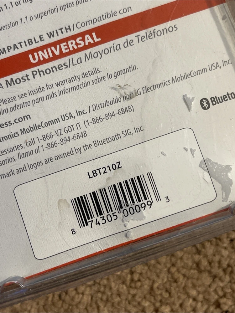 Verizon Wireless LG Bluetooth Headset Cordless Mobile Phone Universal LBT210Z. Condition is New. Shipped with USPS Ground Advantage.
