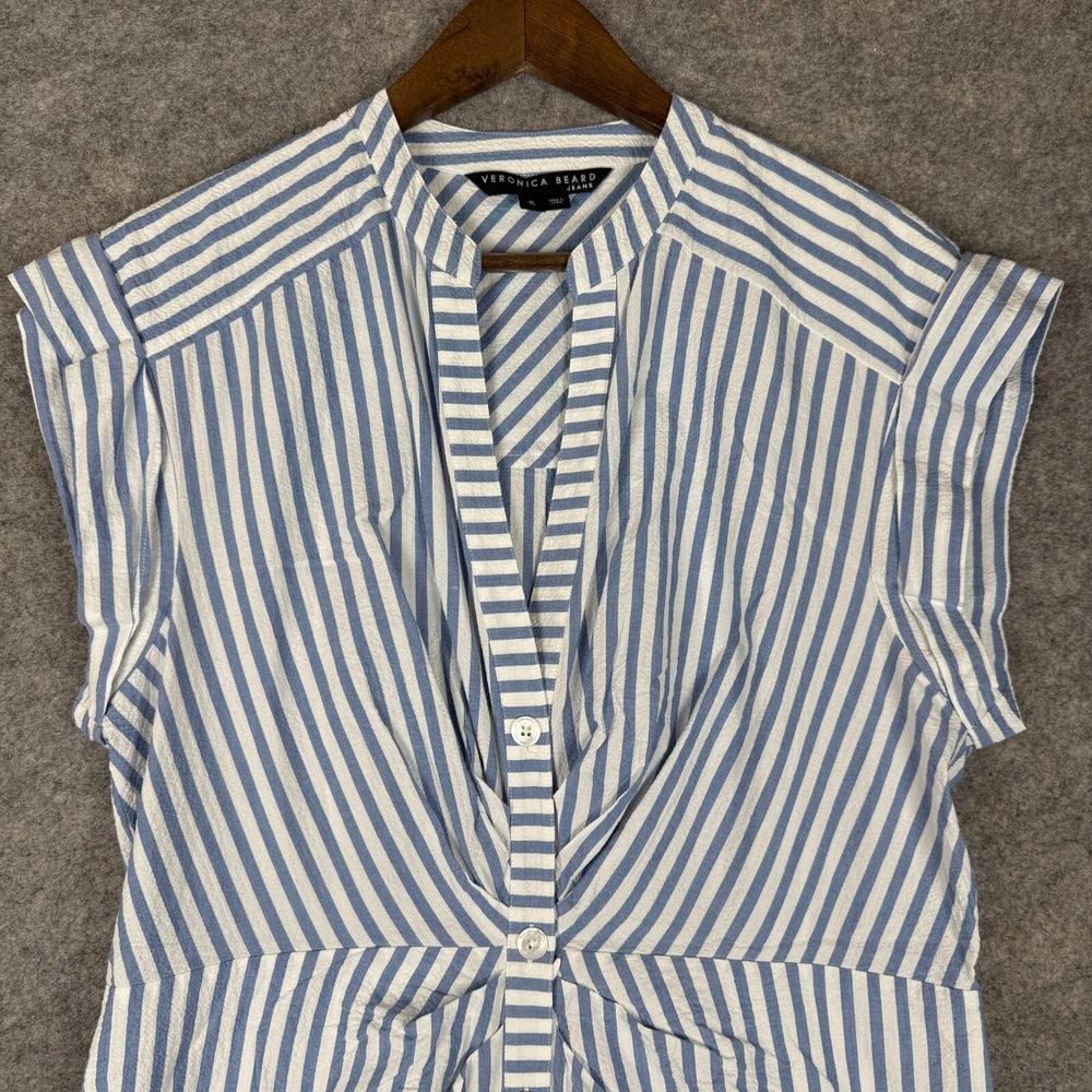 Material: Cotton Blend Color: White MPN: j2202sr018s0283 Season: Fall, Spring, Summer, Winter Neckline: V-Neck Country/Region of Manufacture: United States Theme: Designer, Preppy Sleeve Length: Short Sleeve Garment Care: Machine Washable Size: XL Features: Pockets Occasion: Business, Casual, Party/Cocktail, Travel Seller Notes: “Very good condition. No visible stains or defects. Gently used - well cared for.” Size Type: Regular Department: Women Closure: Button Style: Mini Brand: VERONICA BEARD Pattern: Striped Vintage: No Dress Length: Short