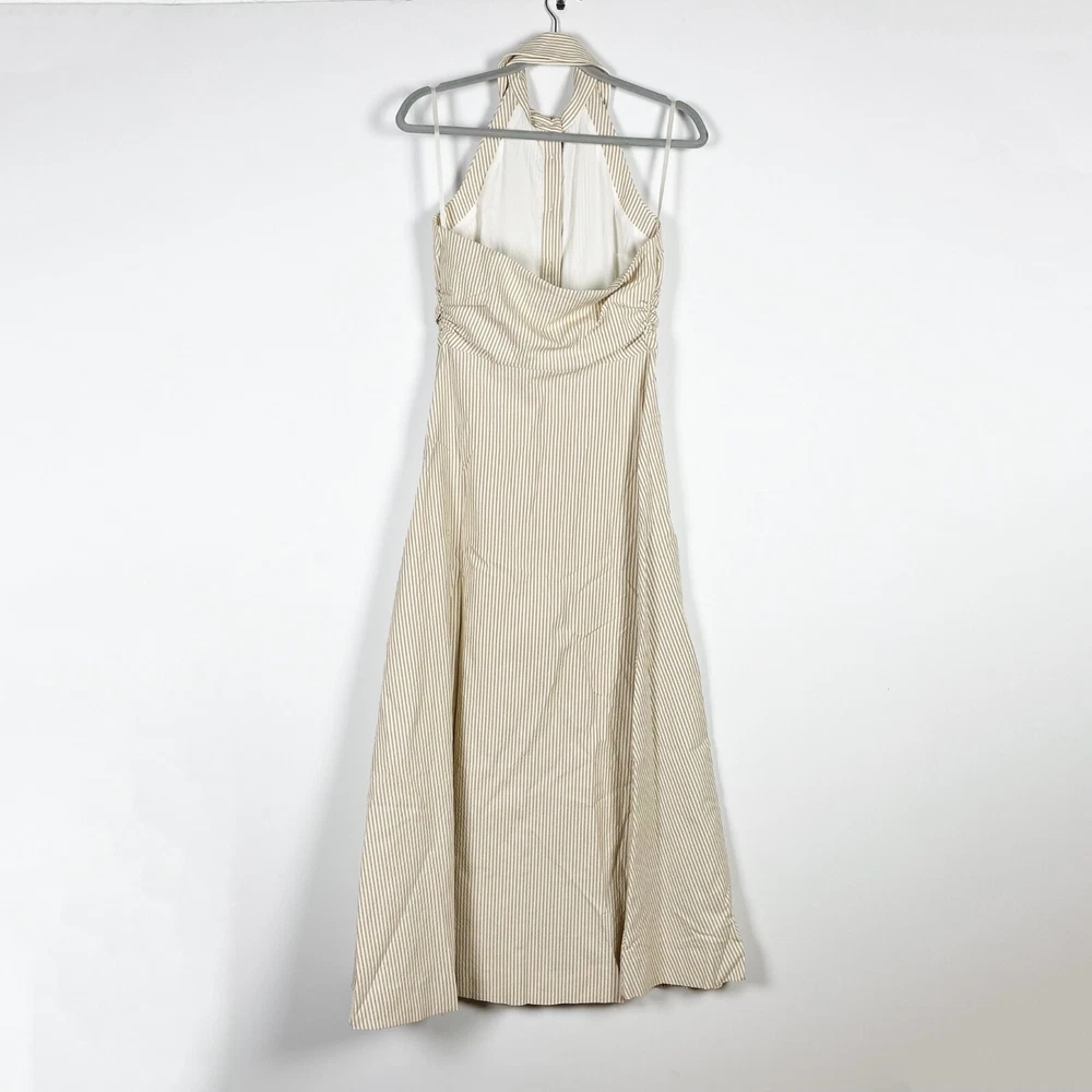 Veronica Beard Mackey Seersucker Halter Button Front Sleeveless Collared Dress 4 98% cotton, 2% elastane Lining: 100% polyester Length 51.75" [Levoff]