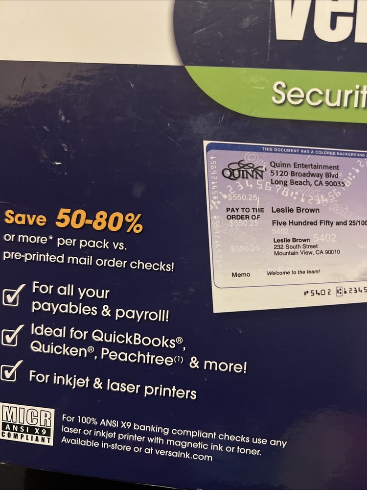 The VersaCheck Security Business Check Refills Form #1000 Vouchers consist of 500 blue checks designed for businesses. These security checks are from the trusted brand VersaCheck and come in a convenient 500-sheet pack. With a model number of 10BC02-6622, these checks are perfect for office use and are not a custom bundle or modified item. Keep your business documents secure with these reliable and efficient check refills.