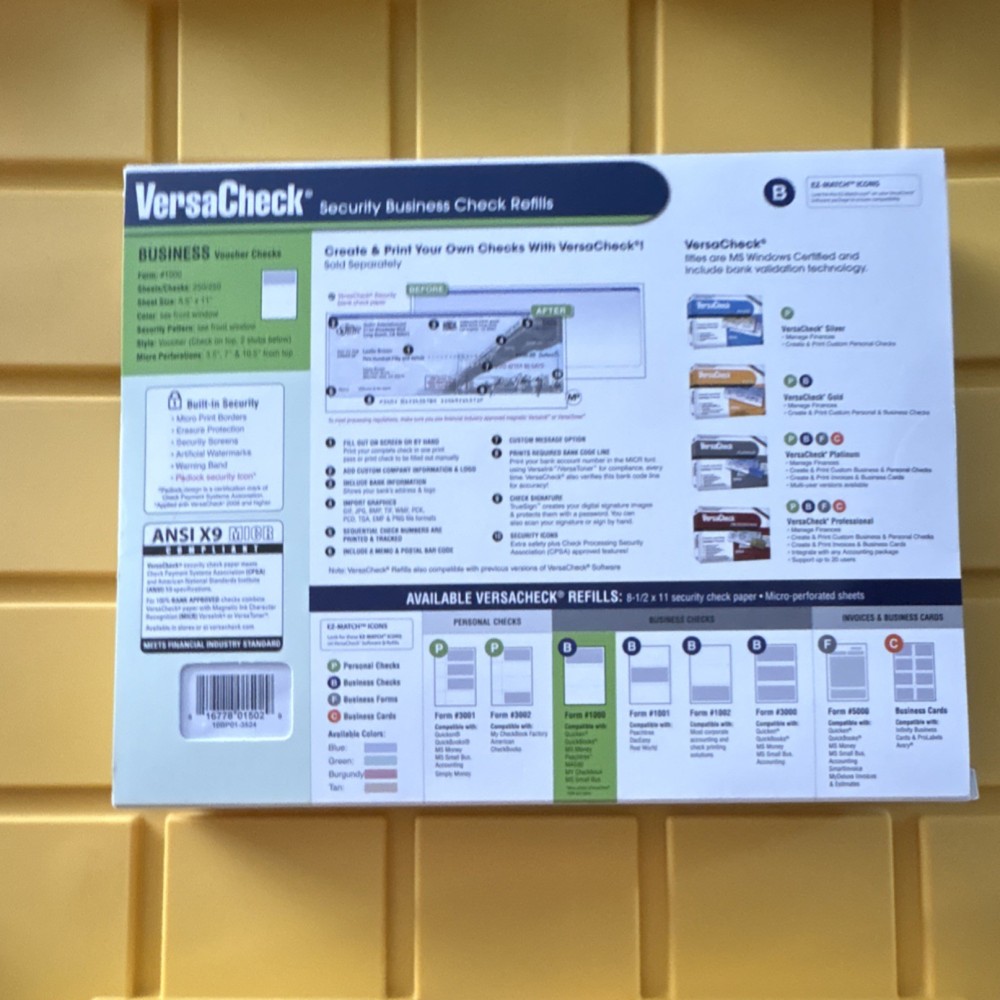 VersaCheck Security Business Voucher Checks #1000 250 Sheets 250 Checks
