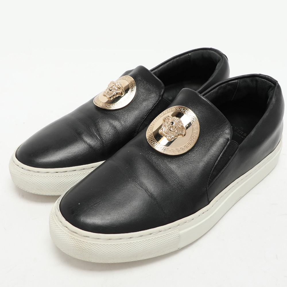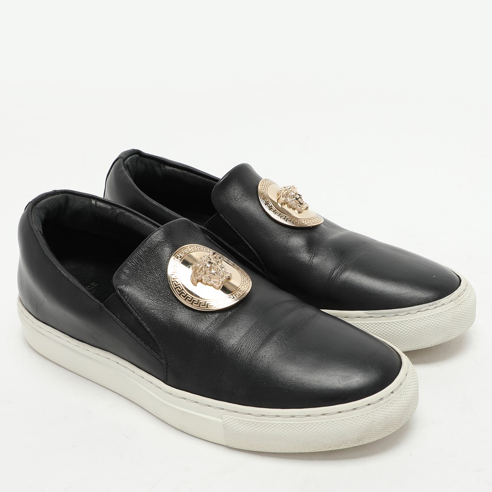 Give your outfit a chic update with this pair of designer sneakers. The creation is sewn perfectly to help you make a statement in them for a long time.Certified by The Luxury Closet - This item has gone through a detailed authentication process overseen by our experts. We offer a lifetime guarantee of authenticity on all our items. Import duties, taxes and charges are not included in the item price. These charges are the buyers responsibility. Please check with your country’s customs office to determine what these additional cost will be prior to buying. Our eBay Store About Us Contact Us Add to Favorite Sellers Versace Black Leather Medusa Slip On Sneakers Size 37 $214.5 Give your outfit a chic update with this pair of designer sneakers. The creation is sewn perfectly to help you make a statement in them for a long time. Product Details Brand Color Black Dimensions Material Leather Size 37 Outsole Width 9 cm Outsole Length 27 cm Heel Height Includes The Luxury Closet Packaging Certified by The Luxury Closet This item has gone through a detailed authentication process overseen by our experts. We offer a lifetime guarantee of authenticity on all our items. How We Check The in-house team of experts at The Luxury Closet is highly trained to verify the authenticity and the condition of the luxury products. They ensure that only 100% authentic items are put on sale.The evaluation process is unique with its own mix of assessment criteria and differs according to the category. Each item is evaluated based on the following combination of hallmarks, hardware, stitching, symmetry, material, craftsmanship, stamping, codes, hologram stickers, and packaging. Our authenticators also check if the items have been modified or amended (e.g., aftermarket diamonds, replaced batteries, repaired bags, etc.) International Buyers Import duties, taxes and charges are not included in the item price. These charges are the buyers responsibility. Please check with your country’s customs office to determine what these additional cost will be prior to buying.