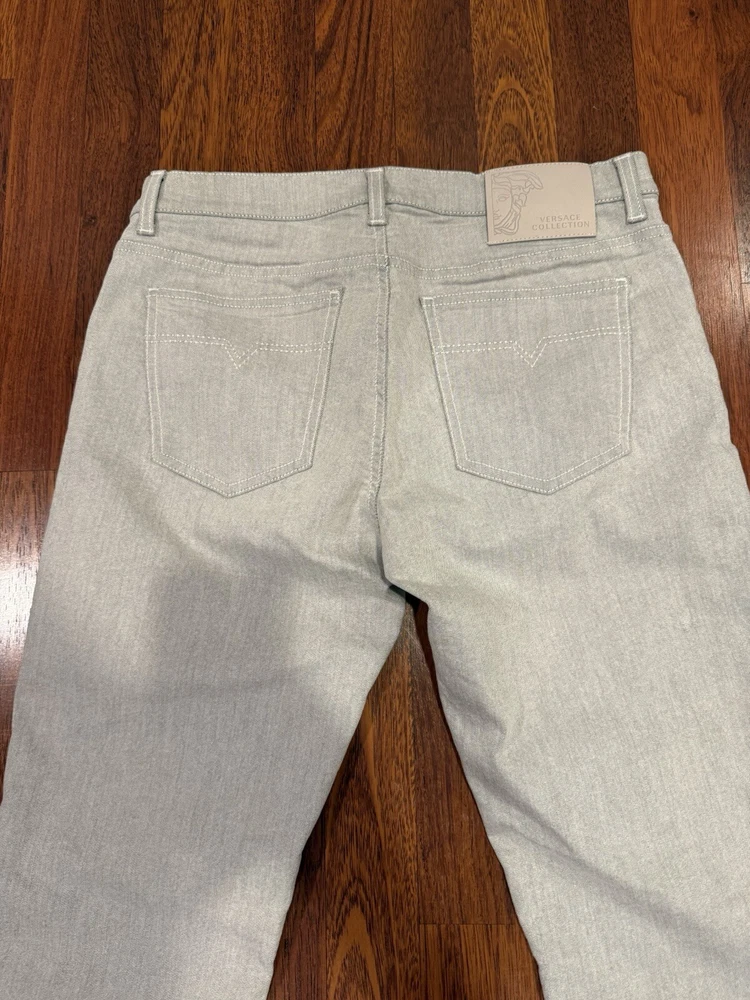 Inseam: 31 in Size: 31 Color: light grey/white Department: Men Brand: Versace Style: Slim Size Type: Regular Closure: Zip Waist Size: 31 in Type: Pants