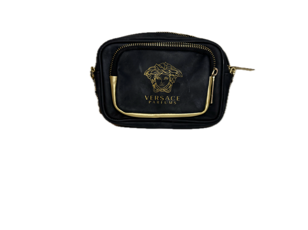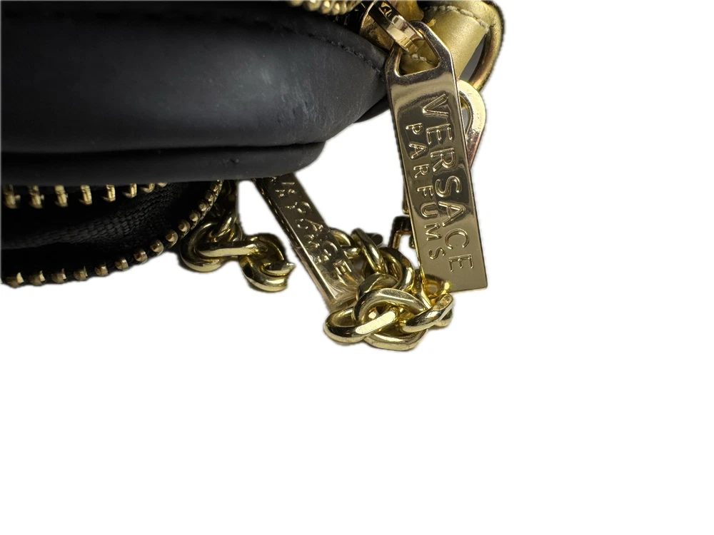 Has a lot of signs of use, maybe washing will help, but no warranty, sold as is and not subject to repair Versace Parfums Crossbody Bag/ Handbag features a stunning gold Medusa logo design, making it a stylish accessory for women. The chain strap adds a touch of elegance, while the black lining complements the luxurious look. This Versace La Medusa piece is a must-have for those looking to elevate their fashion game with a high-end brand like Versace.