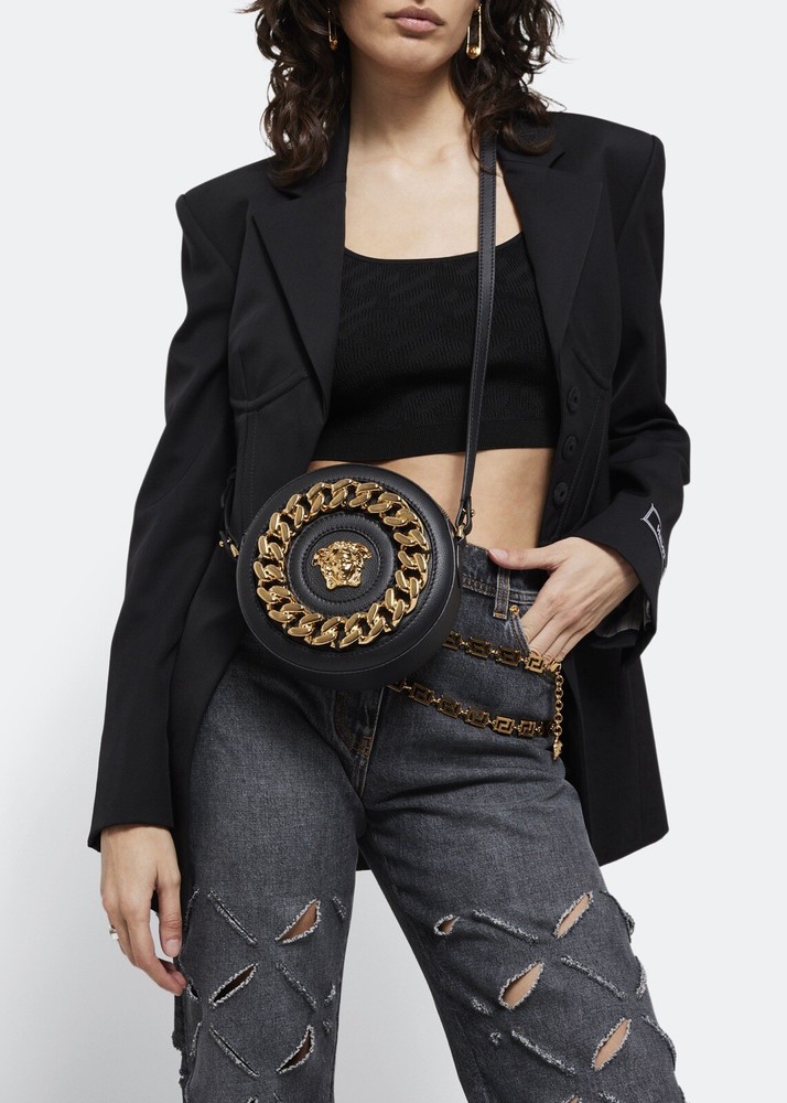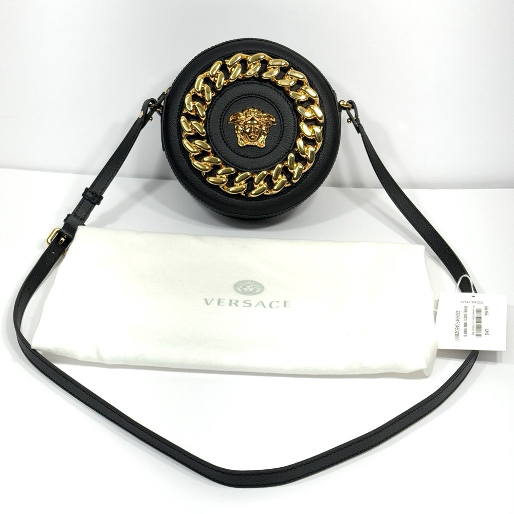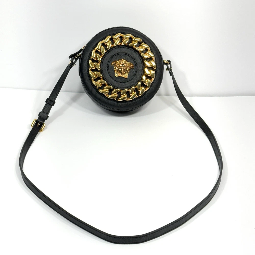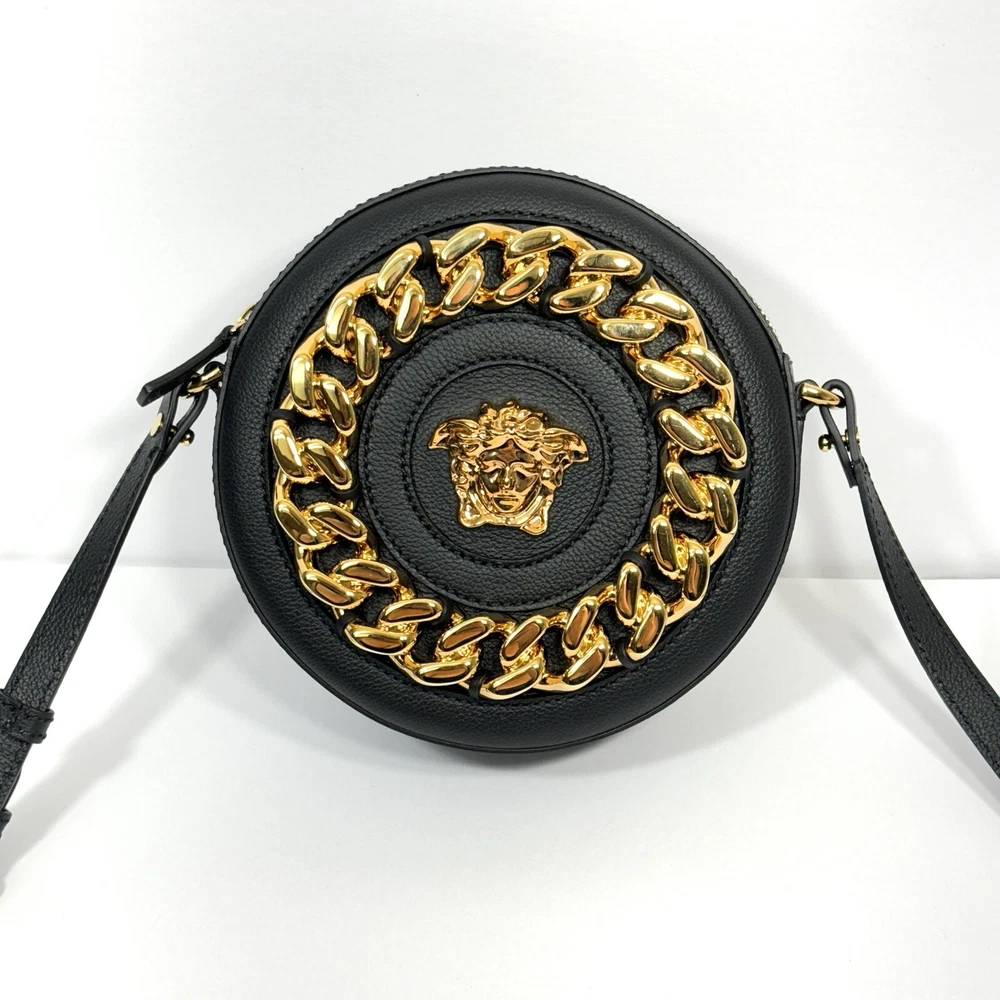 Versace Medusa La Chain Leather Disco Round Camera Bag Shoulder Crossbody Purse