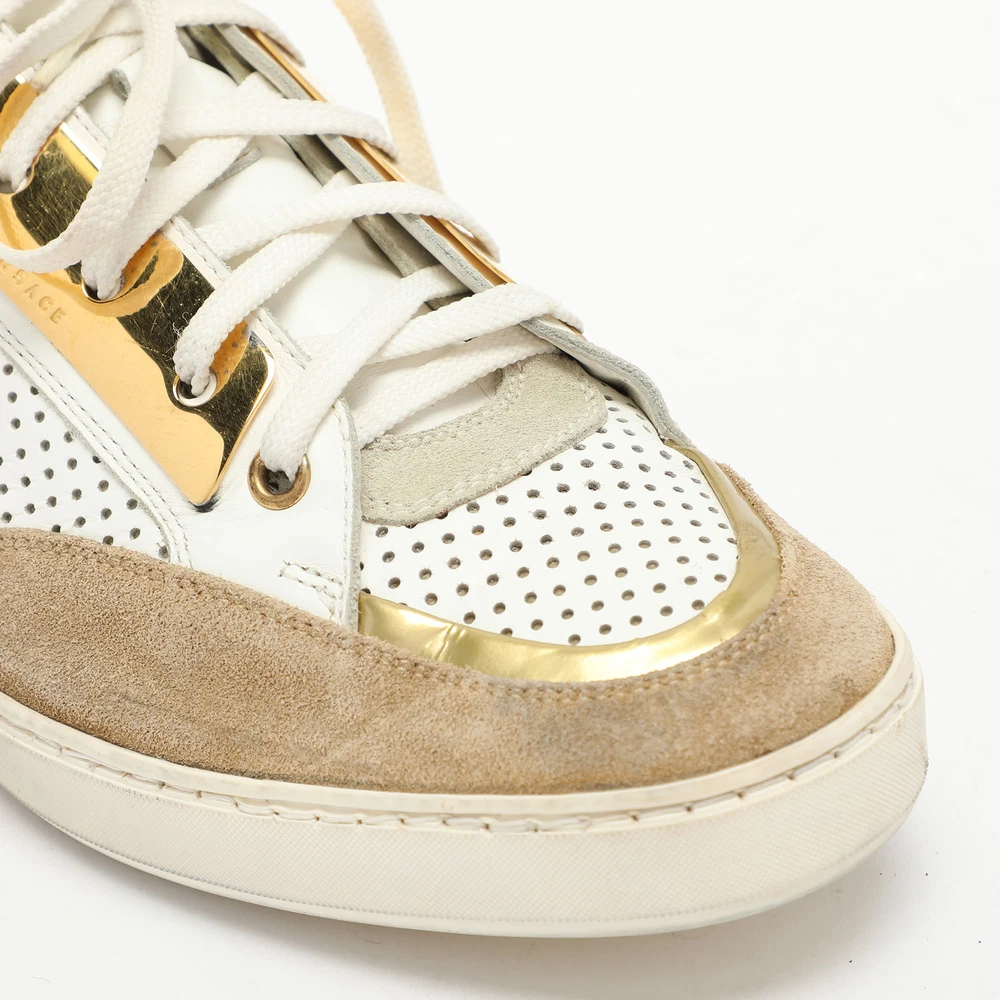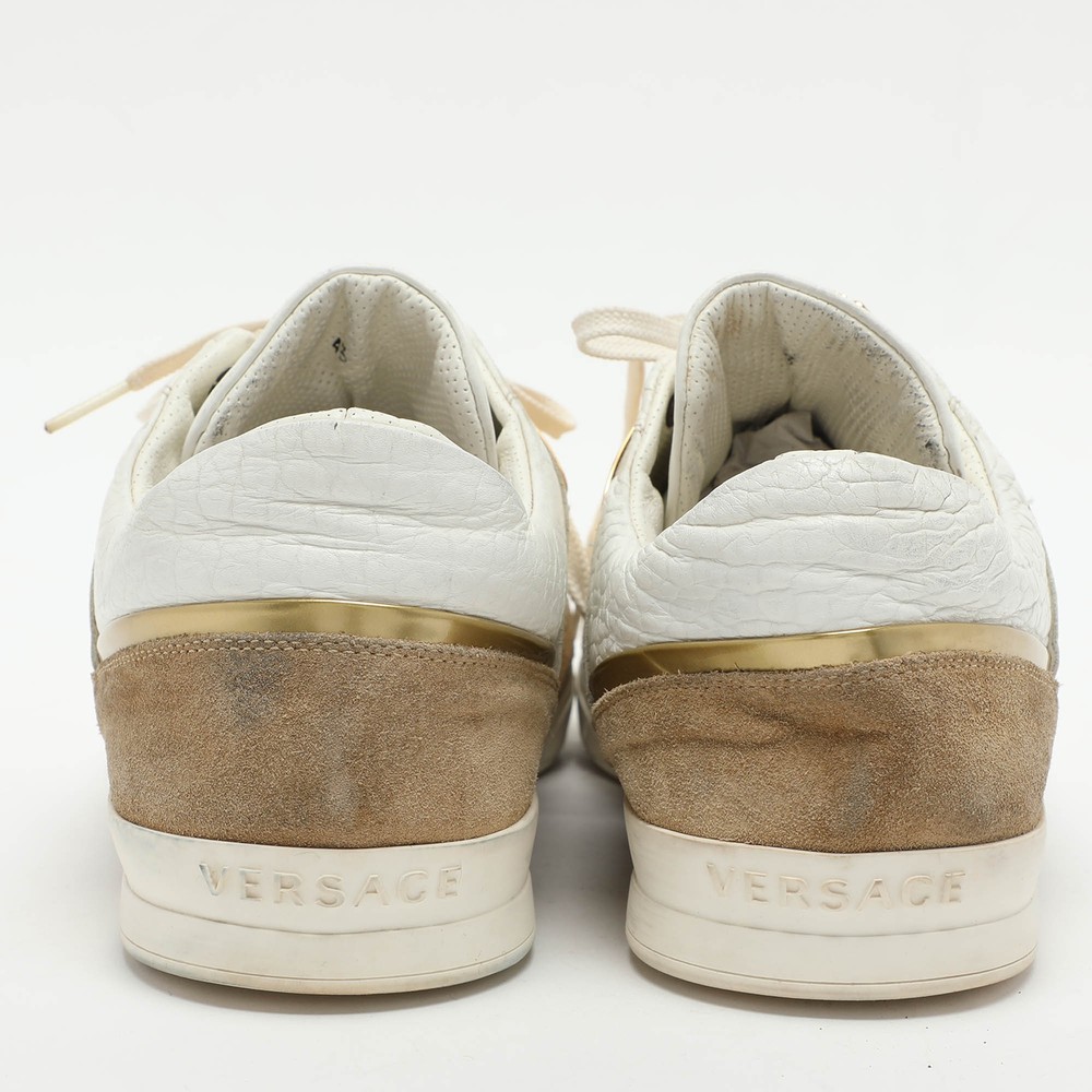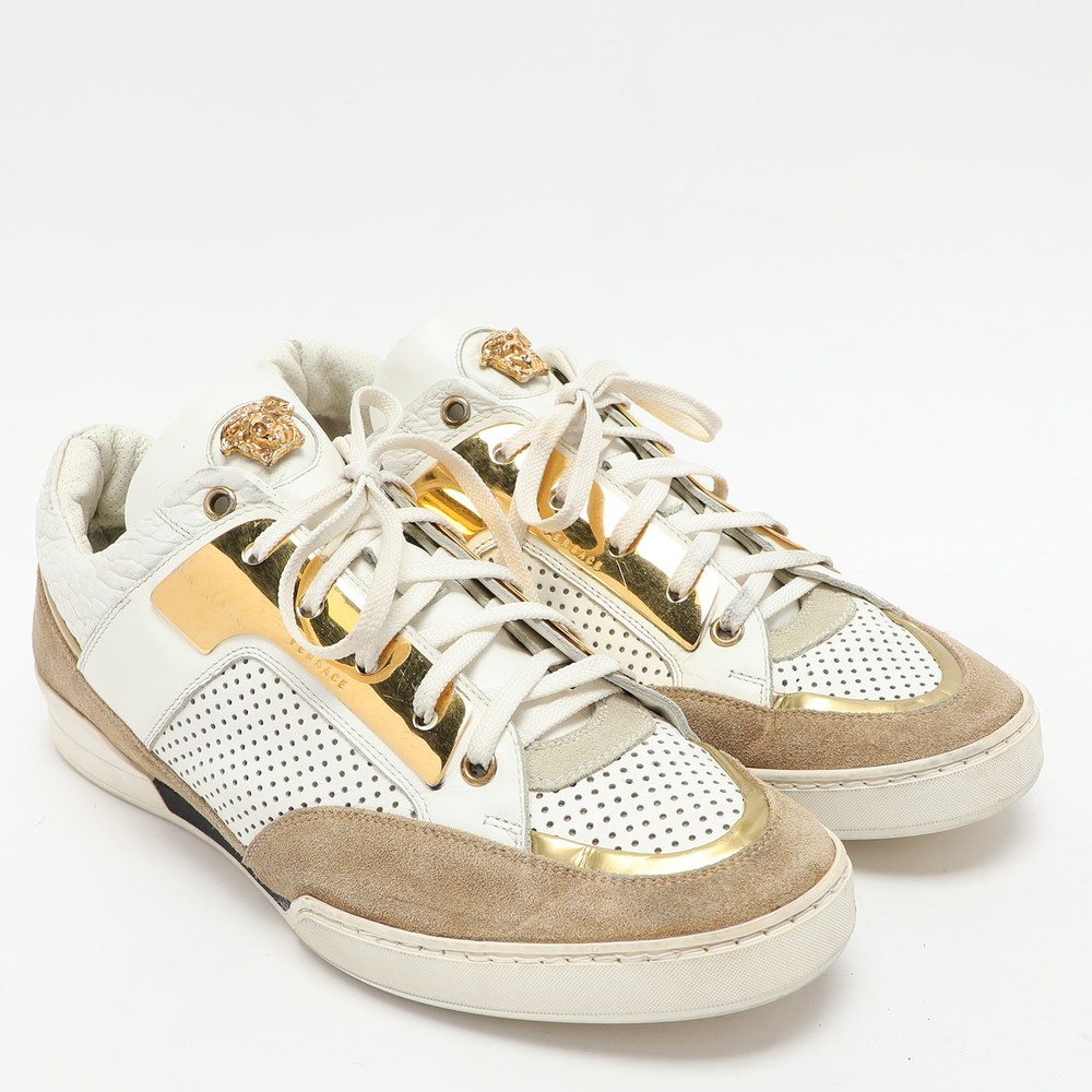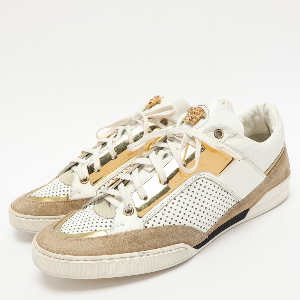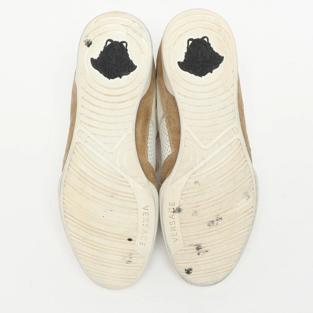 Versace Medusa White Beige Leather Suede Low Top Sneakers Size 43