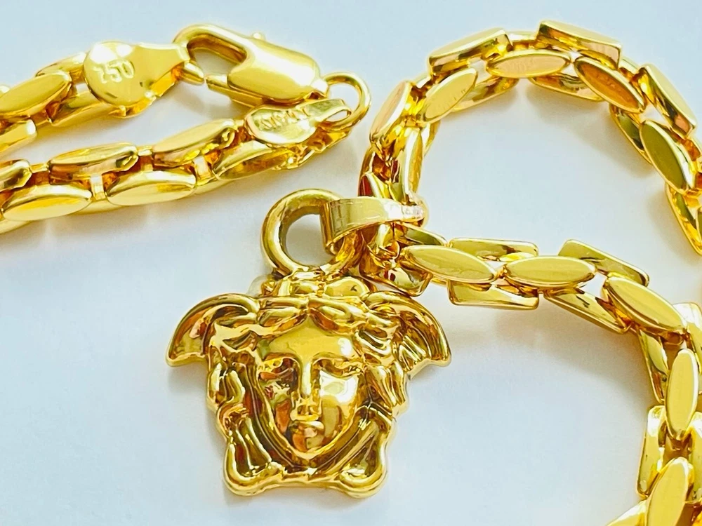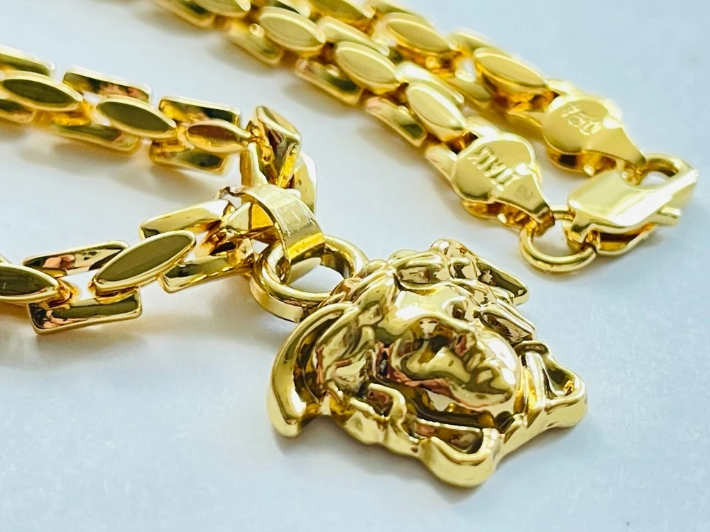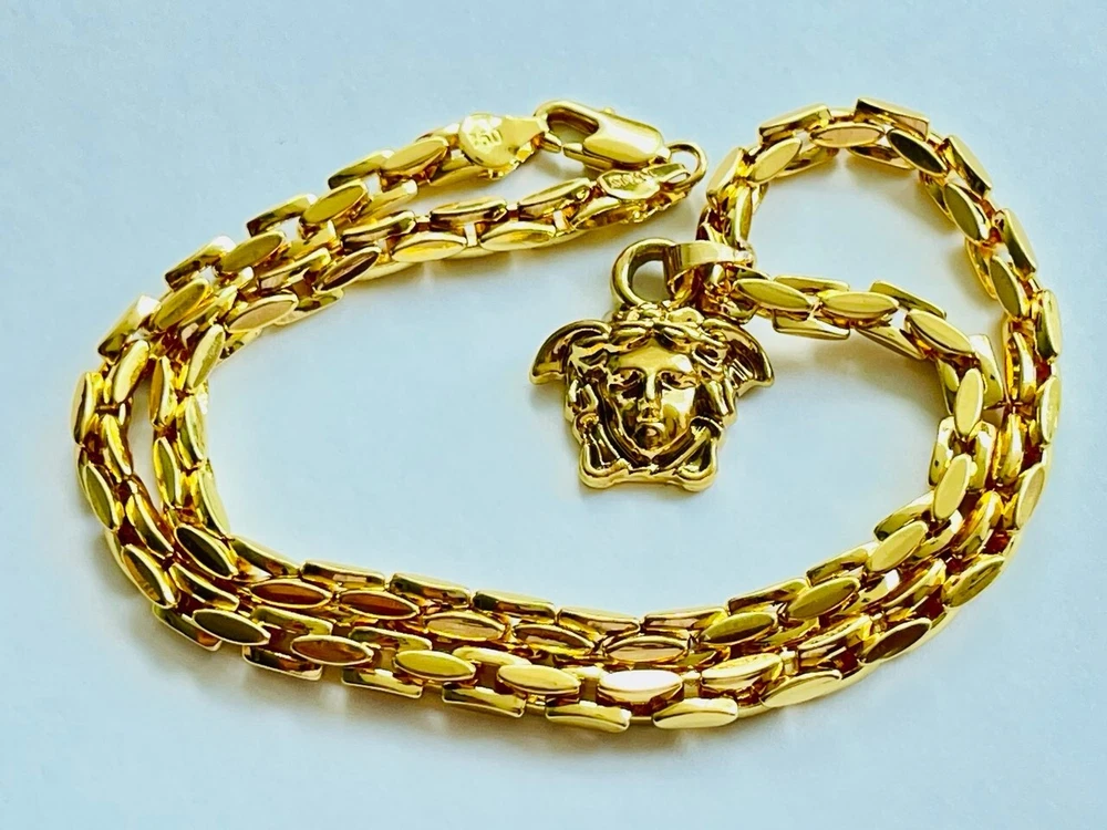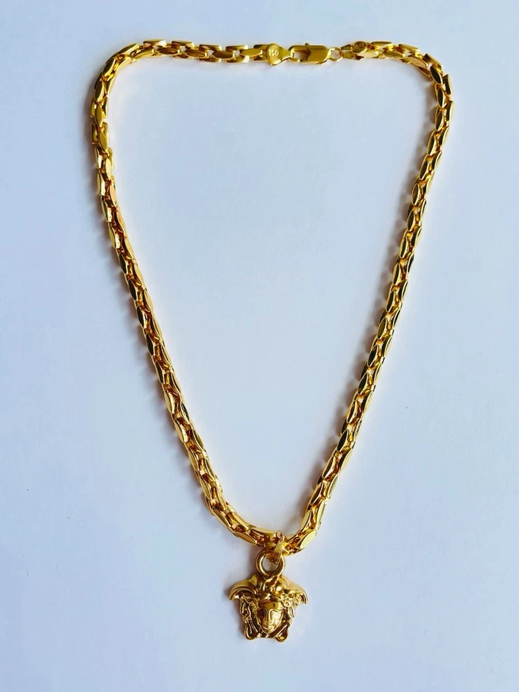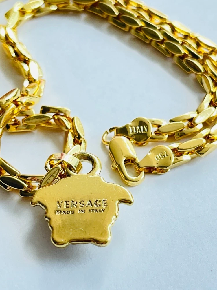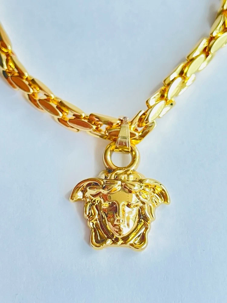 Authentic Versace pendant with chain Made in Italy 18 K gold plated 316 Stainless Stell Color : gold / 🥰 Signature Head of Medusa Size chain : 23 inch Size Pendant: 1.2 inch or 30 mm Made of metal Unisex Signature New Collection Pre - Owned , Looks Like New!