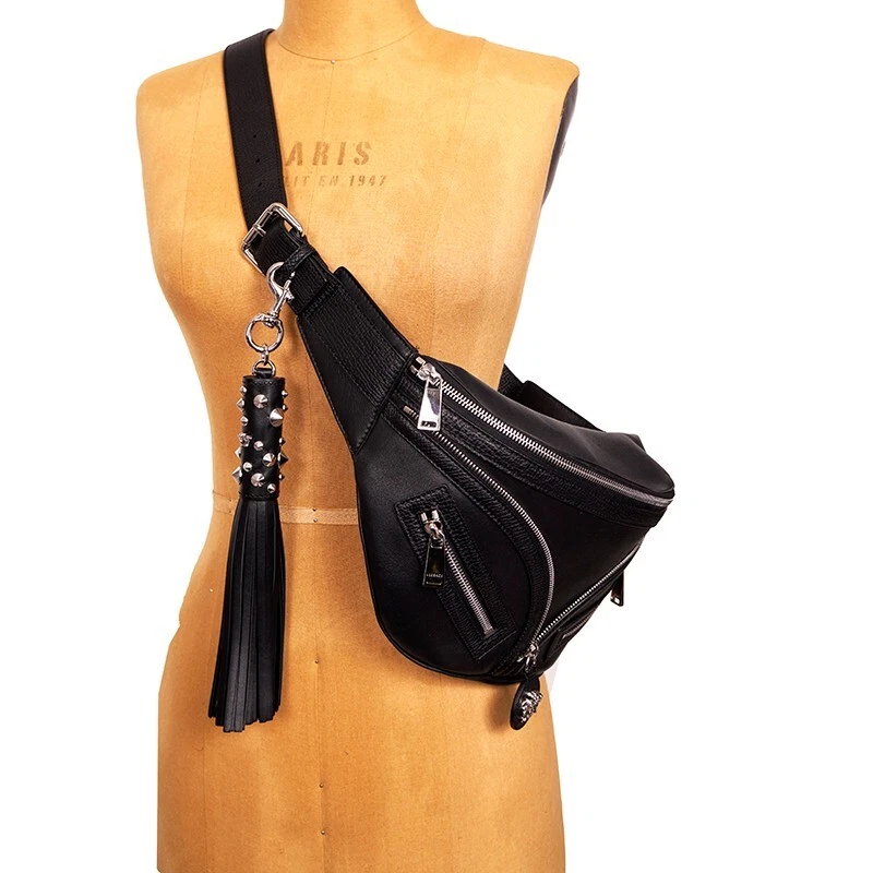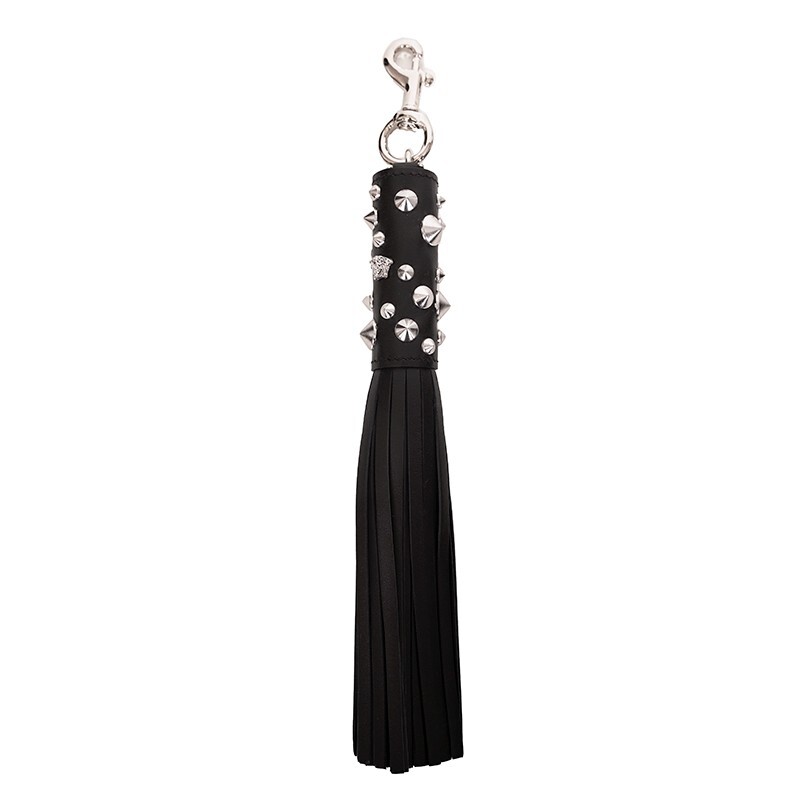 Versace Runway Black Leather Medusa Studded Tassel Keychain Bag FOB NWT $575