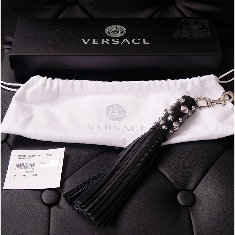 Accents: Studded Type: Key Chain Department: Women Item Length: About 9" Country/Region of Manufacture: Italy Brand: Versace Material: Leather Color: Black