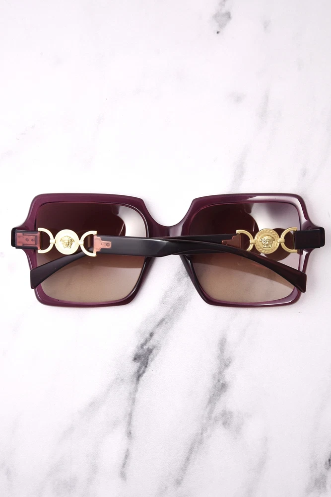 EyewearIsland Versace VE4441 520968 Sunglasses Women's Transparent Violet/Brown Gradient 55-mm Model Number: VE4441 Model Name: Style: Full Rim Shape: Square Gender: Women's Frame Color: Purple Lens Color: Brown Lens: Brown Lens Size: 55 mm Bridge Size:20 mm Temple Size: 140 mm Frame Material: Plastic Made In: Italy Fit Type: Universal Warranty: 2-Year Manufacturer Item Includes Glasses, Case, (Case Color & Style May Vary) 168065-1I Payment A fter winning an item in auction or completing a Buy-It-Now purchase you must use our secured checkout system. Please click the checkout icon and follow the instructions. Check-Out Now! Click on the Check-out button and You will be able to complete your payment and finalize your purchase without waiting for the winning bidder email confirmation. Check-Out Later: Within 1 hours of the end of the auction, you will be notified via email that you are the winning bidder. There is no need to contact us to arrange payment. Our email will contain a link to our checkout site where you will be able to pay for your item. Checkout must be completed within 7 days of the end of the auction. For your convenience we accept the following types of payments options for you to choose from like. But first please make sure you Check-out. PayPal Visa, MasterCard, American Express and Discover (C/C payment must match billing and shipping address only, and is only available for US residents) If payment is not received within 7 days of the end of the auction, the item will be relisted. If the item is still available for purchase, we will gladly reopen your checkout. Top of page Policy We guarantee your satisfaction. EyewearIsland has been delighting online shoppers since 2001 and your complete satisfaction is our number one goal. We sell ONLY first quality, NEW, authentic merchandise sourced directly from designers, retailers and manufacturers. We will gladly accept a return within 30 days. Free shipping items a refund will be made minus original shipping fees. Intimates, underwear and bathing suits are all final sale and no returns or exchanges are accepted. For exchanges, all shipping charges are the customer's responsibility. You must obtain a return RMA # before sending your item back to us. Please email us and let us know you are planning to send an item back for exchange or refund and an RMA # will be issued with the return details. If you are exchanging for another item and see the item online please email us chat with us or call us so that we will reserve the item for you and once the item is reserved we will give you instructions on how to return the item for an exchange. Shipping USA EyewearIsland ships WORLDWIDE. Your order will be professionally packed in sturdy boxes to ensure that your item arrives quickly and safely. Most packages are shipped with UPS (restrictions apply, please see below). We also offer the following services: Domestic and International Shipping Please select the Ebay shipping tab for rates and details Items shipped to international address must match your PayPal account shipping address. International Buyers – Please Note: Import duties, taxes and charges are not included in the item price or shipping charges. These charges are the buyer’s responsibility. Please check with your country’s customs office to determine what these additional costs will be prior to bidding/buying. International orders are shipped using a track-able shipping method and we will email you the tracking number as soon as your order is shipped. Customer Service We are available Mon-Fri from 9:30am - 5:30pm. we guarantee you that all our item are 100% authentic and brand new. We value your business and want you to continue buying from us. If for any reason you may have a problem with our product please contact us and we will provide you with the best service possible. We appreciate business! .