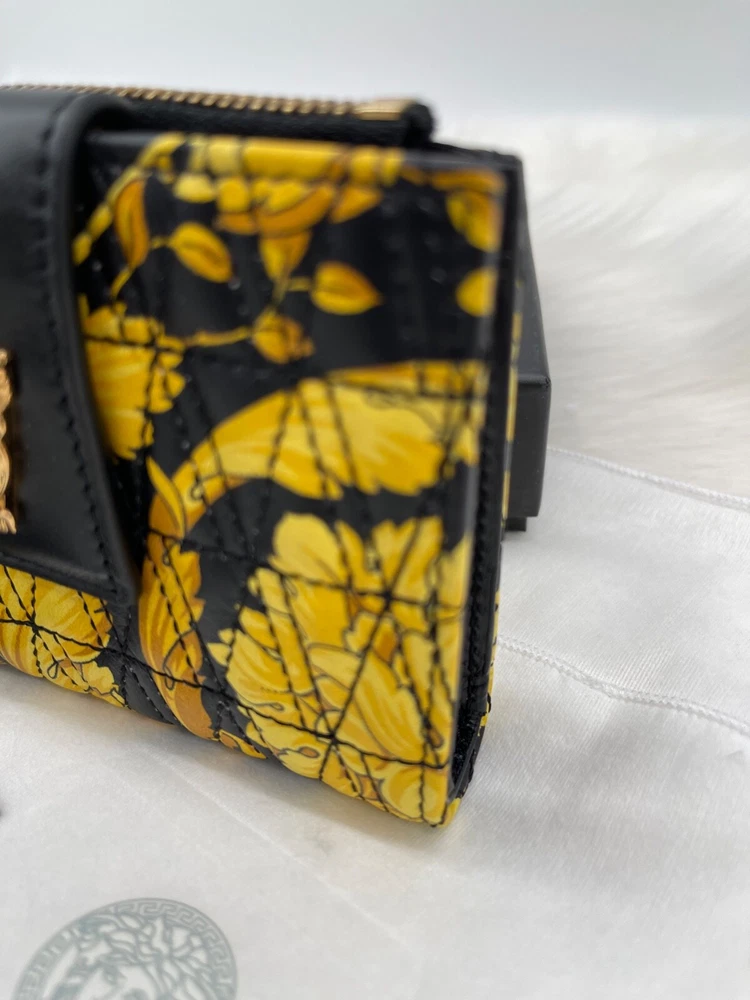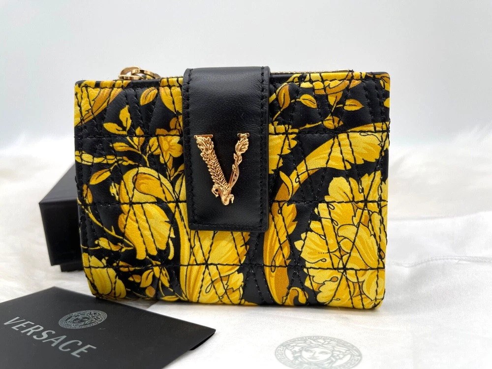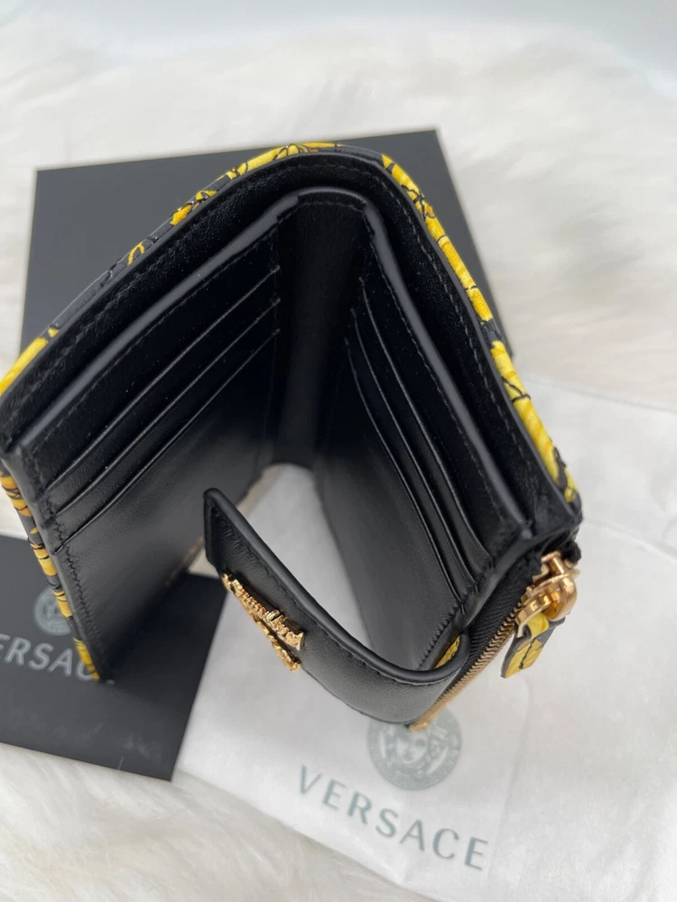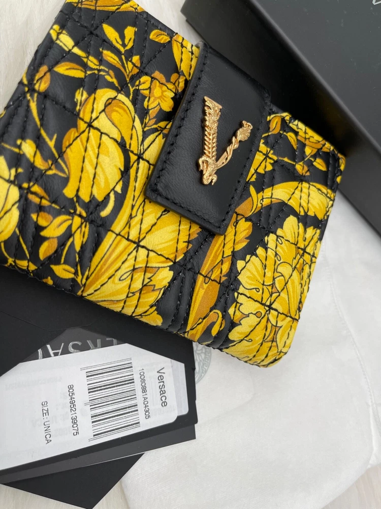 This wallet is pure luxury! The Versace Virtus Barocco design is stunning, and the silk twill with leather trim feels so premium. It's compact yet fits all my cards and cash perfectly. The craftsmanship is flawless—definitely worth the investment for a stylish everyday accessory. Love the bold gold detailing—it adds a touch of elegance to any outfit!
