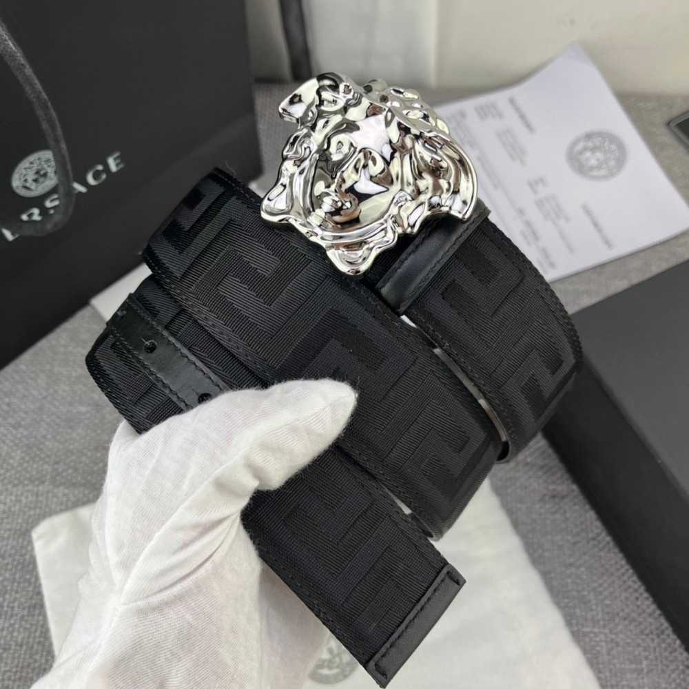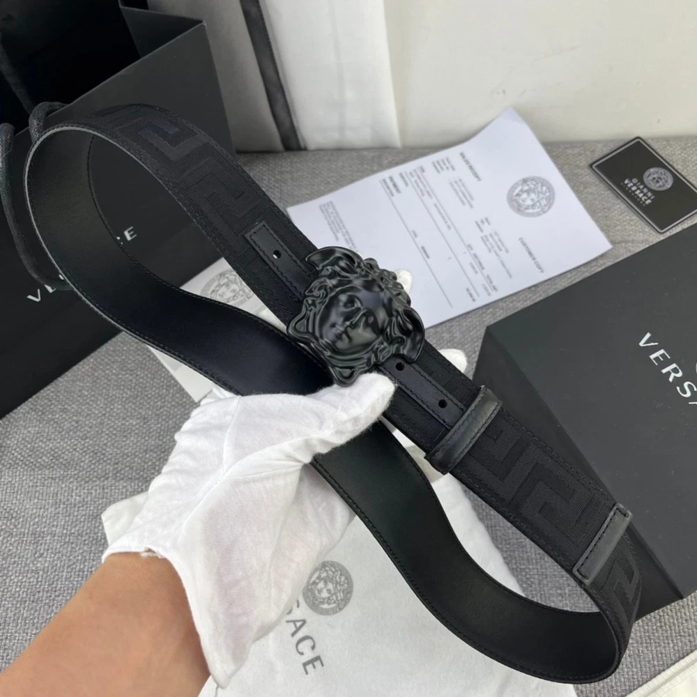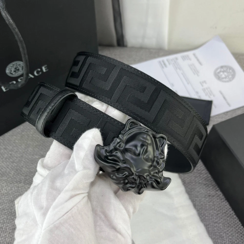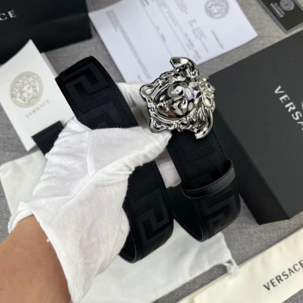 Versace belt for sale authentic Width:4.0cm/1.5in One side of the belt is made of woven fabric, and the other side is made of genuine leather. Size: 80/32-waist : 30-32 applicable 85/34-waist : 32-34 applicable 90/36-waist : 34-36 applicable 95/38-waist : 36-38 applicable 100/40-waist : 38-40 applicable 105/42-waist : 40-42 applicable 110/44-waist : 42-44 applicable